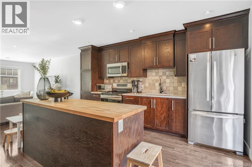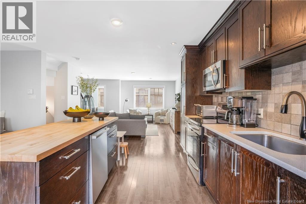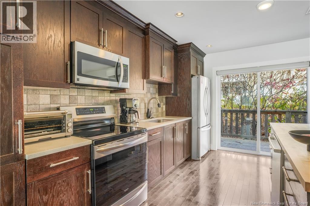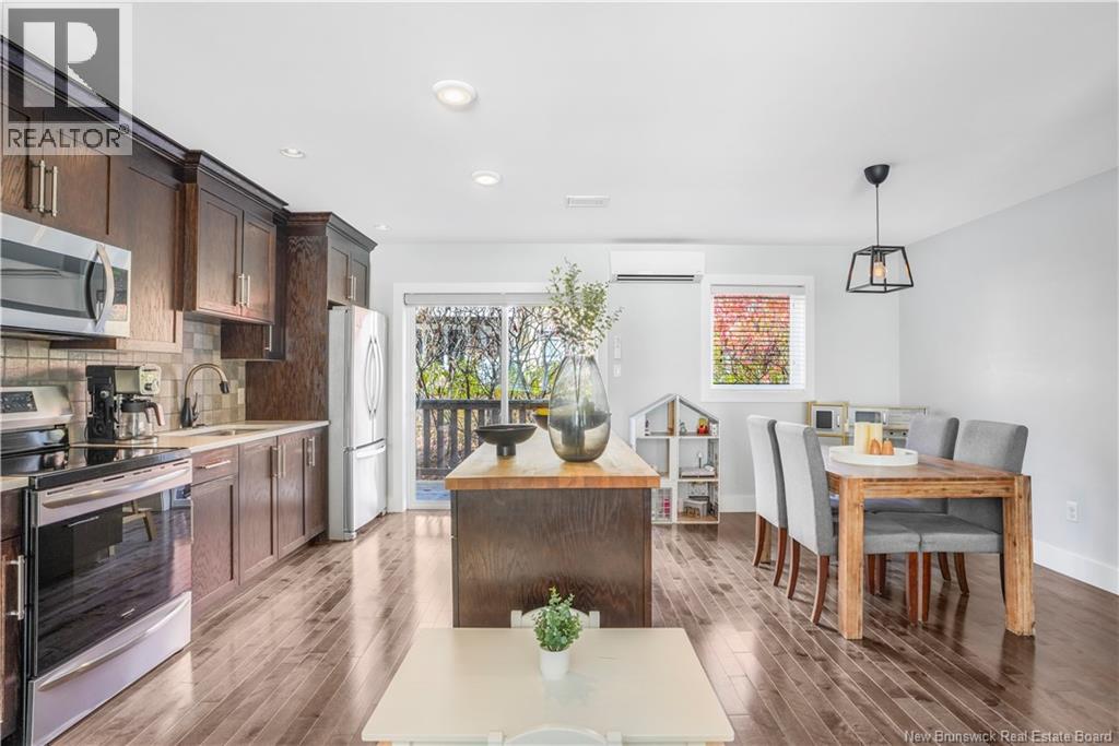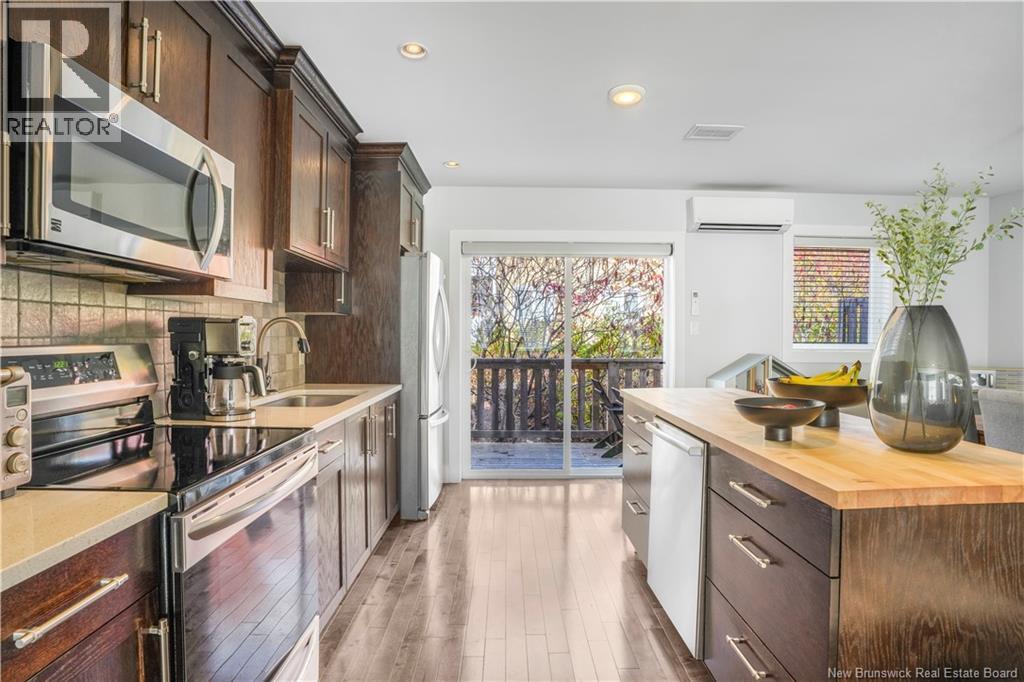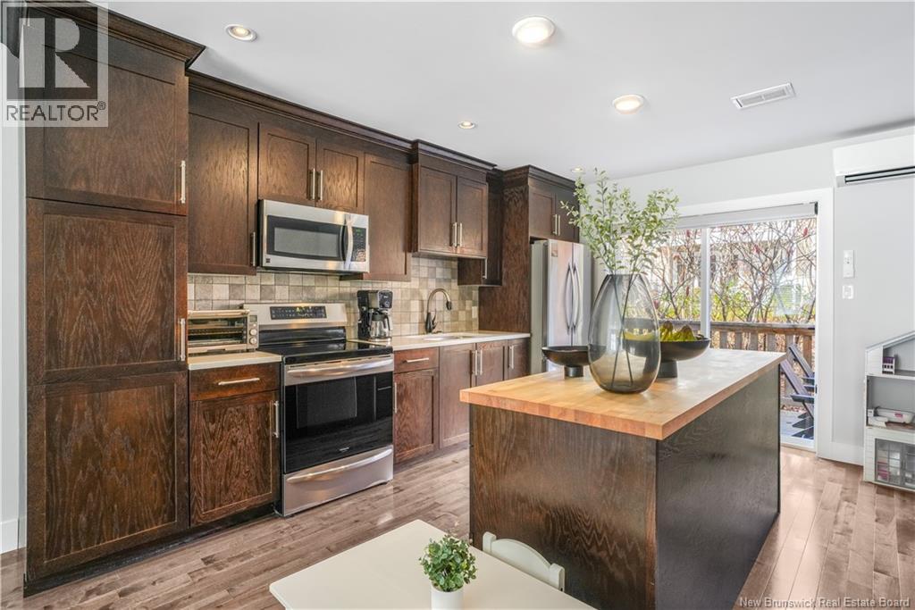 This stylish 3-level townhouse offers the perfect blend of space, comfort, and convenience, all in a sought-after Northside location. Enjoy maintenance-free living just steps from Willie ORee Place, the bus route, shopping, schools, and everyday amenities. Step inside to a bright main entry with a large closet and access to the built-in garage. Down the hall, a versatile ground-floor bedroom with ensuite bath and patio doors to the fenced backyard offers ideal space for guests, a home office, or a cozy family room. Upstairs, the open-concept main living area features rich hardwood floors, a spacious kitchen with dark wood cabinetry, a large island, and a dining area with patio doors leading to your private balcony. BONUS feature beyond some other Brownstone townhomes: a convenient half bath and ductless heat pump complete this level. On the top floor, youll find two generous bedrooms including the primary suite, a full bath, laundry room, and another ductless heat pump for year-round comfort. All bathrooms have been upgraded with handheld bidets for a touch of luxury. Monthly condo fees include snow removal, lawn care, and water/sewage giving you more time to relax and enjoy your home. (id:34572)