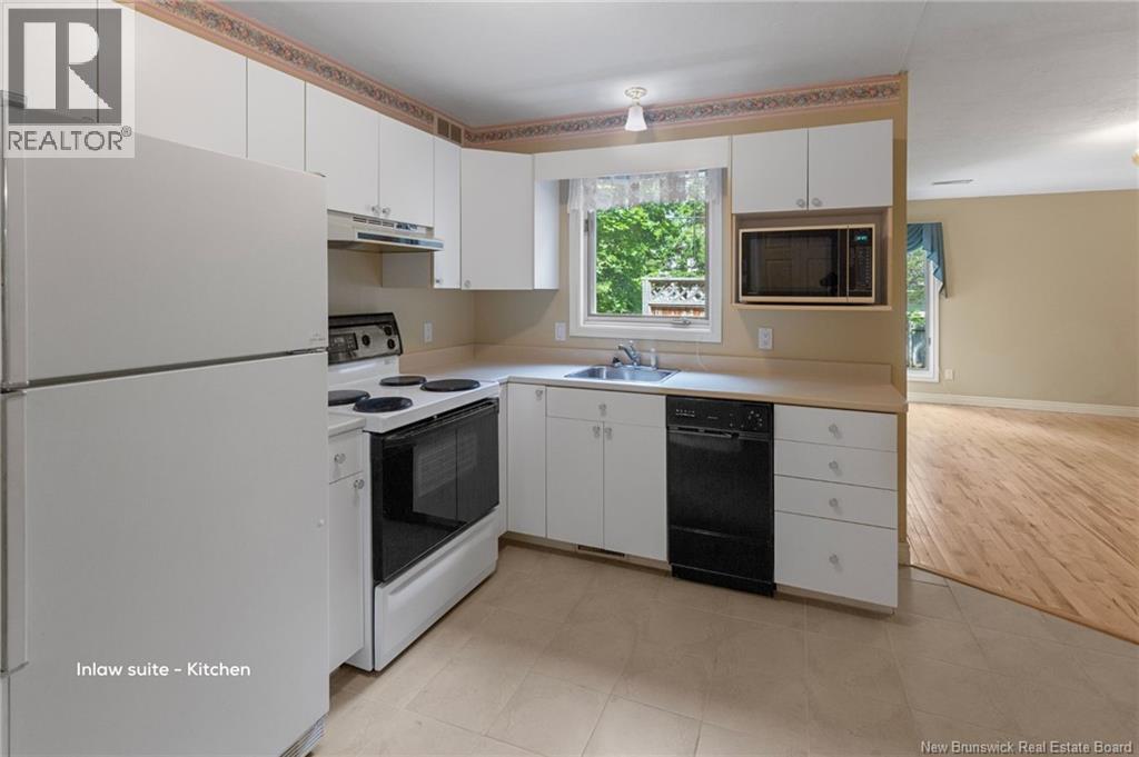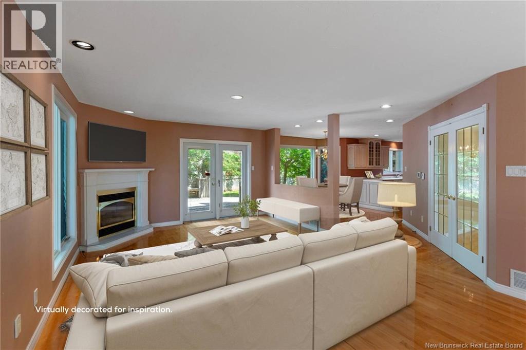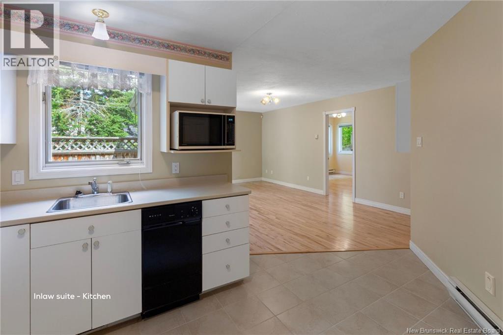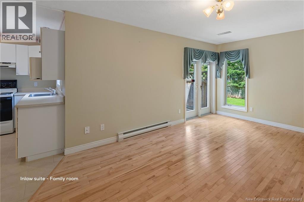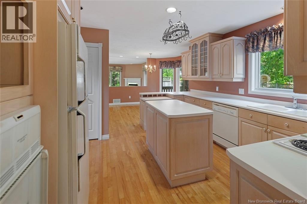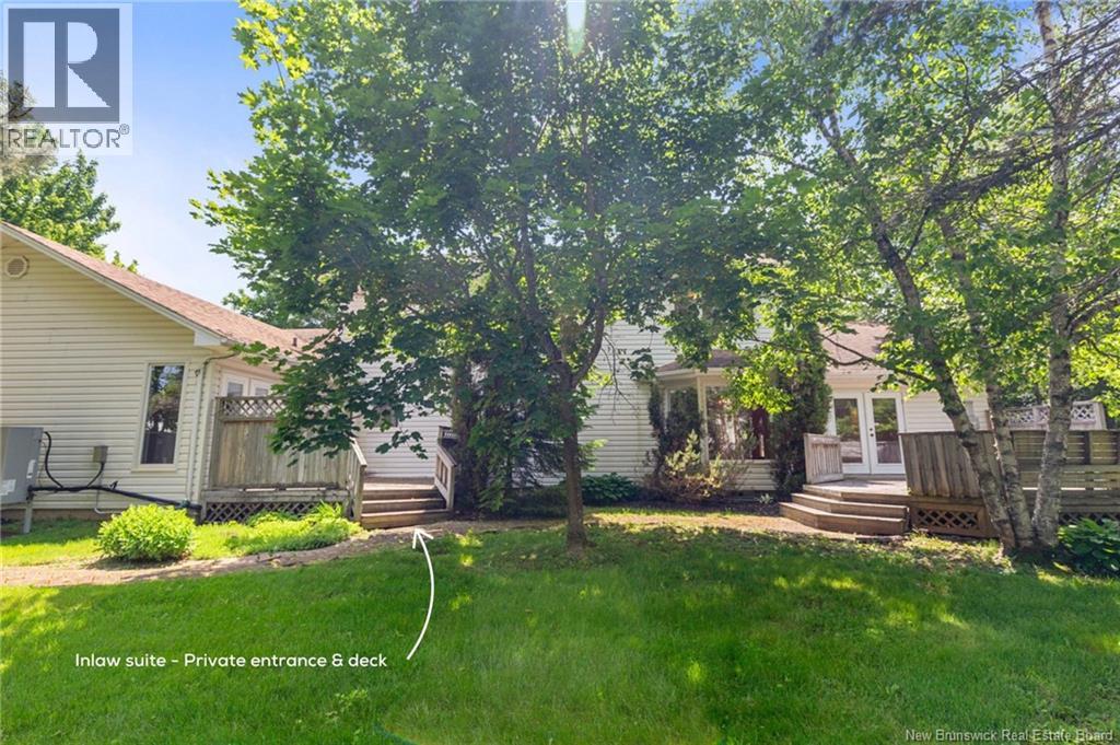 Stately Family Home with In-Law Suite in Moncton North. Welcome to this impressive 2-storey home on a double lot in a quiet Moncton North cul-de-sac. Perfect for families, with the bonus of an income-generating in-law suite: main level, no stairs, private back deck. Inside, enjoy hardwood floors, central air, and a functional layout. The kitchen features built-in appliances, a center island, and walk-in pantry, opening to a sunny dining nook and oversized family room with a cozy propane fireplace. The main floor also offers a formal dining room, living room, half bath, and convenient laundry. Upstairs, the spacious primary bedroom boasts a large walk-in closet and private ensuite. Two additional bedrooms and a 4-piece main bath complete this level. The finished basement adds more living space with a large family/games room, office/den, non-conforming bedroom, 3-piece bath, cold room, and ample storage. Comfort features include central vac, air exchanger, intercom, and alarm system. Outside, enjoy professional landscaping with mature trees, plants, interlocking brickwork, a fully fenced yard, and two decks for entertaining. A well-appointed double attached garage completes the package. If you want space, versatility, and income potential - this is the one! (id:34572)