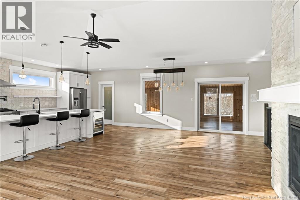 GEOTHERMAL HEATING and IN-LAW SUITE frame this 3,840 sq. ft. home designed for shared living and privacy. The tour opens on the upper level, centered on a kitchen featuring custom cabinetry, quartz countertops, a walk-in pantry, professional-grade appliances, and an oversized island for storage, gathering, and daily use. The living and dining areas flow from the kitchen, wrapped in large windows capturing nature views and anchored by a propane fireplace with a full-height stone mantle. A four-season Florida room adds warmth and flexible space, extending the upper layout to an oversized deck with glass railings. The primary suite includes a walk-in closet and an ensuite with a tiled glass shower and a soaker tub. A second spacious bedroom, a full bathroom and a separate laundry room finish this floor. The main home continues downstairs to a family room, a custom sauna room, 2 additional bedrooms, and a third full bathroom. The fully separate 720 sq. ft. one-bedroom in-law suite sits on the main level, shares access to the attached 27 x 26 garage, and includes a living room, eat-in kitchen, bedroom, and a 4-piece bathroom. Exterior features include a detached 33 x 19 garage, a fire pit area, a covered deck with a six-person hot tub, a central vacuum system, and a separate electrical panel for generator use. A quick closing is available. (id:34572)