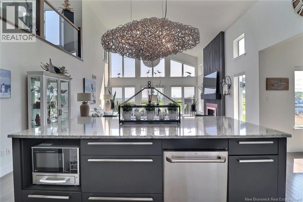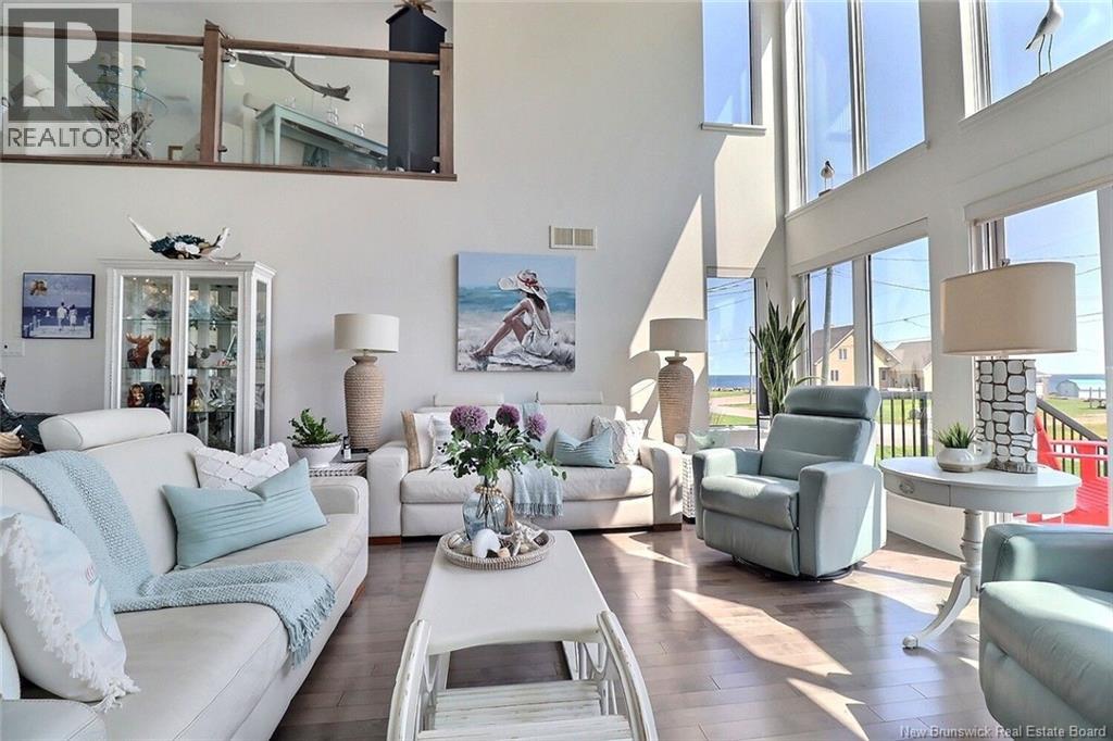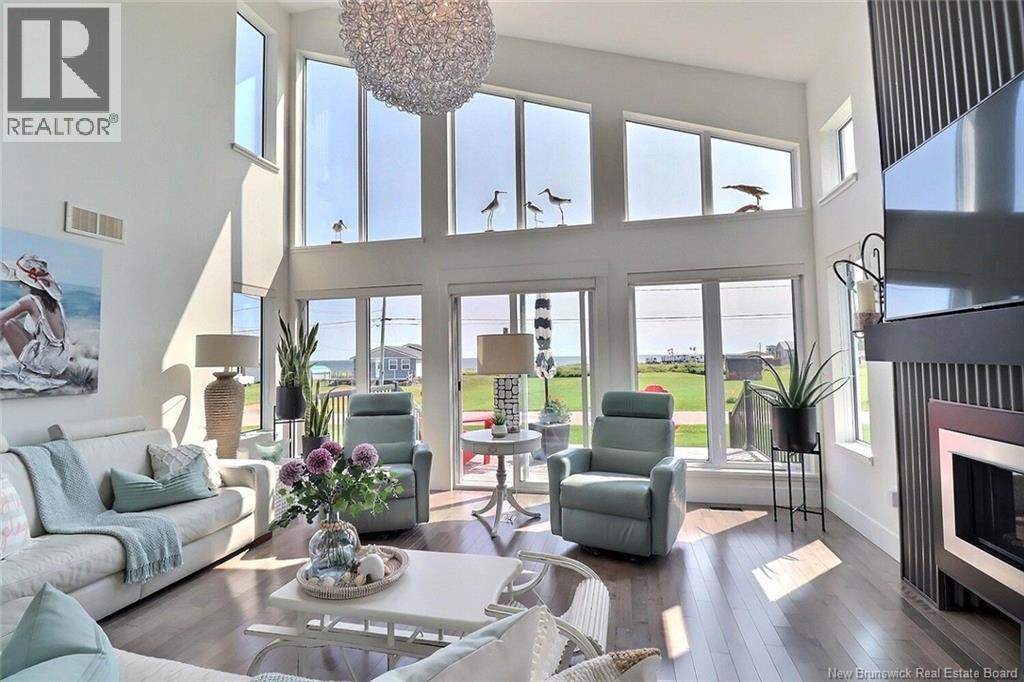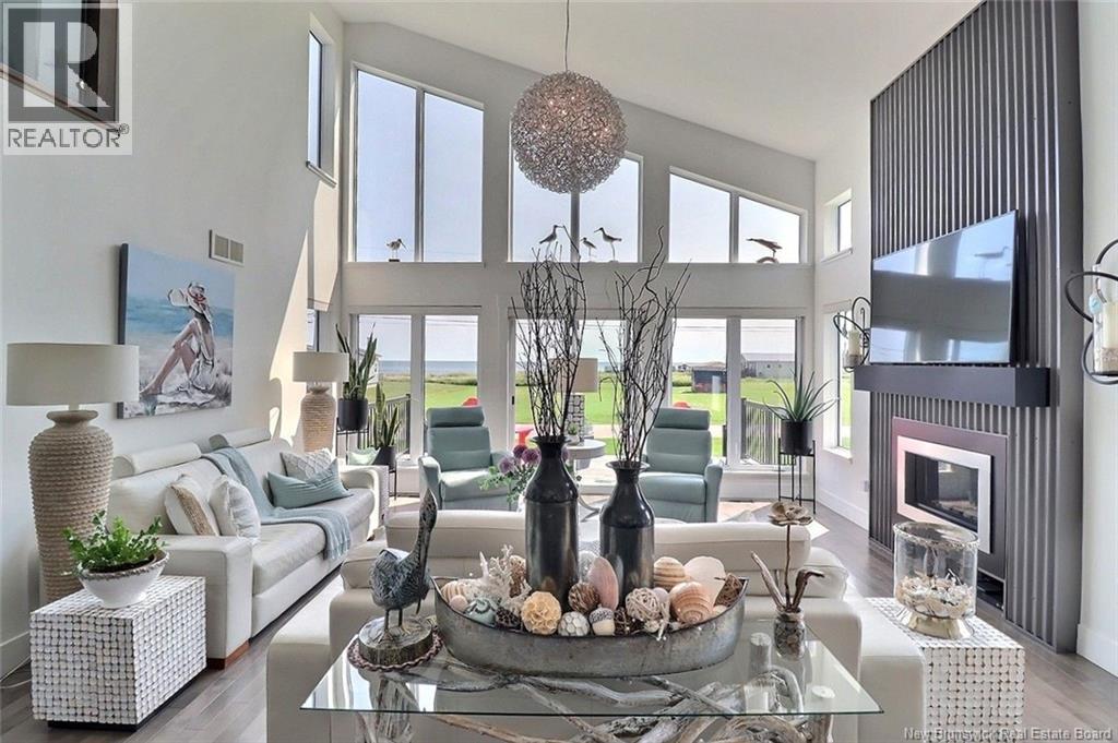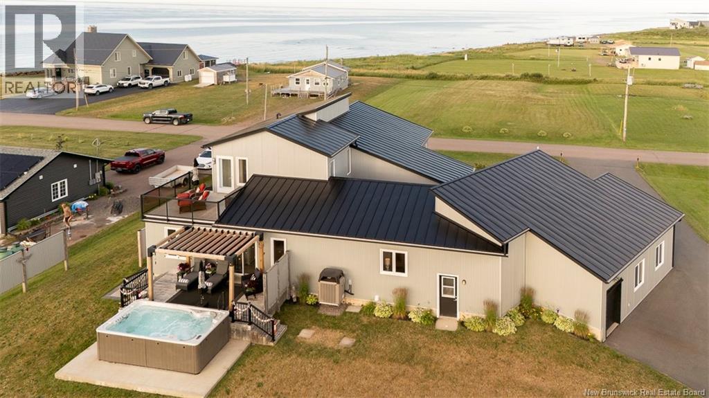 Welcome to 52 Connie, an extraordinary custom-built home offering panoramic water views, deeded beach access, and thoughtful design throughout. Built in 2016 with quality and energy efficiency in mind, this stunning property boasts low-maintenance materials including a durable corrugated steel exterior and metal roof. Step inside and be greeted by soaring ceilings, expansive windows, and a bright, open-concept layout that floods the space with natural light. The chefs kitchen features quartz countertops, custom cabinetry, and premium stainless steel appliances, seamlessly flowing into the living and dining areas; perfect for entertaining. The primary suite offers water views, three double closets, and a spa-like 5-piece ensuite. Two additional bedrooms include generous closet space and a cedar-lined closet upstairs for your seasonal storage needs. Enjoy year-round comfort with the central air heat pump and interior hardwood and ceramic tile throughout. Outside, two oversized decks showcase spectacular sunsets and sunrises. The meticulously landscaped 0.47-acre lot includes a swim spa, a custom fire pit, RV hookup, shed, and a large attached garage with room for two vehicles, toys & workshop. (id:34572)