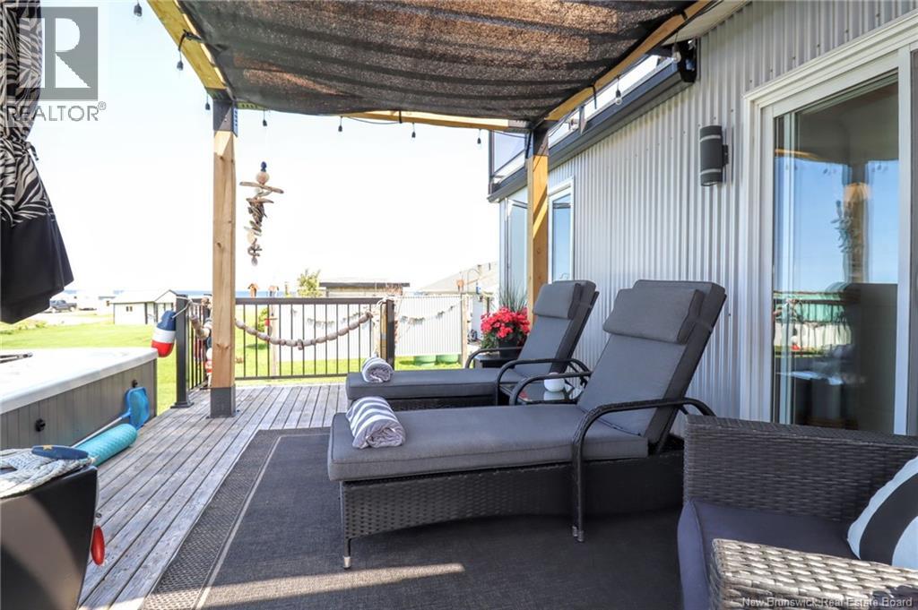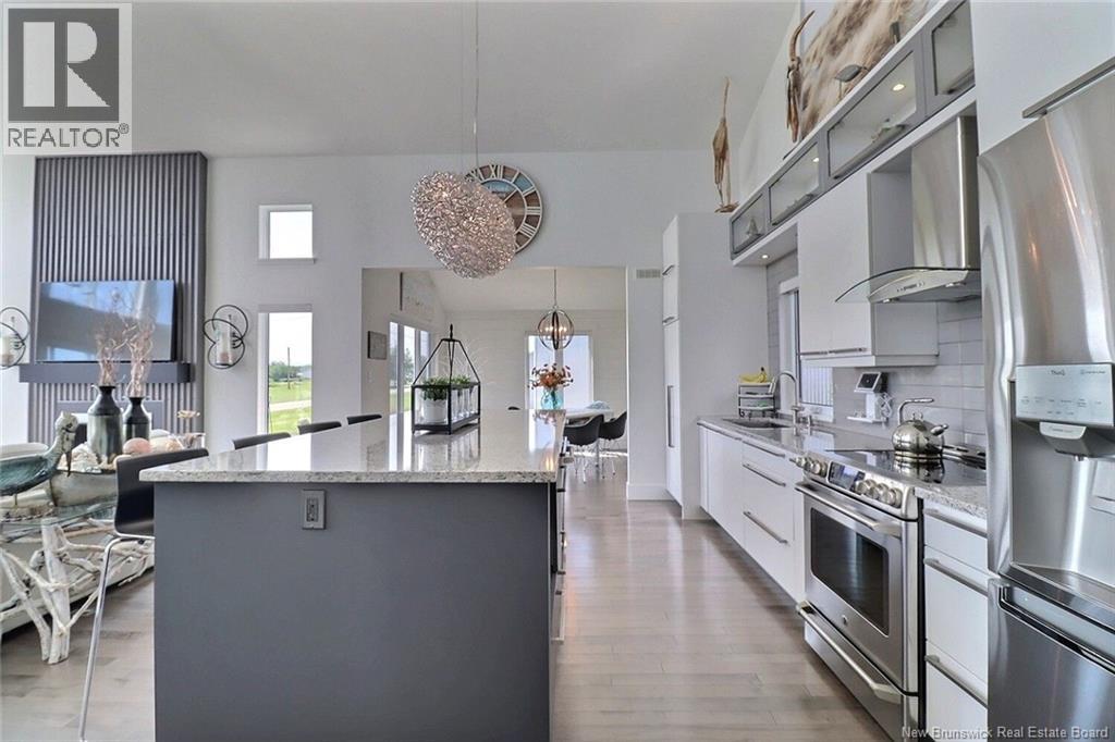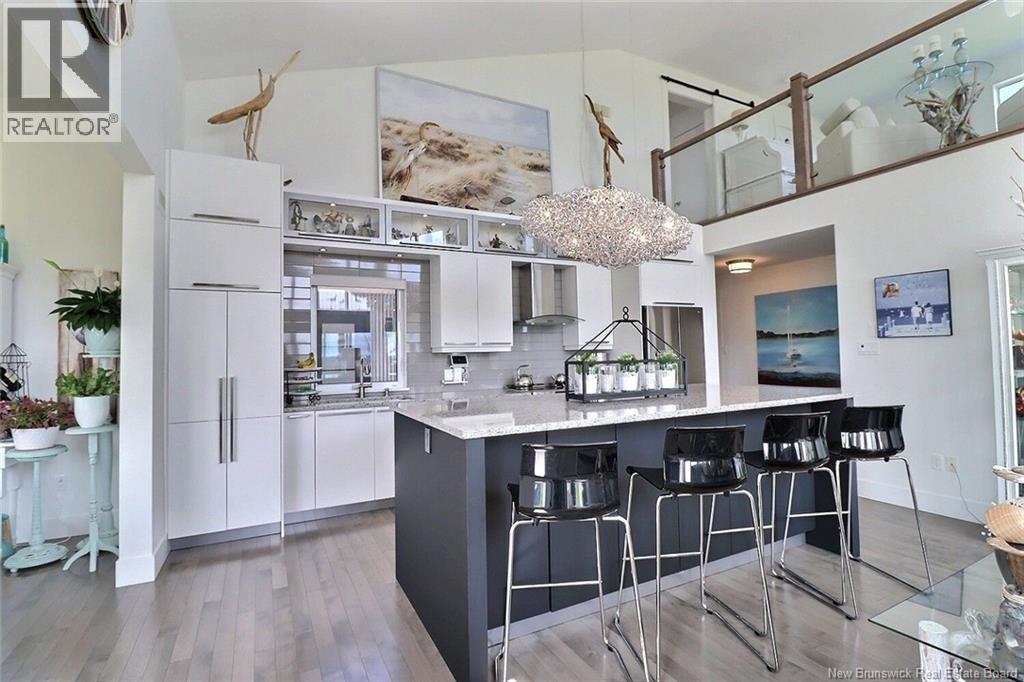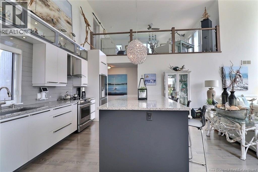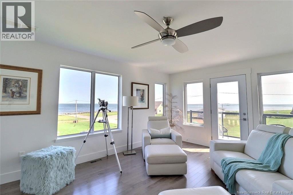 Welcome to 52 Connie, an extraordinary custom-built home offering panoramic water views, deeded beach access, and thoughtful design throughout. Built in 2016 with quality and energy efficiency in mind, this stunning property boasts low-maintenance materials including a durable corrugated steel exterior and metal roof. Step inside and be greeted by soaring ceilings, expansive windows, and a bright, open-concept layout that floods the space with natural light. The chefs kitchen features quartz countertops, custom cabinetry, and premium stainless steel appliances, seamlessly flowing into the living and dining areas; perfect for entertaining. The primary suite offers water views, three double closets, and a spa-like 5-piece ensuite. Two additional bedrooms include generous closet space and a cedar-lined closet upstairs for your seasonal storage needs. Enjoy year-round comfort with the central air heat pump and interior hardwood and ceramic tile throughout. Outside, two oversized decks showcase spectacular sunsets and sunrises. The meticulously landscaped 0.47-acre lot includes a swim spa, a custom fire pit, RV hookup, shed, and a large attached garage with room for two vehicles, toys & workshop. (id:34572)
