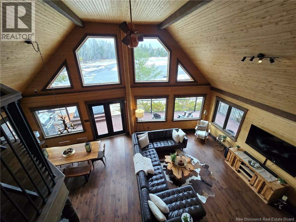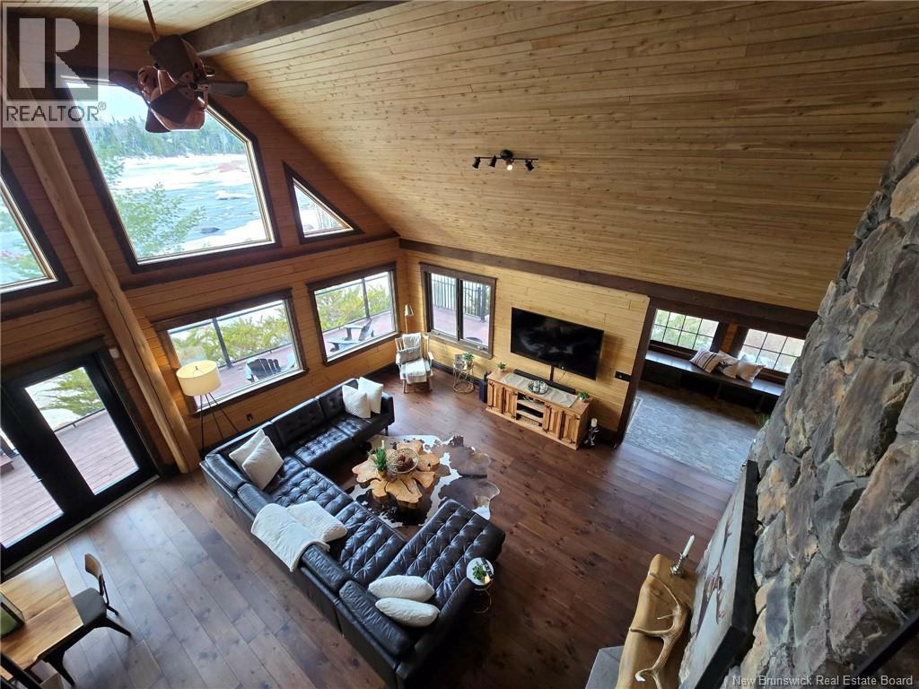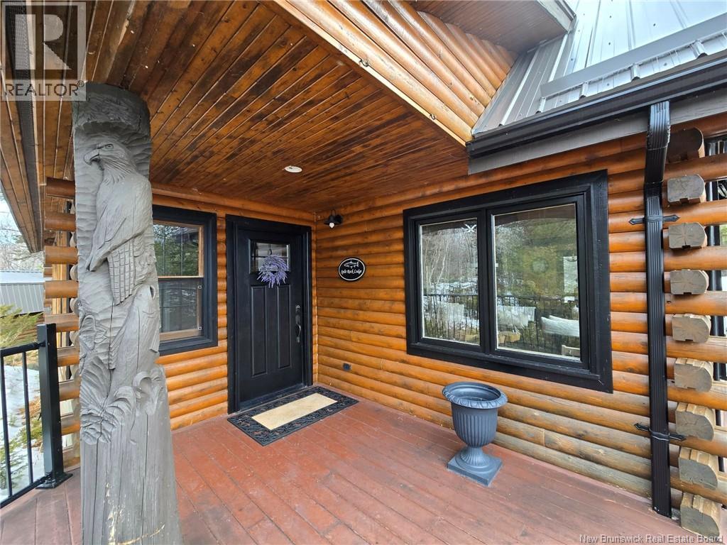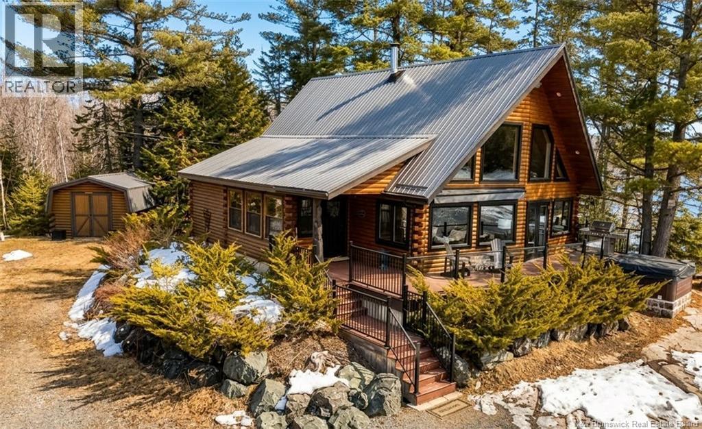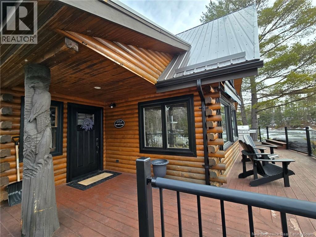 Embrace a lifestyle of tranquility, natural beauty, and modern comfort. Set along a renowned salmon river, this fully renovated log home blends rustic charm with upscale finishesideal as a year-round home or retreat. Just 10 minutes from town, it showcases quality craftsmanship. Inside, cathedral ceilings and large windows fill the space with light and frame river views. A 20-foot stone fireplace anchors the living area, complemented by built-in appliances, a propane stove, granite countertops, and a copper sink. A wraparound deck with glass railings offers clear water views, while the hot tub creates a relaxing setting. The main floor includes a primary bedroom, full bathroom with double vessel sinks, laundry, mudroom, and wood storage. The wood-burning fireplace also serves as an efficient furnace, with on-demand hot water and a generator for backup power. Upstairs features a second bedroom, full bathroom, and loft with a sofa bedideal for guests or a home office. Both levels offer beautiful river views. Surrounded by nature, enjoy deer and bald eagles, with Split Rock Pool nearby attracting Atlantic salmon each fall. The Mikmaq Heritage Hiking Trail across the river offers outdoor adventure, with nearby snowmobile trails. Built from Eastern White Cedar logs on a concrete foundation set into granite rock with a breakwater. Set on 1.46 acres, it offers privacy and four-season enjoyment. Bonus: Sold fully furnishedmove in and enjoy riverfront living. (id:34572)