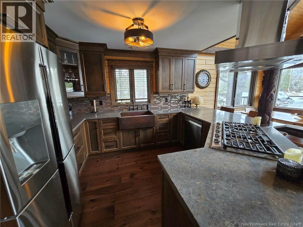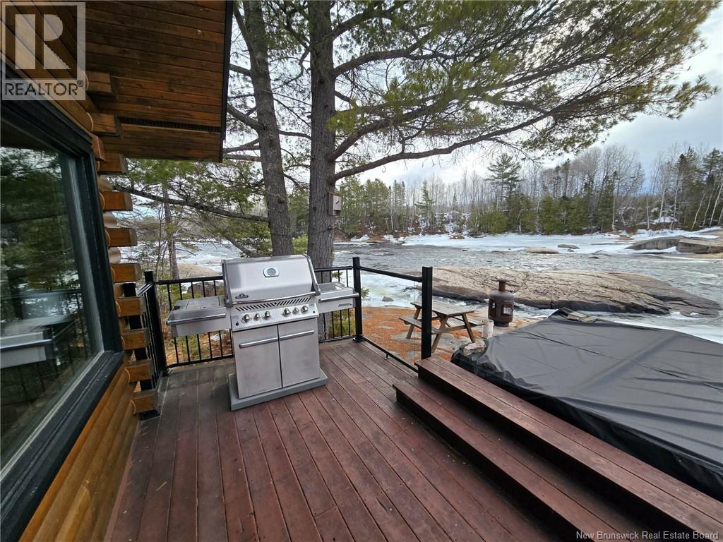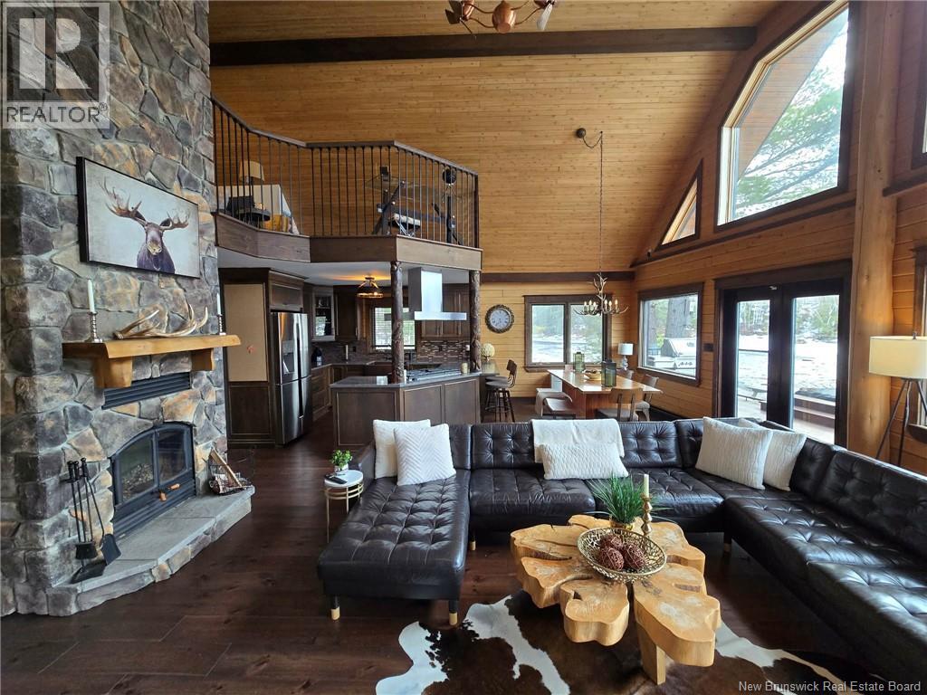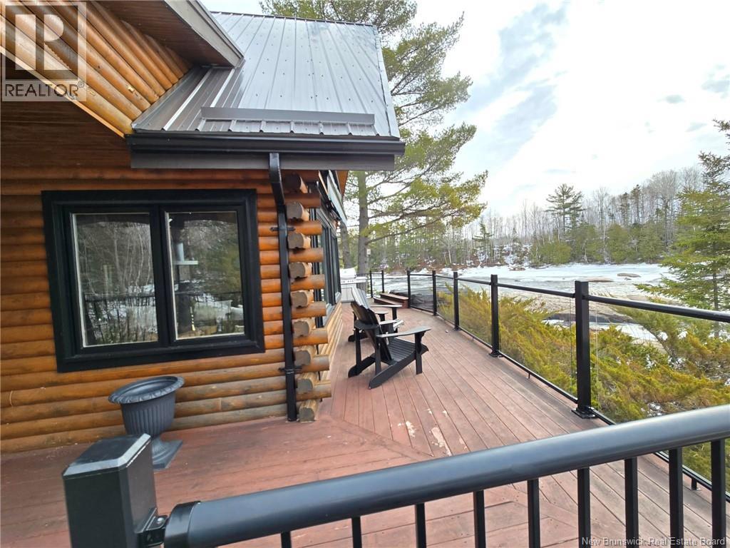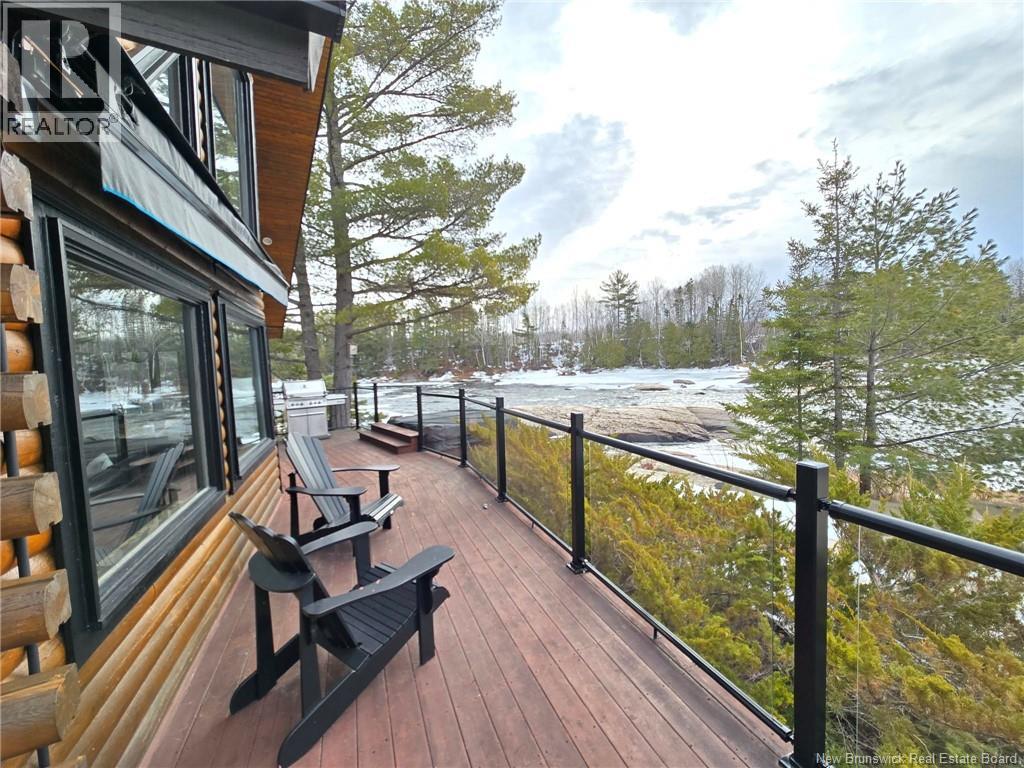 Embrace a lifestyle of tranquility, natural beauty, and modern comfort. Set along a renowned salmon river, this fully renovated log home blends rustic charm with upscale finishesideal as a year-round home or retreat. Just 10 minutes from town, it showcases quality craftsmanship. Inside, cathedral ceilings and large windows fill the space with light and frame river views. A 20-foot stone fireplace anchors the living area, complemented by built-in appliances, a propane stove, granite countertops, and a copper sink. A wraparound deck with glass railings offers clear water views, while the hot tub creates a relaxing setting. The main floor includes a primary bedroom, full bathroom with double vessel sinks, laundry, mudroom, and wood storage. The wood-burning fireplace also serves as an efficient furnace, with on-demand hot water and a generator for backup power. Upstairs features a second bedroom, full bathroom, and loft with a sofa bedideal for guests or a home office. Both levels offer beautiful river views. Surrounded by nature, enjoy deer and bald eagles, with Split Rock Pool nearby attracting Atlantic salmon each fall. The Mikmaq Heritage Hiking Trail across the river offers outdoor adventure, with nearby snowmobile trails. Built from Eastern White Cedar logs on a concrete foundation set into granite rock with a breakwater. Set on 1.46 acres, it offers privacy and four-season enjoyment. Bonus: Sold fully furnishedmove in and enjoy riverfront living. (id:34572)