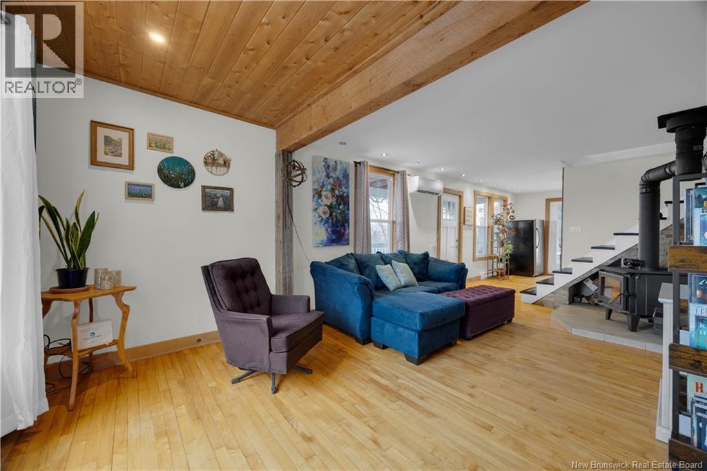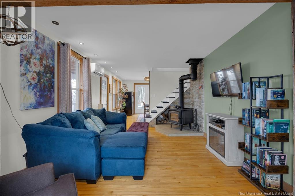 Located just across the street from the Saint John River in the charming village of Hampstead, this cozy and inviting two-storey home offers exceptional curb appeal and is full of character throughout. The main level features a spacious living room complete with a WETT-certified wood stove, an updated bathroom, a bright dining area, and a functional galley-style kitchen. From here, step out onto the side deckperfect for entertainingwith access to a relaxing hot tub. Upstairs, youll find three generously sized bedrooms, all complemented by beautiful farmhouse-style hardwood flooring that adds warmth and charm. Enjoy peaceful mornings or evening sunsets from the covered front veranda overlooking the Saint John River, or unwind on the private side deck. This home is ideal for outdoor enthusiasts, with fishing, boating, hiking, and hunting all nearby. Youre just minutes from the Hampstead Wharf and Evandale Resort & Marina, and within easy driving distanceapproximately 50 minutes to Saint John or Fredericton, and 45 minutes to Sussex. Recent upgrades include two heat pumps for year-round comfort and efficiency, a new roof, and numerous renovations completed over the past several yearsmaking this home move-in ready and well-maintained. (id:34572)