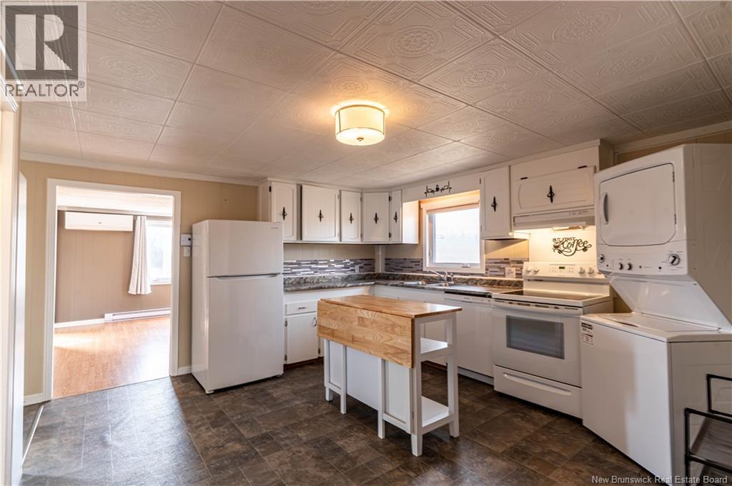 Located in the peaceful community of Acadieville, this well kept 2 bedroom, 1 bathroom one level home offers comfortable and practical living in a quiet rural setting. Inside, youll find a bright and functional layout with inviting living spaces, a spacious kitchen with ample cabinetry and a movable island, plus a beautifully finished entryway with warm natural wood accents that adds charm and character. Both bedrooms offer comfortable space, and the full bathroom is clean and well maintained. This home is a great option for first time buyers, downsizers, or anyone looking for the ease of one level living. The roof was redone in 2023, offering added peace of mind for the next owner. Outside, the property also includes an additional 12' x 20' shed/workshop that is unfinished however wired, making it ideal for storage, hobbies, or future workspace potential. With its nicely maintained interior, functional layout, and added outbuilding, this property is a great opportunity to enjoy simple living in Acadieville. (id:34572)