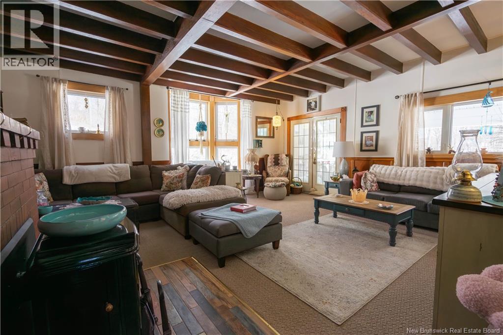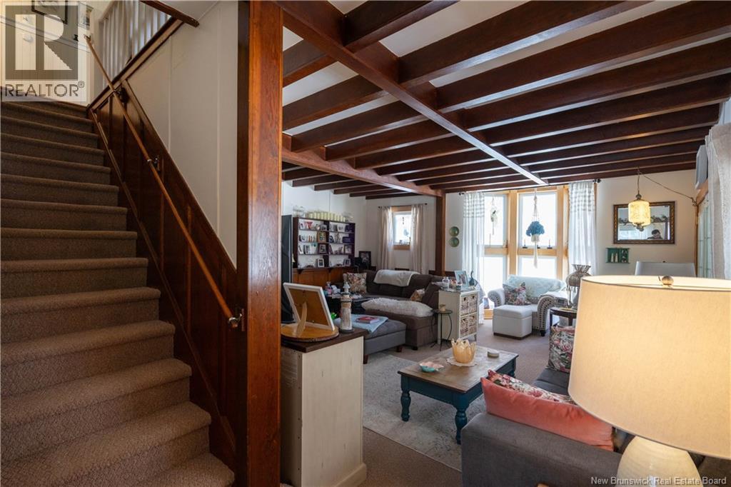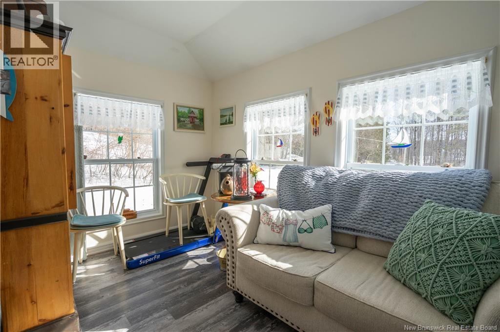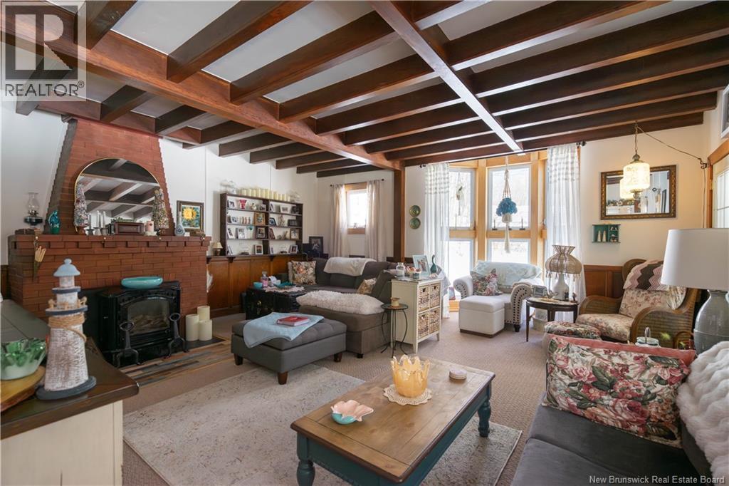 Charming 5-bedroom two-storey home on 1.65 acres plus a separate 1.9 acre waterfront beach lot across the road (total 3.55 acres)in Woodmans Point. Covered verandah and wraparound deck on two sides of the home, offer inviting outdoor living space. All areas inside and outside have been extensively renovated by the current owners including a propane furnace with heat pump connected to furnace for heating and cooling, ductless heat pump, renovated kitchen and bathrooms, a list of improvements is available. The sunporch leads to a spacious living room featuring wood beam ceiling, large bay window, and propane stove set in a brick fireplace. Formal dining room and updated kitchen with adjacent craft/flex room. Back porch/mudroom entry includes a convenient half bath. Upstairs includes five bedrooms, full bath, and a cozy sitting area overlooking the front yard. Abundant closets and built-in storage throughout. Two driveways and a charming, renovated outbuilding known as 53A provides excellent entertaining or hobby space. Little Red Hen playhouse included. Ideally located with easy highway access to Saint John or Fredericton, minutes to Grand Bay amenities, and approximately 20 minutes to the Harbour Bridge. A rare opportunity combining privacy, space, and waterfront enjoyment. (id:34572)