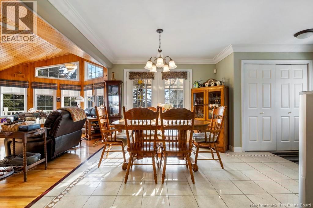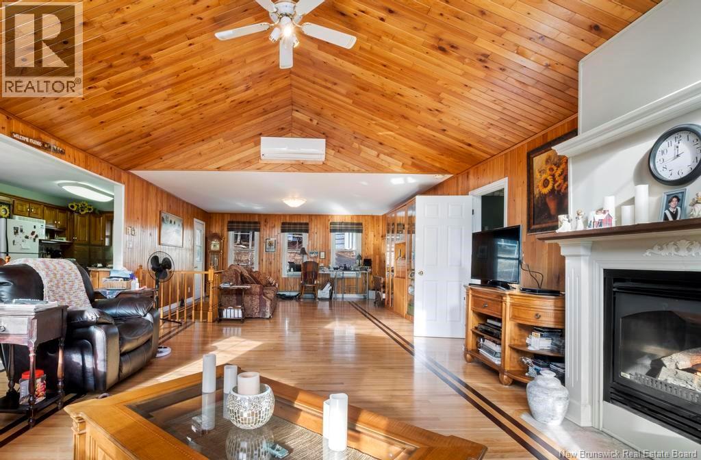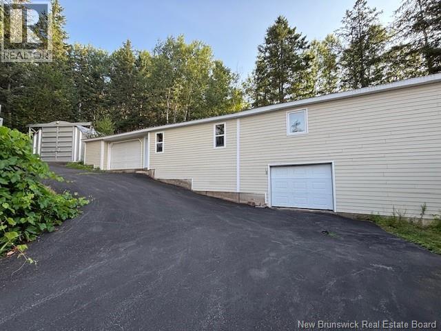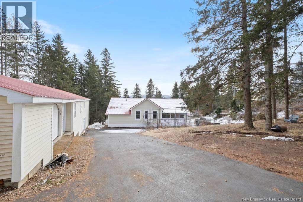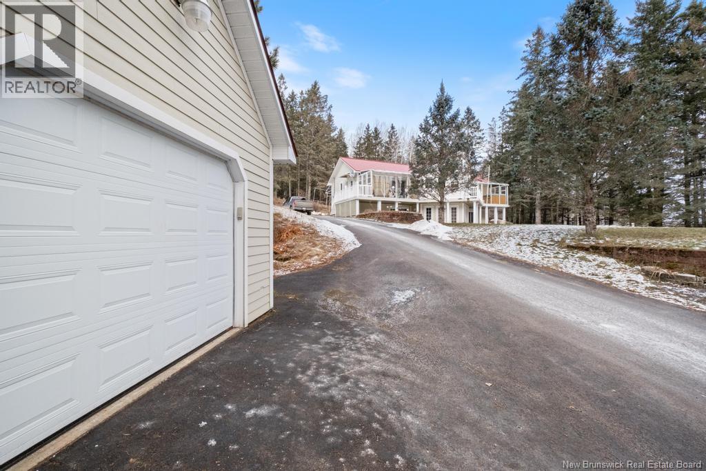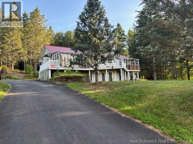 This custom built chalet has so much to offer all tucked into the trees sitting on a one acre lot on the Back Rd in Penobsquis. On the main level as you come in thru the the 3 season enclosed sunroom you walk into the great room with vaulted ceiling and propane fireplace, walls and floors are all covered in hemlock. This room is huge and is open to the dining area. The kitchen with cherry cabinets and granite counter tops has lots of cabinet and counter top space. As you come in the side door of the house into the kitchen area there is a bathroom and mudroom. Off the great room on the back of the house there is another enclosed sunroom so that you can enjoy the outside from all angles. The primary bedroom is on the main level with a large ensuite bath and soaker tub plus heated floors and a walk in closet. The garden door off the primary bedroom leads to a hot tub and access to the rest of the wrap around patio which is all done in PVC. The lower level of the home with a walk out to the front yard has another bedroom (no egress window but close to the outside door) a huge entertaining area with a napolean propane stove and another full bath. This area has a ton of opportunities to fit your life style. The driveway is paved all the way to the upper garages. There is a small garage 16x20 at the bottom of the property. The other garages are 48x26 and 44x26 and the quonset is 20x24. Another great feature is the fish pond and generac generator. (id:34572)