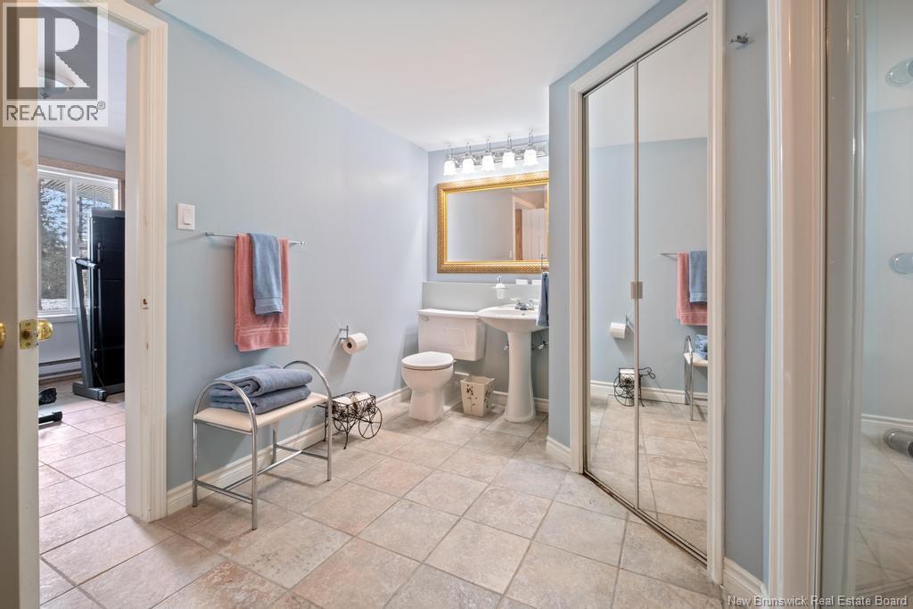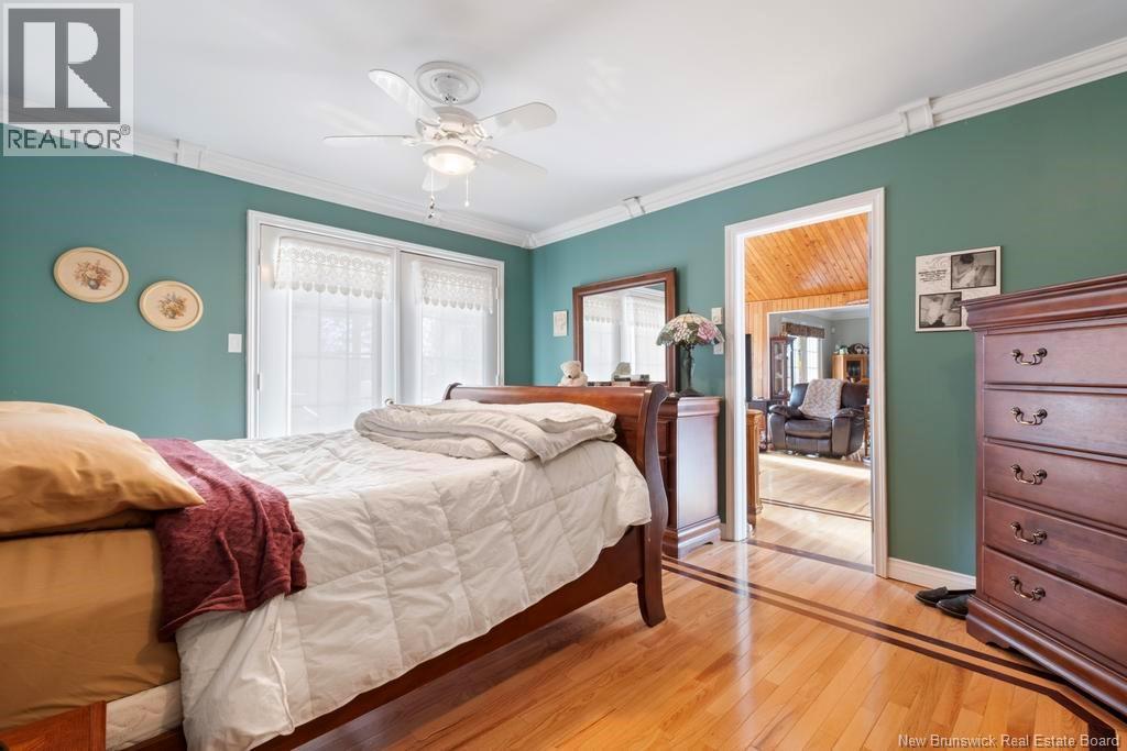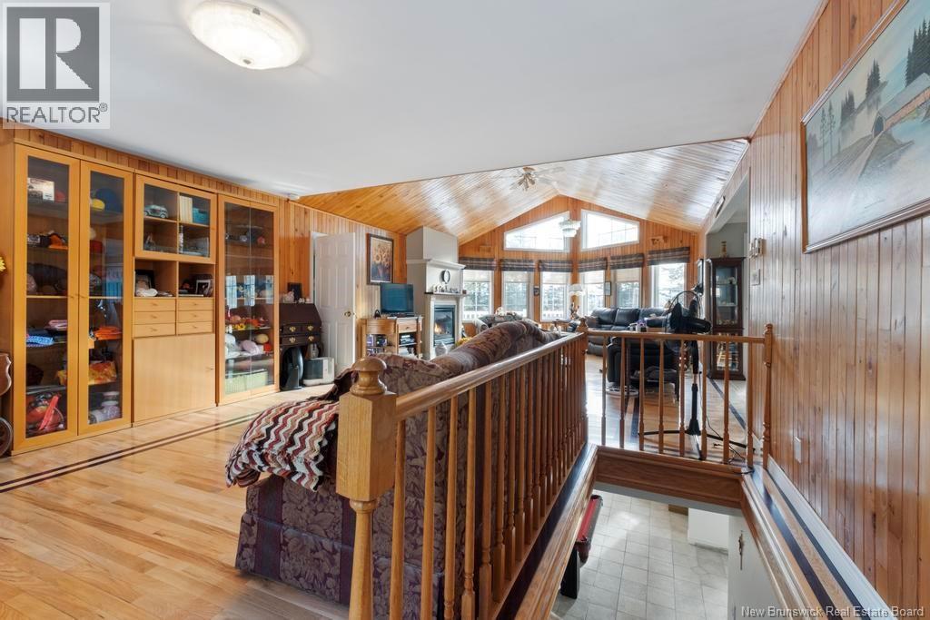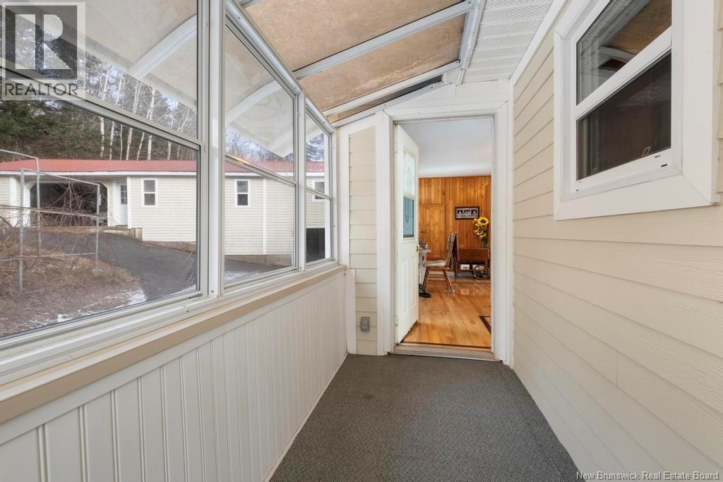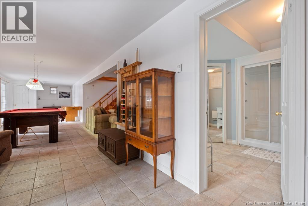 This custom built chalet has so much to offer all tucked into the trees sitting on a one acre lot on the Back Rd in Penobsquis. On the main level as you come in thru the the 3 season enclosed sunroom you walk into the great room with vaulted ceiling and propane fireplace, walls and floors are all covered in hemlock. This room is huge and is open to the dining area. The kitchen with cherry cabinets and granite counter tops has lots of cabinet and counter top space. As you come in the side door of the house into the kitchen area there is a bathroom and mudroom. Off the great room on the back of the house there is another enclosed sunroom so that you can enjoy the outside from all angles. The primary bedroom is on the main level with a large ensuite bath and soaker tub plus heated floors and a walk in closet. The garden door off the primary bedroom leads to a hot tub and access to the rest of the wrap around patio which is all done in PVC. The lower level of the home with a walk out to the front yard has another bedroom (no egress window but close to the outside door) a huge entertaining area with a napolean propane stove and another full bath. This area has a ton of opportunities to fit your life style. The driveway is paved all the way to the upper garages. There is a small garage 16x20 at the bottom of the property. The other garages are 48x26 and 44x26 and the quonset is 20x24. Another great feature is the fish pond and generac generator. (id:34572)