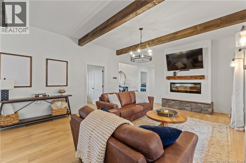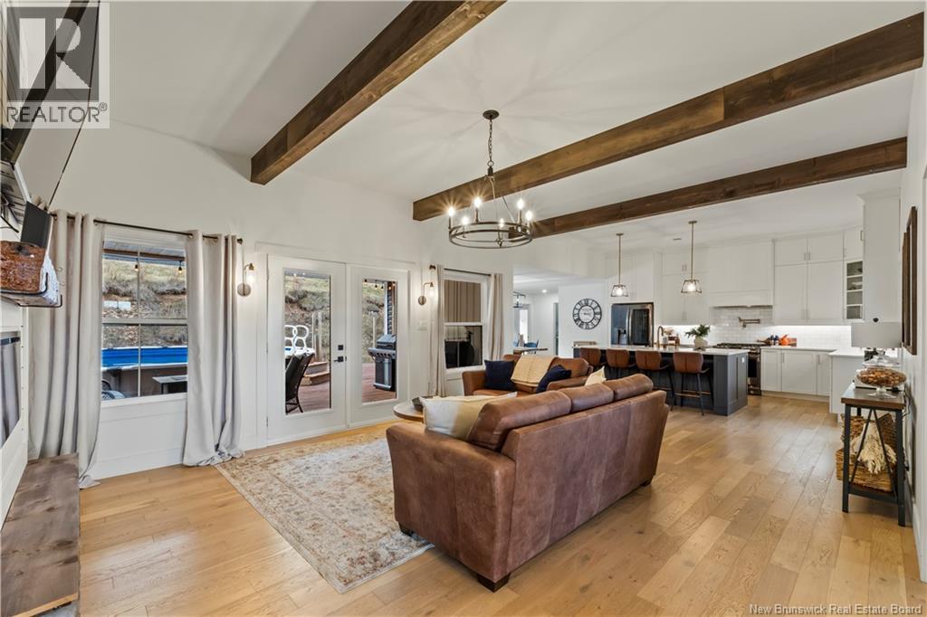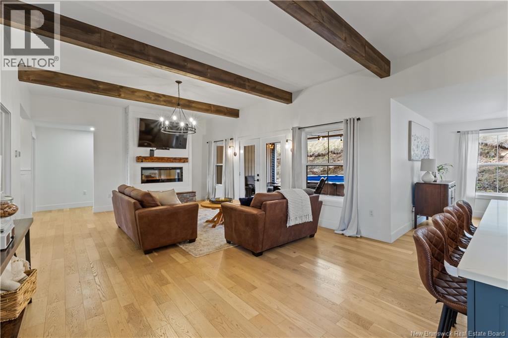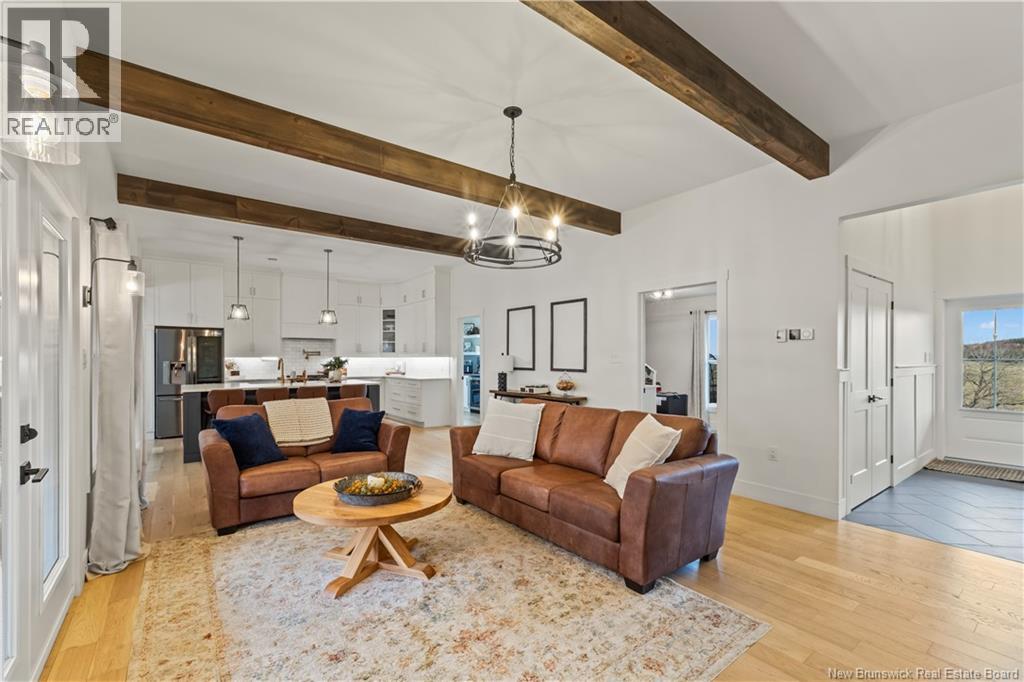 This modern, gorgeous home was built in 2020 and features many upgrades for luxury living. Perched at the top of one of the areas most picturesque valleys, this home combines modern comfort with pastoral peace and quiet, yet is located only 3 minutes from downtown Sussex and all amenities. Enjoy your morning coffee on your covered front porch as you watch the sunrise or relax on your covered back deck by the 27-foot above ground pool. There is plenty of room to spread out, with 33.5 acres of land and over +2,500 square feet of living space on the main level. Inside you will find 4 bedrooms, an open concept kitchen, dining and living room area with 10-foot beamed ceilings and electric fireplace, large pantry, foyer with 16-foot ceilings, en-suite with fireplace, walk-in closet and soaker tub, laundry room, 4-piece bath and mudroom, leading you to the partly-finished basement where there is more living and storage space, perfect for kids or hobbies. The basement is also plumbed for a third bathroom if desired. The main level has engineered hardwood throughout, quartz countertops and custom cabinets in the kitchen and a custom-tiled shower. The triple car garage also has a bonus loft area with 2 separate spaces, which can work as an office or extra bedroom. This home offers so much for families, couples or retirees with its main level living layout and is a true stopper on the hill! The seller is a licensed REALTOR® in the province of NB. (id:34572)