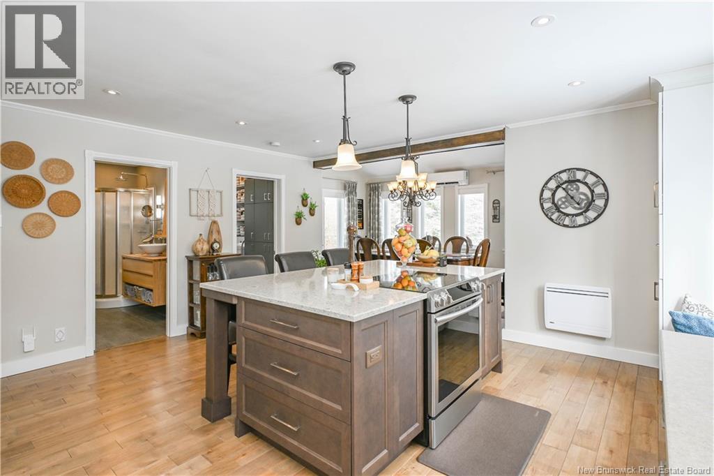 Welcome to 546! Combining charm and a unique style, this beautiful home is the ideal choice for family living. Located in the lovely village of St-Simon, just 8 minutes from downtown Caraquet, it offers both tranquility and close proximity to essential services, shops, and entertainment. On the main level, youll find a spacious and welcoming entrance, a stunning bathroom with heated floors, and a laundry area with a pantry. The modern and functional kitchen is truly a dream space, featuring quartz countertops and an island, perfectly designed for cooking and entertaining. The adjacent dining area flows seamlessly into this inviting living space, while a large, bright living room with a propane fireplace on the other side invites relaxation. Upstairs, the home offers a primary bedroom with a walk-in closet, an additional bathroom, and two spacious bedrooms, ideal for family or guests.The basement features a cozy living room with a wood stove, a family room that can be customized to suit your needs, a cold room, a storage room, and a mechanical room. Set on a beautifully landscaped one-acre lot, the property includes a double garage, two sheds, and a greenhouse, offering plenty of space for storage and outdoor projects. With its warm ambiance and unique character, this home is exactly what youve been looking for. (id:34572)