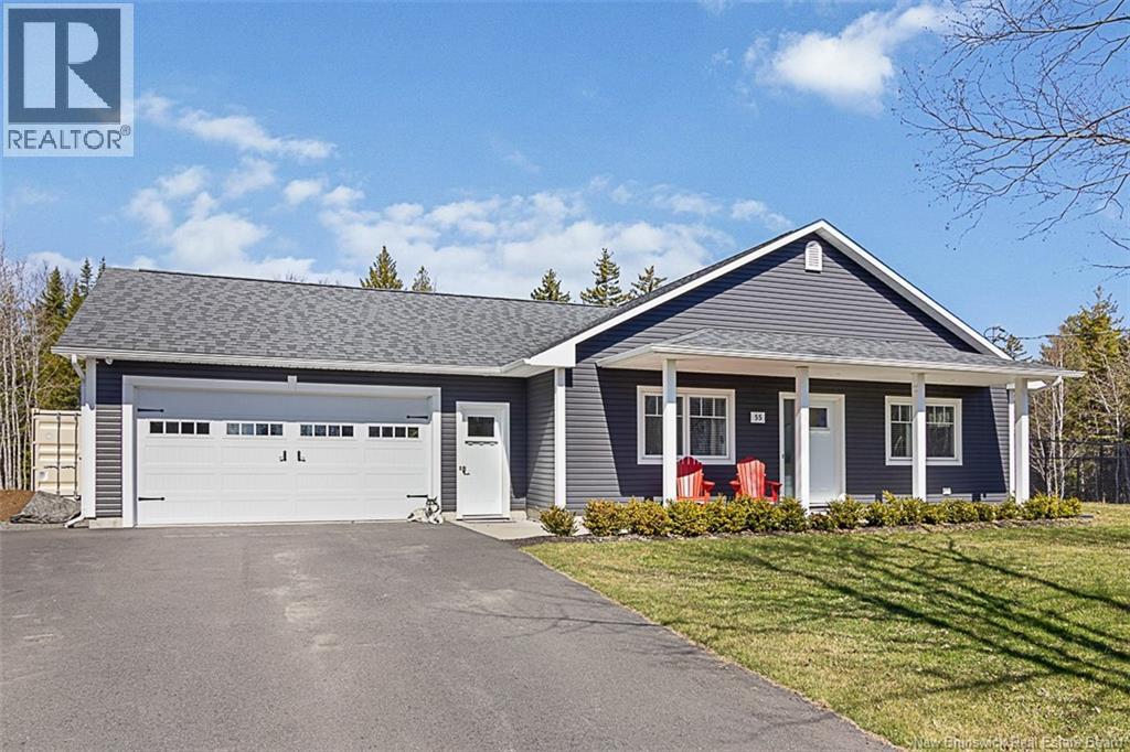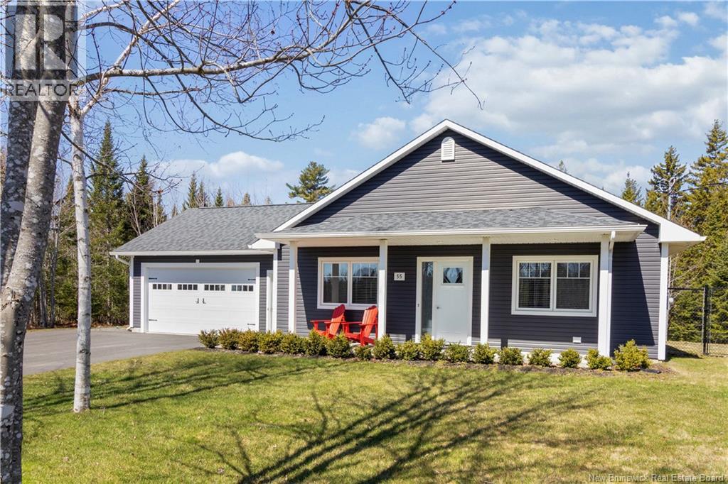 Theres one-level living, theres privacy and then theres 55 Munner Drive in a league all of its own. Thoughtfully designed and completed in 2017, this home in ever-desirable Popple Hill Estates is situated just outside city limits on a 2.14-acre lot. In sum, this 2-bedroom property strikes a comfortable balance between privacy and convenience. Recent upgrades to this bungalow include a forced air heat pump and extensive landscaping work. A covered front verandah leads into the main living area, or head into the garage first an impressive space that was converted into a home gym and office space. Additionally, it boasts a ductless heat pump so you can use the space year-round! Whether youre seeking the ultimate man cave, a workshop, or prefer to actually park your car there, this garage offers the versatility you need. The open concept great room hosts a modern kitchen, dining space, and spacious living room. The kitchen is both stylish and practical, featuring crisp white cabinetry, a well-planned layout, a gas range, and a movable island with extra storage and seatingperfect for everything from morning coffee to casual entertaining. From here, you have direct access to the concrete patio for seamless indoor/outdoor dining. The home offers two good-sized bedrooms, including a primary suite with a walk-in closet and private ensuite bath. The bright ensuite bathroom boasts a walk-in shower for accessibility and comfort. Meanwhile, a second full bathroom, additional storage throughout, and a cleverly tucked-away laundry area add to the homes efficient design. Outside, the property continues to impress. Extensive landscaping work enhances the natural setting, while the paved driveway adds to the curb appeal. The fenced backyard offers both privacy and functionality. If youre downsizing or seeking a country retreat close to amenities, 55 Munner Drive is ready to be your Home Sweet Home. (id:34572)