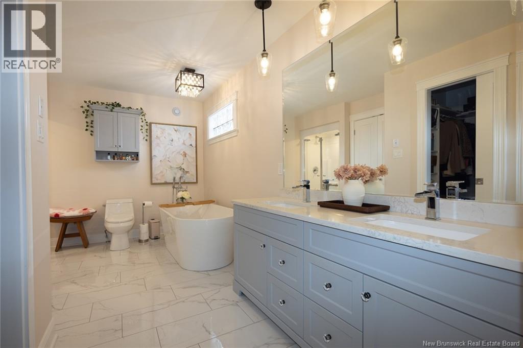 Welcome to 56 Bobak Place, Fredericton, New Brunswick, an extraordinary ""Net Zero"" executive garden home style bungalow that stands out for its custom craftsmanship, refined finishes, and commanding presence. Slightly larger than surrounding homes, this residence offers an elevated sense of space, luxury, and sophistication from the moment you arrive. Designed with both elegance and functionality in mind, the home features a stunning open-concept layout highlighted by a three-way fireplace that seamlessly connects the main living areas, creating warmth and ambiance ideal for both everyday living and entertaining. Custom finishes are found throughout, showcasing meticulous attention to detail and a level of quality that is truly exceptional. The oversized, luxurious en suite serves as a private retreat, offering spa-like comfort and upscale design elements that elevate the primary bedroom experience. Every room reflects thoughtful planning and premium execution. The exterior is equally impressive, boasting a stone-faced finish with striking dark accents, giving the home a bold, modern, and exquisite curb appeal. This is a property that commands attention while fitting beautifully into its upscale surroundings. Located in a desirable Fredericton West Hills neighbourhood, 56 Bobak Place delivers executive living at its finest, combining size, style, and superior craftsmanship into one remarkable home. (measurements to be verified by purchaser) (id:34572)