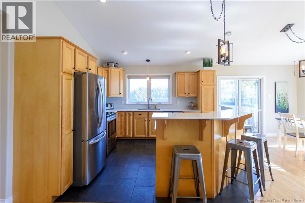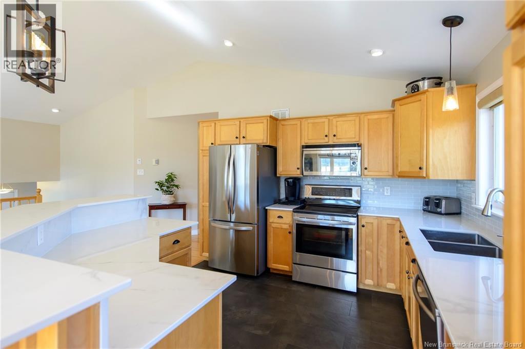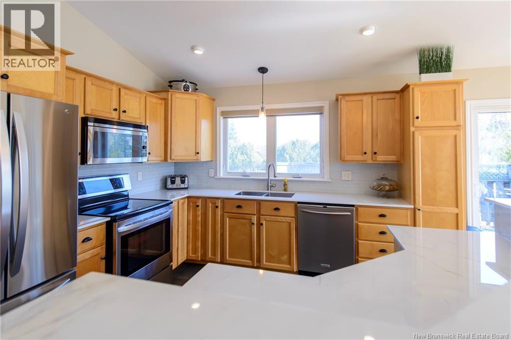 This pristine 5 bedroom side-split is the perfect blend of style, space, and functionality... ideally located in a highly desirable neighbourhood with access to a bike park and scenic walking trails. Step inside to a wide, welcoming entrance that opens into a bright and spacious main level. The open-concept layout features a sun-filled kitchen and living area, highlighted by large windows and impressive cathedral ceilingsperfect for both everyday living and entertaining. From the kitchen, walk out onto a lovely deck, ideal for enjoying your morning coffee or hosting guests.The main floor also includes a full bathroom complete with an air jet tub and convenient walk-through access to the primary bedroom. The primary suite is generously sized, easily accommodating a king-size bed, and boasts a beautiful walk-in closet. Three additional bedrooms complete the main level, offering ample space for family or guests. Downstairs, youll find a fully finished basement that continues the homes quality with hardwood floors extending from the main level. This bright and expansive space includes a large family room, two additional bedrooms, a three-quarter bathroom, and a dedicated laundry and utility area. Outside, the private backyard is a true retreat, featuring a concrete patio and a charming gazeboperfect for relaxing or entertaining in a peaceful setting. A paved driveway offers plenty of parking, with additional paved space beside the garage for trailers, bikes or boats, and the proper two car garage offers abundant storage, as well as 2nd large shed/workshop space offering further storage or hobby space. This location in one of Quispamsis most sought-after family neighborhoods. (id:34572)
