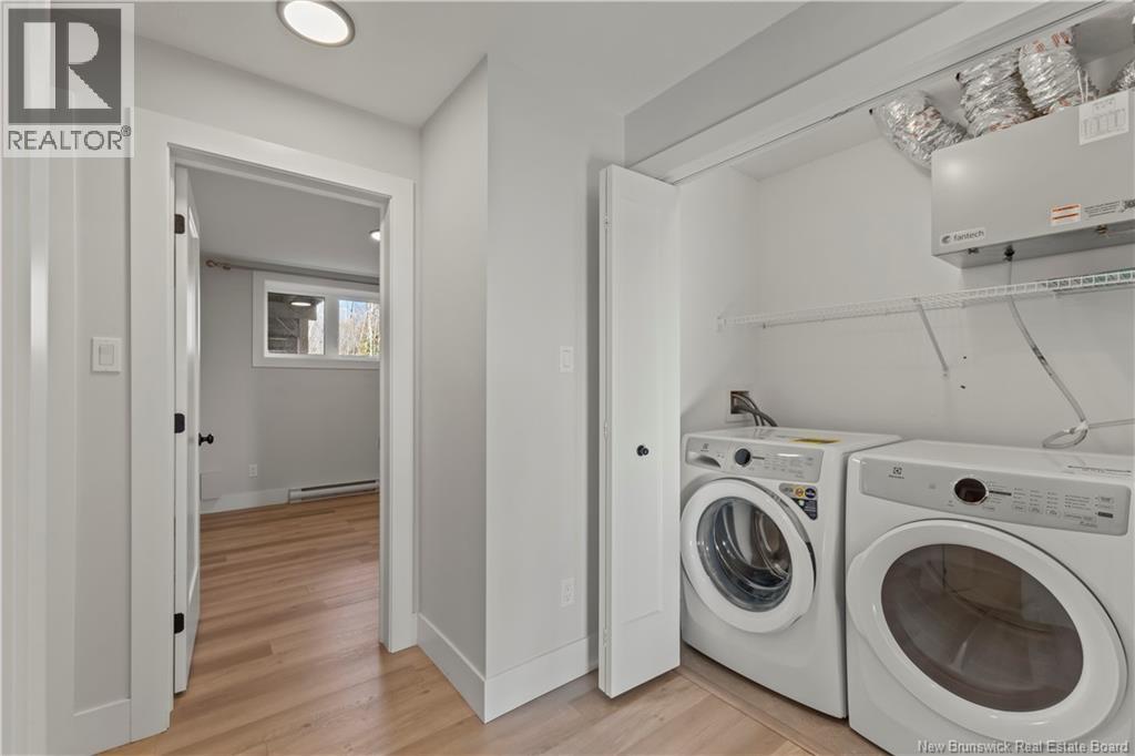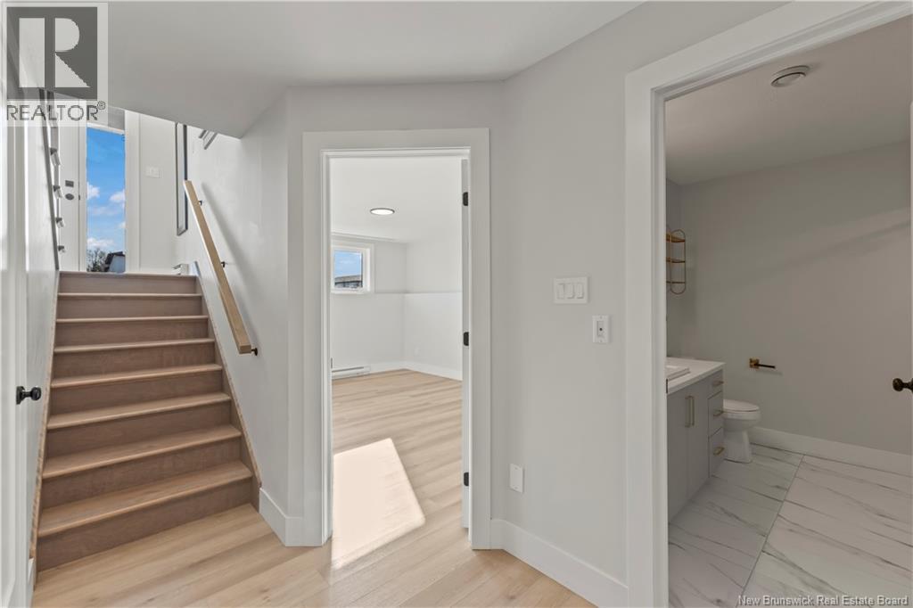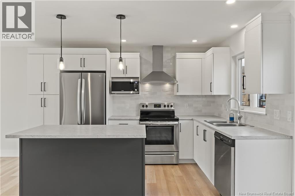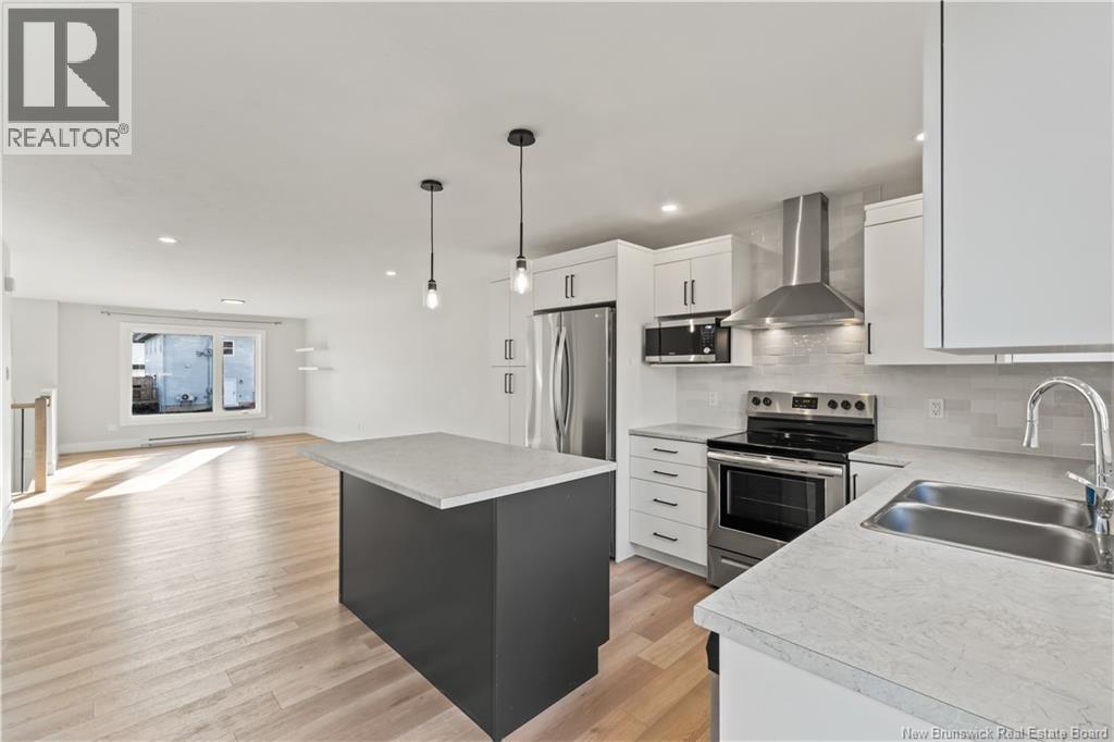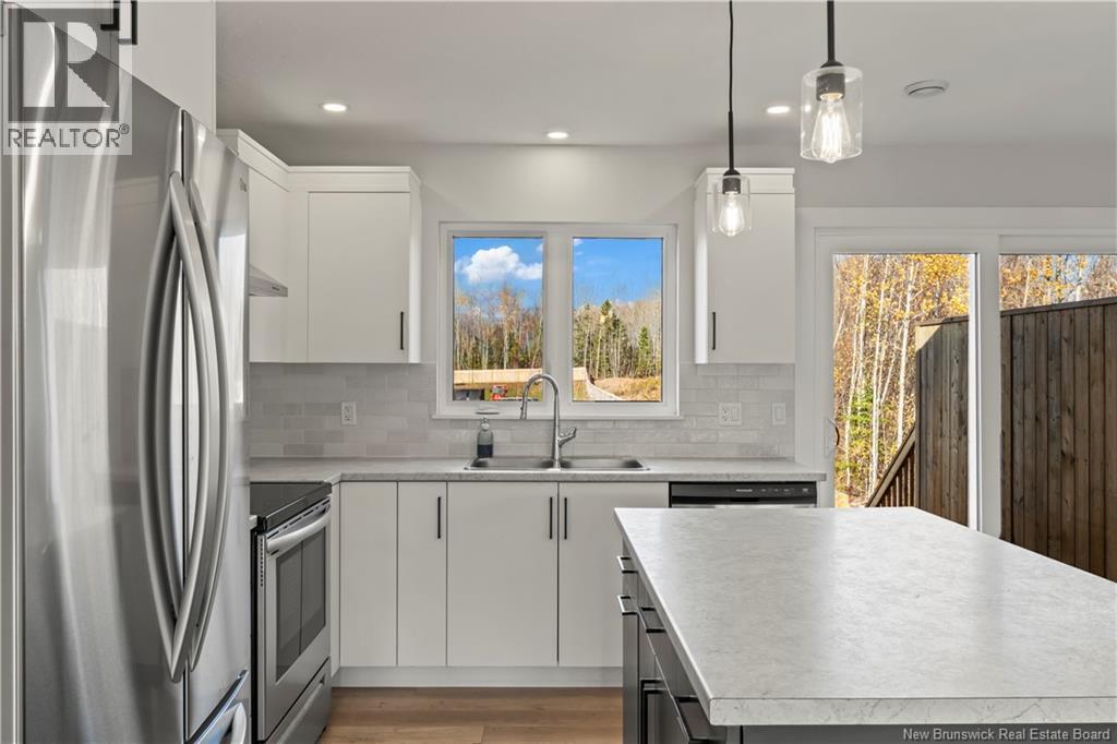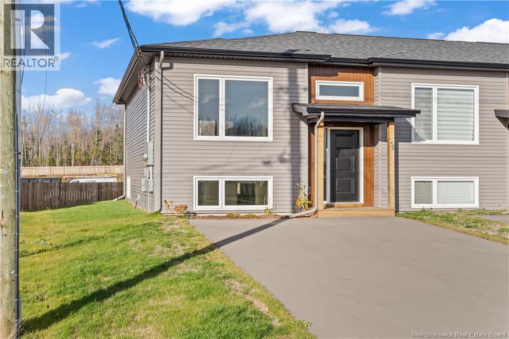 Welcome to 56 Delta Street, an elegant corner unit townhome in Dieppes prestigious Fox Creek Golf Community. Built in 2023, this 2-level home offers 1,450 sq ft of refined living space with a bright, open-concept layout. The main floor features a sun-filled living room, sleek kitchen with stainless-steel appliances, and a stylish dining area that opens to a private deckperfect for coffee or cocktails. Downstairs, the fully finished lower level includes three spacious bedrooms, a luxe 4-piece bath, and a dedicated laundry area. A second powder room upstairs adds everyday ease. Enjoy ductless heat pump comfort, modern finishes, a double paved driveway, and move-in-ready convenience. Just minutes from Fox Creek Golf Course, scenic trails, Champlain Place, top-rated bilingual schools, and local dining. 56 Delta is where style meets serenity, ideal for first-time buyers or downsizers with elevated tastes. (id:34572)