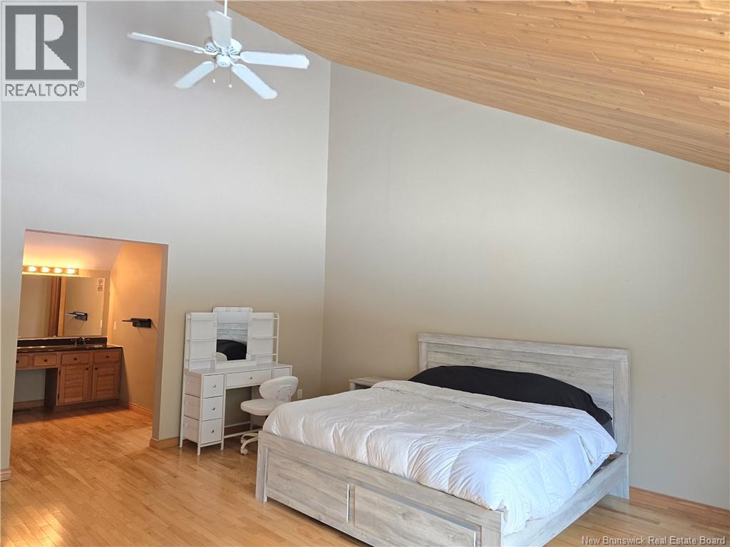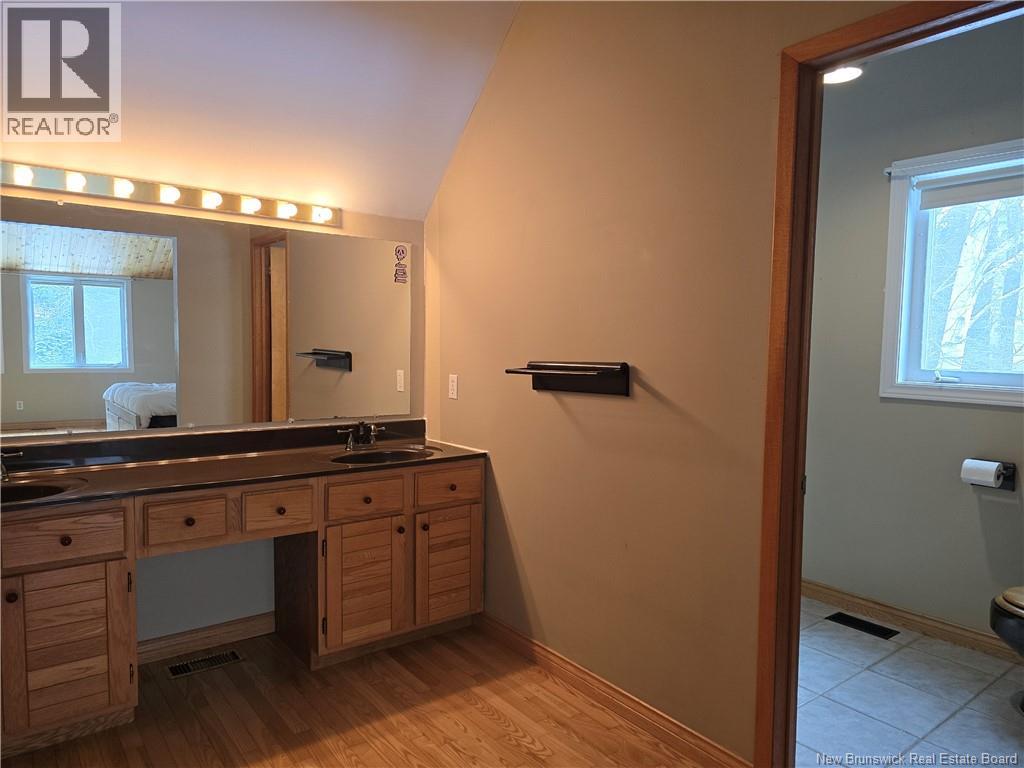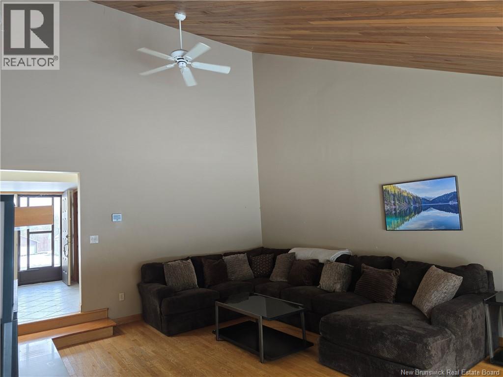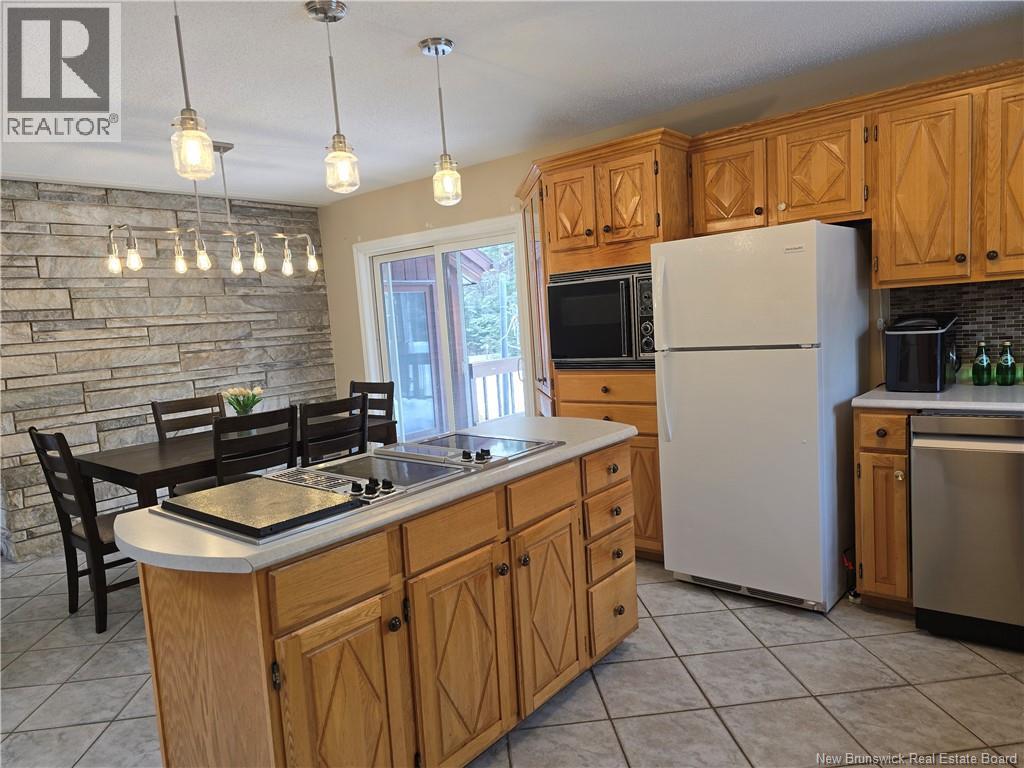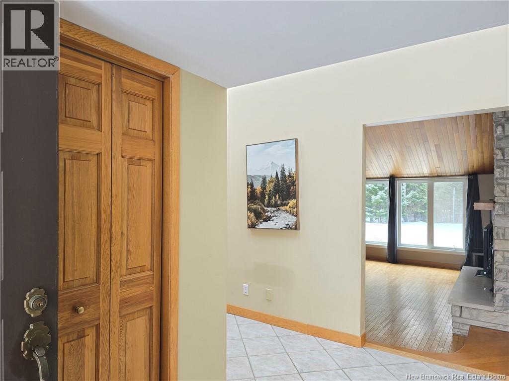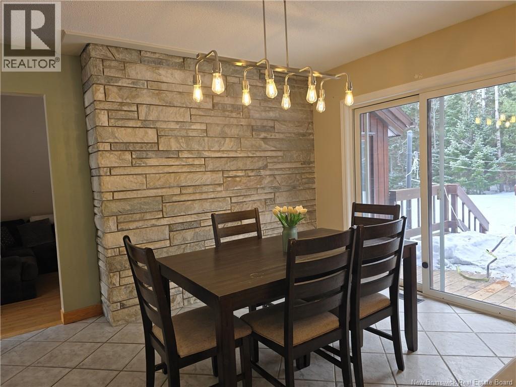 Nestled in the highly sought-after community of North Tetagouche, this unique home sits on a spacious 1.36-acre corner lot, offering privacy, character, and room to enjoy the outdoors. The striking wood and stone exterior creates a warm, inviting first impression, complemented by an attached garage for added convenience. Inside, the main floor is filled with natural light thanks to multiple skylights, enhancing the homes open and airy feel. The sunken living room features impressive vaulted ceilings and a stunning stone fireplace (currently not operational), making it a true focal point of the home. The large primary bedroom is a standout, complete with a generous ensuite and walk-in closet. The kitchen offers built-in appliances and a pantry, providing both function and style. Downstairs, youll find even more living space with two additional bedrooms, a large rec room, a bar area perfect for entertaining, ample storage, and a convenient walkout. This one-of-a-kind property combines space, character, and a desirable location, offering an excellent opportunity to make it your own. Call your favorite REALTOR® today for your personal viewing. (id:34572)
