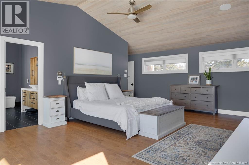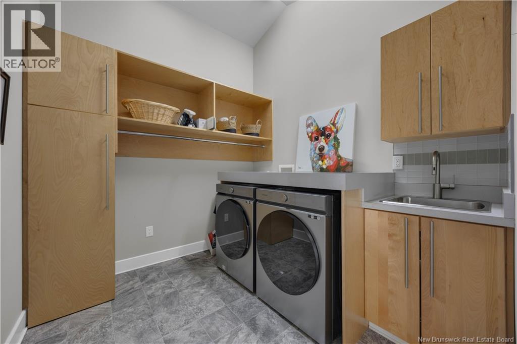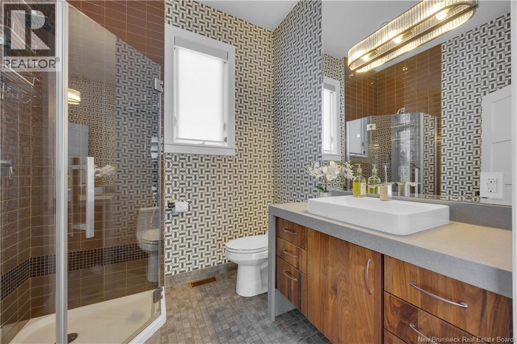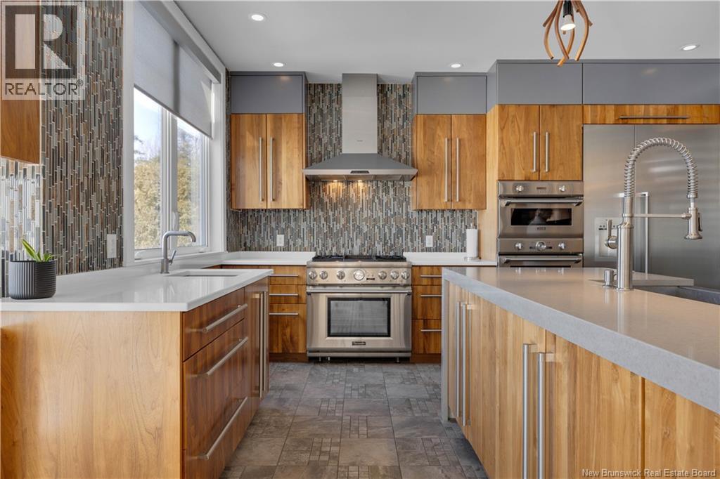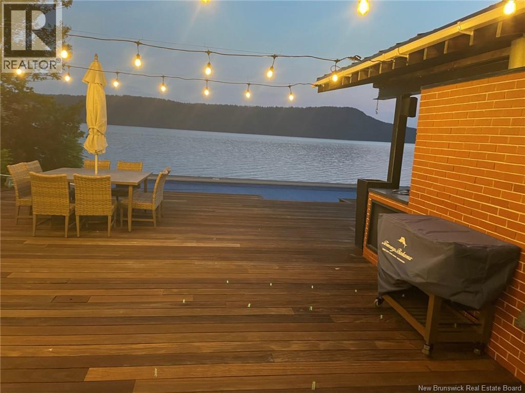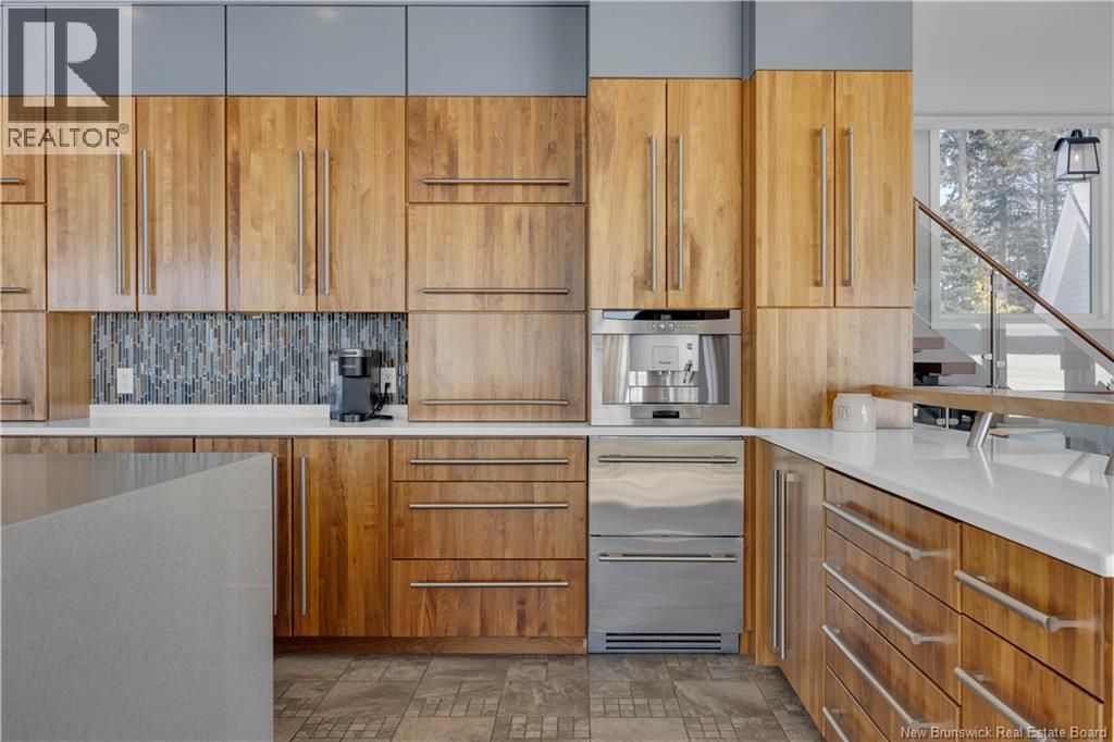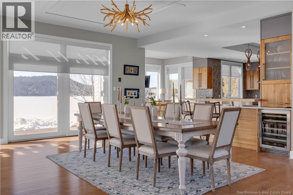 Prime Rothesay waterfront! Perched on 0.94 acres with approx 160 feet of frontage on the beautiful Kennebecasis River, this contemporary luxury home blends indoor elegance with stunning outdoor living. Expansive 10 ceilings, floor-to-ceiling windows, and glass walk-outs highlight the great room with wood burning fireplace, perfect for entertaining. Chef-inspired kitchen features walnut cabinetry, quartz waterfall island, Thermador appliances, espresso bar, and heated tile floors. Main floor office can double as 4th bedroom with full bath access. Upstairs, three oversized bedrooms all have ensuites, including a spa-like principal suite with propane fireplace, panoramic river views, and custom walk-in closet. Lofted family room with fireplace adds extra living space. Finished basement includes gym, rec room, and plenty of storage. Two geothermal heat pumps provide efficient heating and cooling. Outside, enjoy saltwater pool, composite decking, slate patios, sauna, outdoor pizza oven, and professionally landscaped private grounds. Oversized 3-car heated garage, paved driveway, and extra-wide walkway complete this exceptional riverfront retreat designed for casual elegance and entertaining. Make your waterfront dreams a reality in this unmatched beauty! (id:34572)