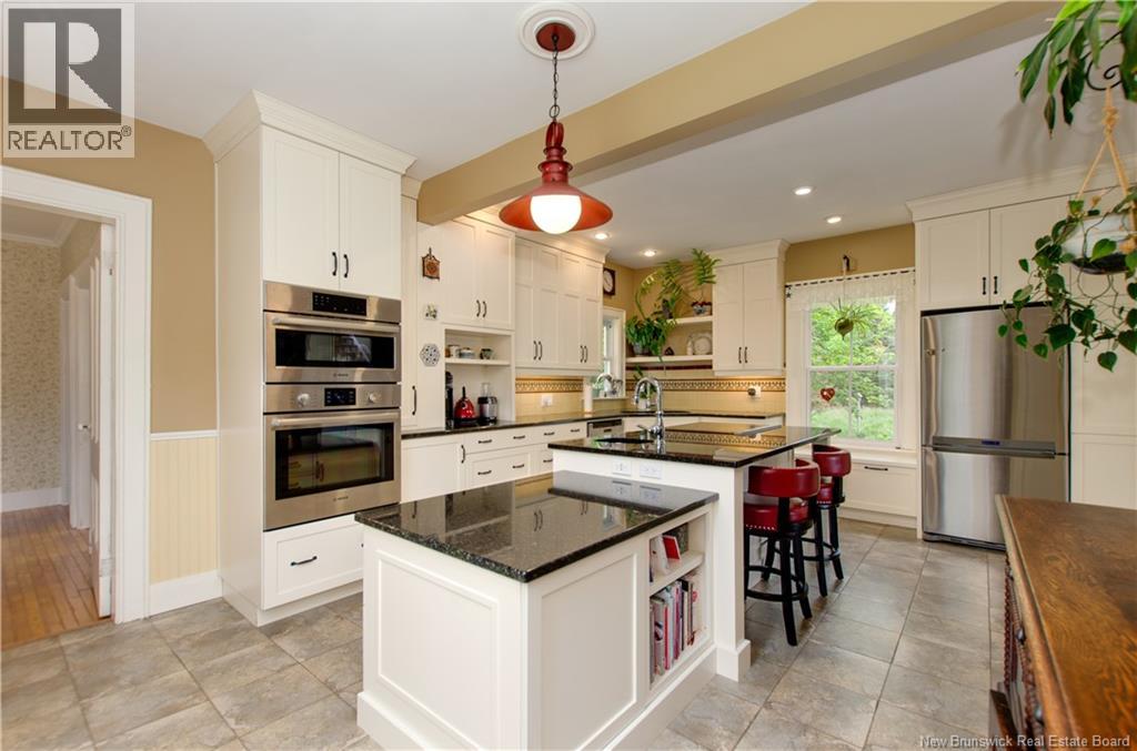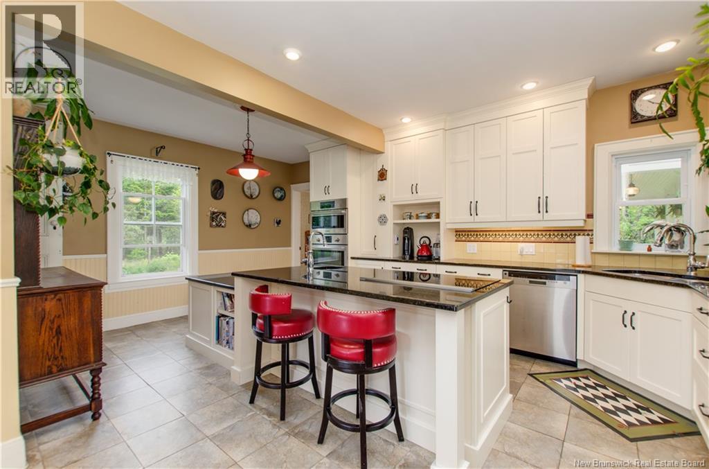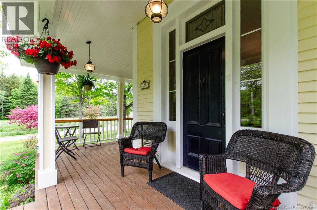 Welcome to 575 Route 915 on Fundys Coastal Drive. Set on two acres, this meticulously maintained property blends the timeless charm of a century home with a thoughtfully designed contemporary addition.Connected on both levels, the two spaces offer excellent flexibility for family living or potential B&B income.The original three-bedroom, 1.5-bath home is set up as a vacation rental & features a wrap-around porch,widows walk,bay windows, & a beautiful winding staircase. The addition offers a private entrance and a custom kitchen that opens to a bright, open-concept living and dining area with a woodstove and views of the landscaped, fenced backyard. Upstairs, the expansive primary bedroom offers the option to be divided into an additional bedroom or home office. The spa-inspired bathroom includes a walk-in shower and soaker tub. Additional highlights include an attached double garage, basement with in-floor heating, extensive flower and vegetable gardens, multiple decks, a screened-in porch, mature trees, sheds, and a chicken coop. Updates include the roof (2009), windows (2014),& front porch (2017). Enjoy a private rural setting just minutes from village amenities,with scenic hiking trails and beautiful beaches nearby. This is more than a home,it's a private rural lifestyle property,offering space, serenity,income opportunity & timeless character in a setting that is removed from the noise of the world. (id:34572)