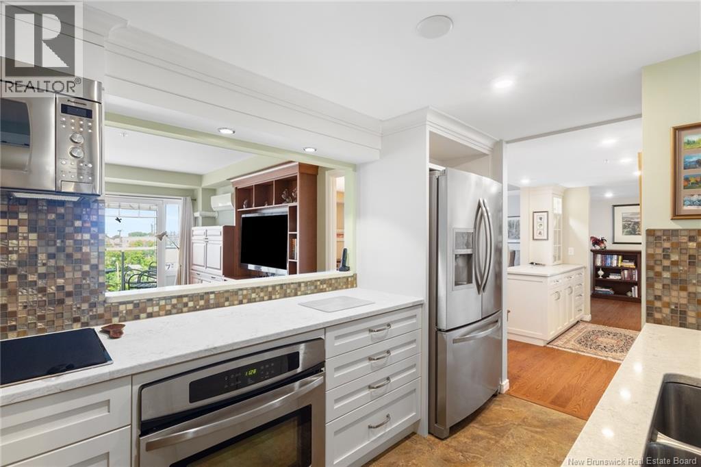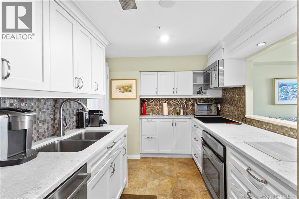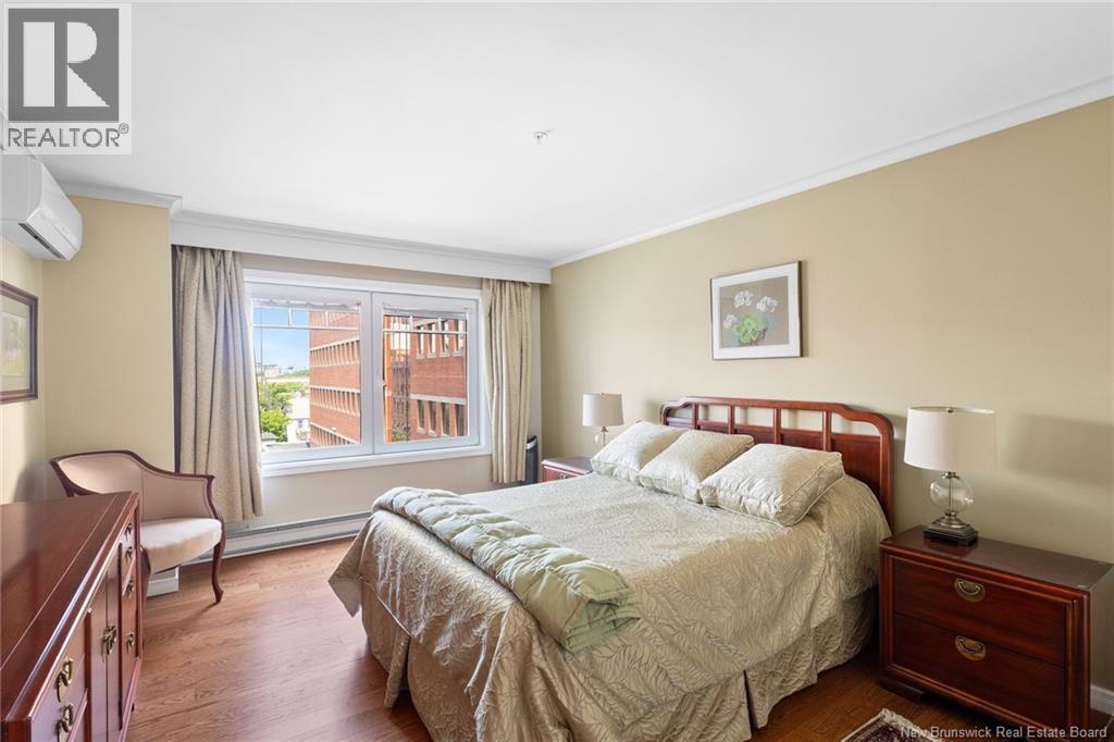 Welcome to this luxurious 2 bedroom, 2-bathroom condo in the heart of downtown within walking distance to amenities. Condo has experienced extensive renovations & upgrades over the last 10 years. This exceptional unit is perfectly suited for working professionals, down-sizers, or anyone seeking city living without compromising on luxury. Interior features include engineered hardwood flooring, energy-efficient heat pumps with 4 heads, utility room for washer/dryer with ample storage. The gourmet galley kitchen boasts modern cabinets, elegant quartz countertops, sleek tile flooring & stylish backsplash, additional high-end white cabinets with lighting, built-in wine rack and plenty of cabinetry with an open concept view of the living room, dining area & foyer. A versatile den/office with built-in entertainment centre and a drop-down desk with a remote-control privacy blind between kitchen allowing a customized space for work or relaxation with access to your private balcony. The primary bedroom offers ample closet space & private ensuite with a remodelled soaker tub and high-tech bidet toilet seat. Closet area has been restructured to optimize space & organization, including a dedicated shoe closet, linen closet, and two spacious wardrobe closets. Guest bedroom has access to a second balcony and offers another bathroom. The building provides a storage room on your floor, heated underground parking, guest room available for rent, mailboxes in lobby, fitness room & two elevators. (id:34572)