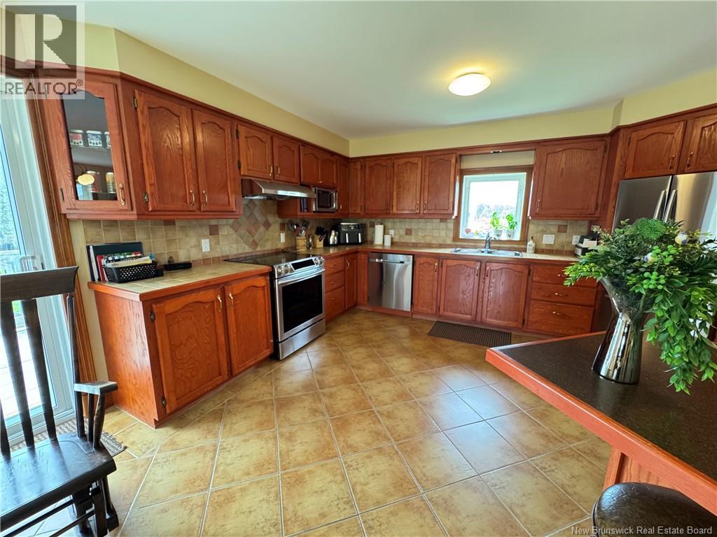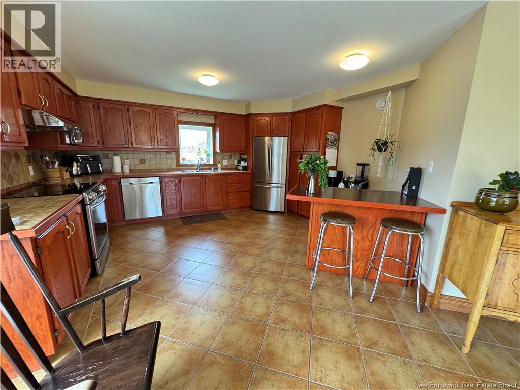 Welcome to this well-maintained 3+1-bedroom, 2.5-bathroom home located just outside of St-Quentin. With a charming wraparound porch and mature landscaping, this property offers space, comfort, and timeless appeal. The main level features an entryway with heated floors that opens into a bright, concept kitchen and dining area. The kitchen includes a large island, heated ceramic tile flooring, and patio doors leading to a backyard deckperfect for relaxing or entertaining. Four heat pump provides efficient heating and cooling throughout the seasons as well as a hot water heating system that gives you an alternative on those cold winter nights. The living room boasts beautiful hardwood floors and large windows that fill the space with natural light and finishing off the main level is a convenient half bath also with heated floors. Upstairs, youll find an updated full bathroom with heated floors soaker tub, a spacious primary bedroom with walk-in closet, and two additional bedrooms connected by a lovely landing. The partially finished walk-out basement offers a fourth bedroom, full bathroom, laundry area, and direct access to the backyard. A detached garage adds to the functionality of this well-kept home. If youre looking for a peaceful setting with easy access to town amenities, this property is a must-see. (id:34572)