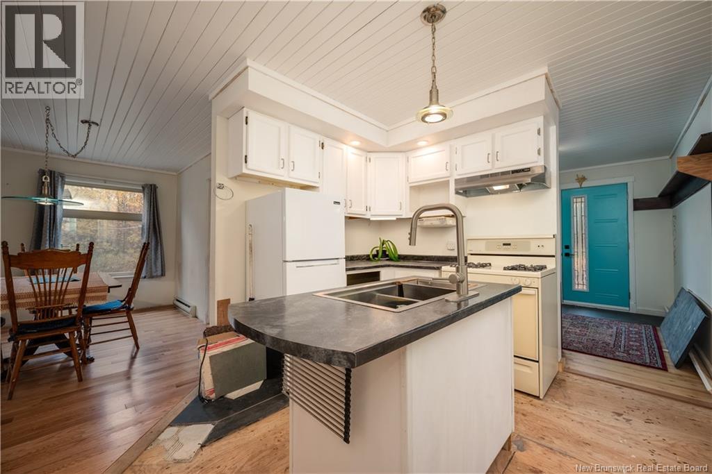Welcome to 599 Dawson Road, this unique property was a labor of love. Property is being sold as is, where is with all building materials to remain. Many hours have gone into the clever property which was run off solar however has been recently connected to NB Power but could easily go back to being off grid. The main level features a sunk in living room, kitchen, bedroom, bathroom, office and dining room. Propane stove in the kitchen for cooking, hardwood floors, vinyl windows propane hot water on demand, spray foamed basement with concrete floors & new water tank and filter system. Outside the garage is unfinished and there is also additional storage barns on the property, the porch is sitting on post tech. Large 2.19 acre lot with mature tress offering privacy. Heated by baseboard electric and woodstove. This property has tons of potential and would make a great year round home, air bnb or even a private cabin to retreat from the busy hustle & bustle of the city life. If you are looking for a private rural property that needs some finishing TLC, here is your chance! Contact your REALTOR® today to book a showing. (id:34572)