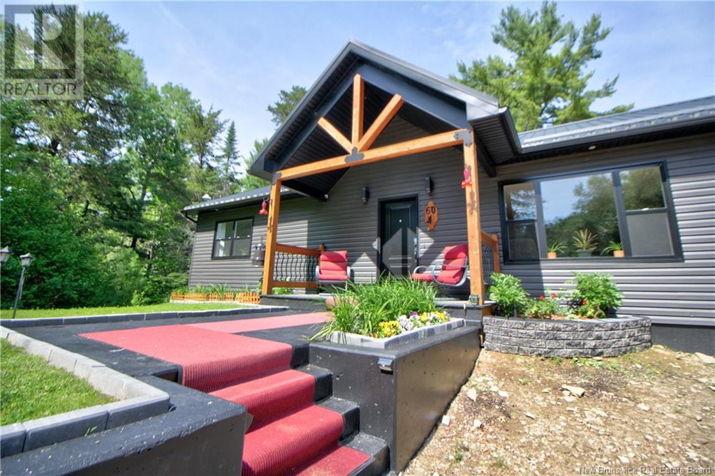Welcome to this beautiful, move-in ready home built in 2018, perfectly nestled on a private 3-acre treed lot in Targettville, NB. The bright, open-concept layout features a spacious living room flowing into the stunning kitchen and dining area. The kitchen is a showstopper with an oversized island, wide cabinets, and loads of storageperfect for entertaining. The main floor offers two bedrooms, including the primary bedroom with direct access to the bathroom, featuring a relaxing jetted tub, walk-in shower, and a custom walk-in closet with built-in shelving. Off the dining area, step into the inviting sunroombeautifully designed with large windows, ideal for enjoying your peaceful surroundings. Off the sunrooms is a lovely 3 season room you will love. Wooden ceilings hanging swing and all set for summer evenings. The lower level is fully finished with a fantastic theatre room, cozy family room, a dedicated dart area, third bedroom, full 4-piece bath, storage room, utility room, and a beautifully designed laundry space with countertop, hanging area, and utility sink. This home is equipped with hot water on demand, geothermal heat pump, two mini-split heat pumps, a Generac generator, central vac, stonework accents, and a storage shed. Bonus: direct access to the garage from the basement. Enjoy peace and privacy while being steps away from walking trails to the Targettville Rec Centre. A must-see property! (id:34572)