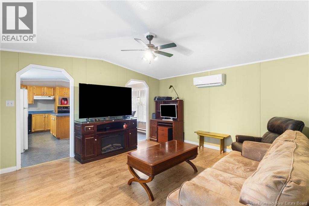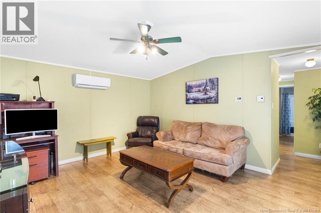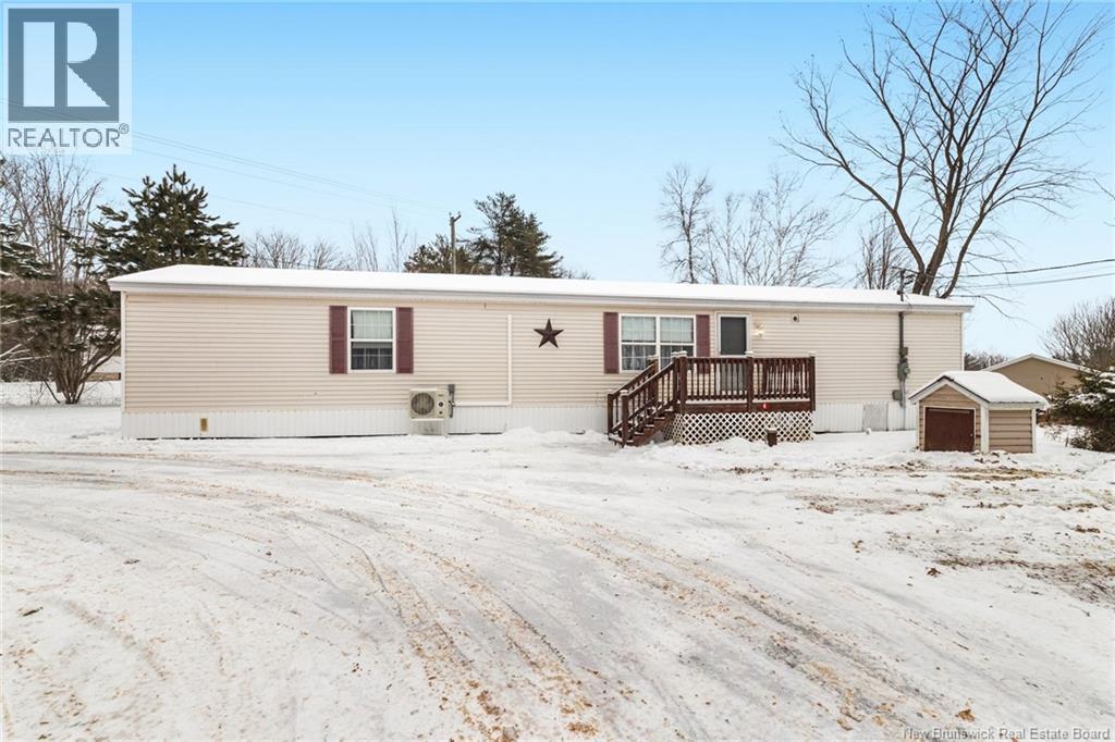 Welcome to 60 Memorial Dr. in Minto, a well maintained 3-bedroom, 2-bath mini home set on a landscaped lot on a quiet side street. This inviting property offers the perfect blend of comfort and convenience, within walking distance to the local high school, playground, and dog park. Everyday amenities and the local health centre are just minutes away. Step inside to a spacious kitchen that serves as the heart of the home, with a central island and ample space for a dining table, perfect for casual meals or entertaining. The primary bedroom offers ample closet space and ensuite, with the laundry conveniently located just off this area for added functionality. The large family room offers plenty of space for gatherings and relaxation, while two additional well-sized bedrooms and a full bath are thoughtfully positioned nearby. Outside, enjoy a large back deck ideal for summer barbecues, morning coffee, or simply taking in the peaceful surroundings. A shed offers additional storage, while the paved driveway and attractive landscaping add excellent curb appeal. Move-in ready and designed for one-level living, perfect for downsizers or a growing family. Enjoy the added comfort the backup generator and hookup offer. Located only 35 minutes from Fredericton and Oromocto, and close to Grand Lake, renowned for its strong community feel, world-class mountain biking trails, and abundant outdoor recreation, this property offers the best of small-town living with easy access to the city. (id:34572)