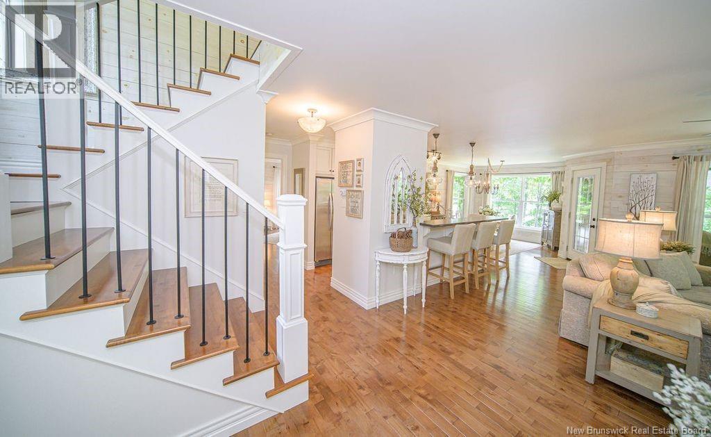 When Viewing This Property On Realtor.ca Please Click On The Multimedia or Virtual Tour Link For More Property Info. Welcome to 601 Southampton. A Cape Cod-style home that blends riverfront elegance with rustic charm. Nestled on 166ft of water frontage along the Saint John River, 45 mins to Fredricton, this home offers tranquility and exclusivity. Mature oak trees frame stunning water views visible from nearly every room. The Nantucket-inspired sanctuary features a wraparound porch, cozy covered deck, and a pergola-covered hot tub on the master suite's deck. Stone footpaths lead to a dining deck, a fireplace area, and a river-side deck. A workshop offers space for hobbies or storage. Inside, the open-concept design curated by an interior designer exudes warmth and style. The living room boasts shiplap walls, natural light, and a propane fireplace. The kitchen, dining area, main floor master suite, and laundry provide convenience. A gothic-style staircase leads to the second floor den, two bedrooms, and a three-piece bathroom. Ideal for guests or a growing family. (id:34572)