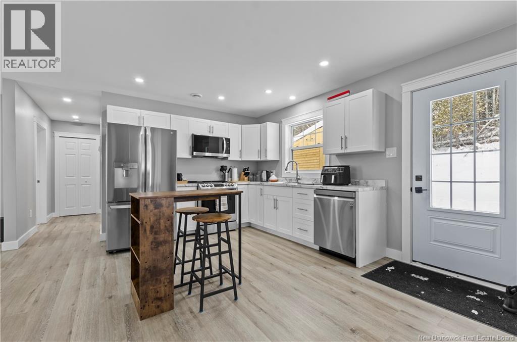 Welcome to 6210 Route 101, set on a private country lot with an additional 1-acre parcel for future expansion or resale. A newly constructed 16'×8' storage shed adds valuable extra space for tools and equipment. Inside, an open-concept layout creates an easy flow for everyday living. The kitchen features beautiful cabinets and newer stainless-steel appliances, with a convenient laundry room nearby equipped with washer and dryer units. The primary bedroom sits privately on one side of the home, filled with natural light from large windows. Down the hall, two bright bedrooms and a spacious bathroom complete the layout. Extra storage is available in the insulated, cement-floored crawl space. The modern exterior showcases slate-grey siding with black windows, trim, and doors for standout curb appeal. The property is wired for a hot tub. Situated in the community of Hoyt, this property places you close to scenic waterfalls, historic covered bridges, and local amenities including recreation facilities, and a community center. Just minutes away, Fredericton Junction provides added convenience with a K-8 school, pharmacy, arena, gas station, and NB Liquor outlet. With quick access to Oromocto, Fredericton, and Saint John, this turn-key home offers an ideal commute. (id:34572)