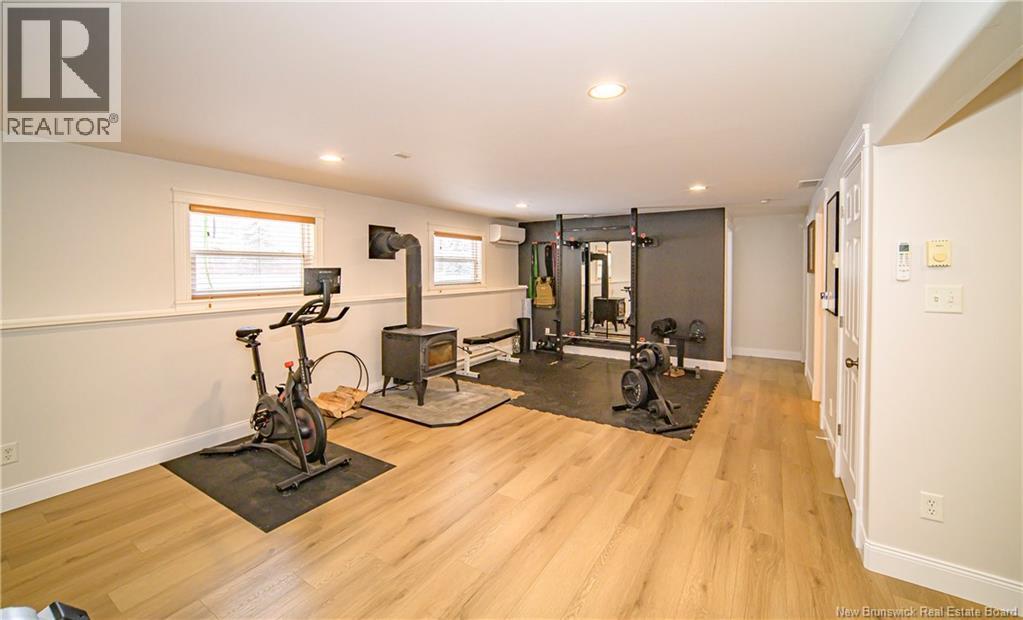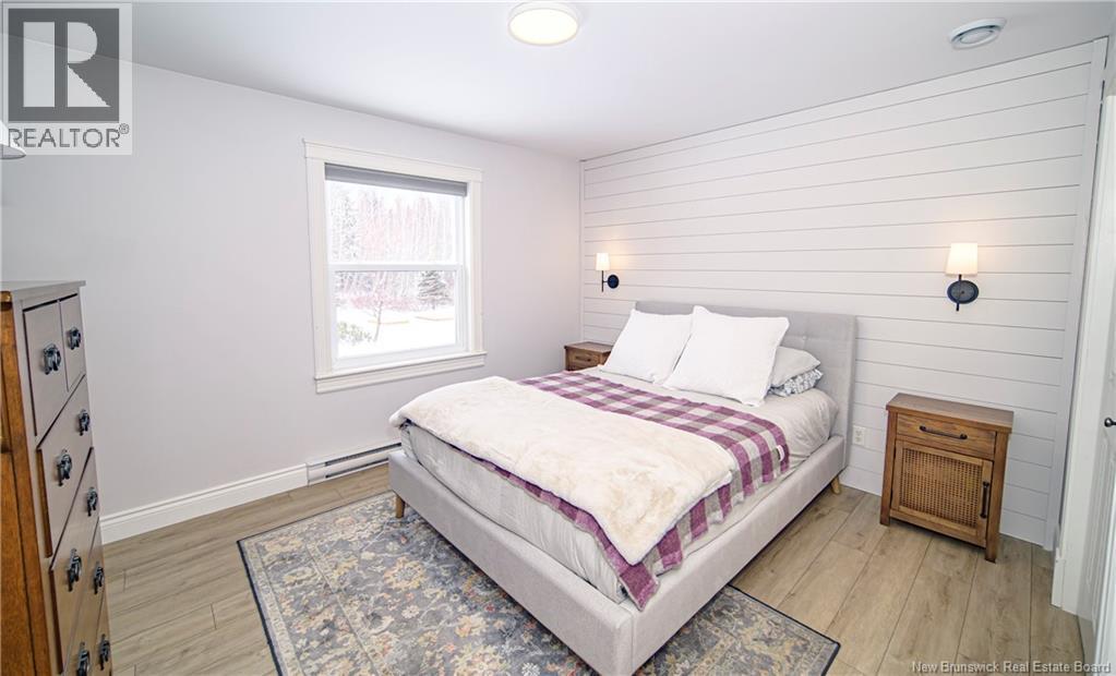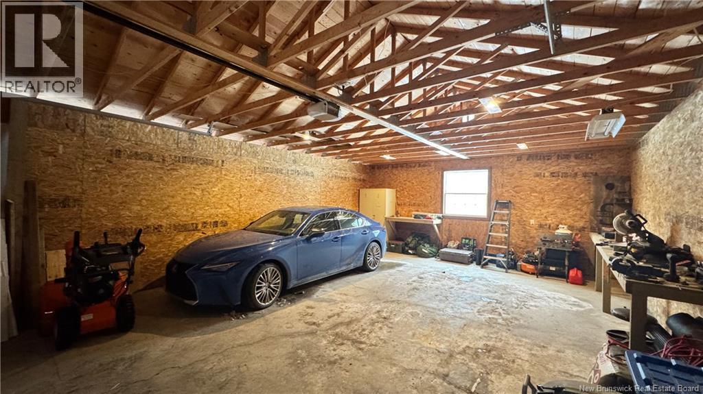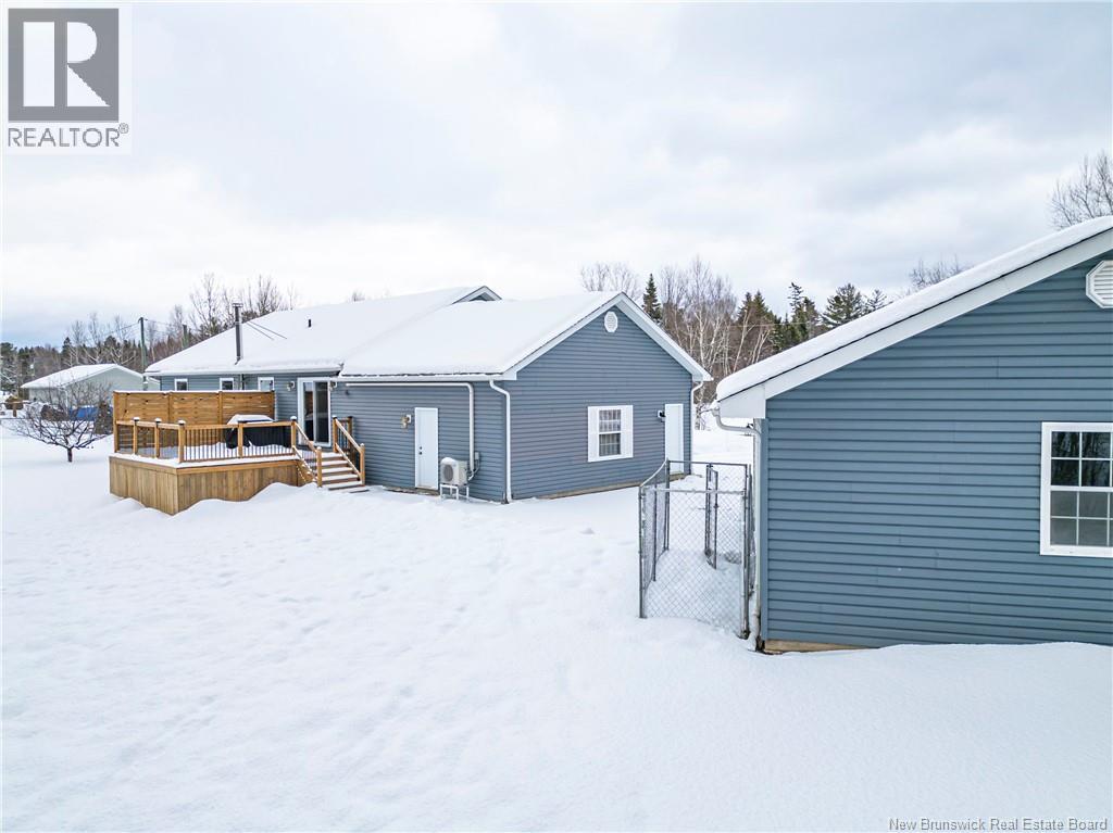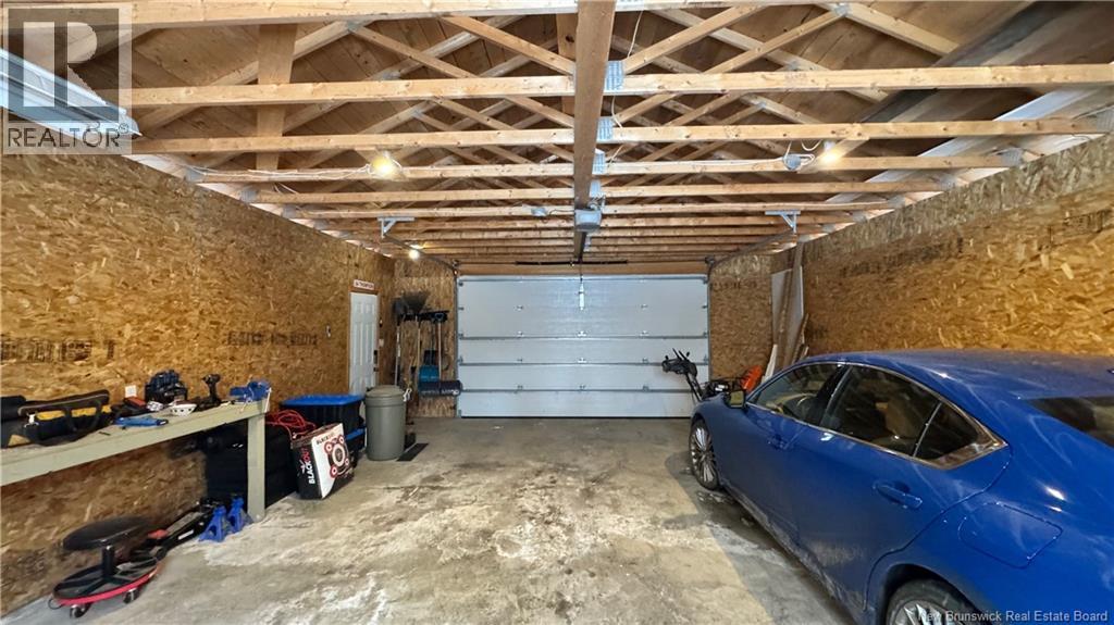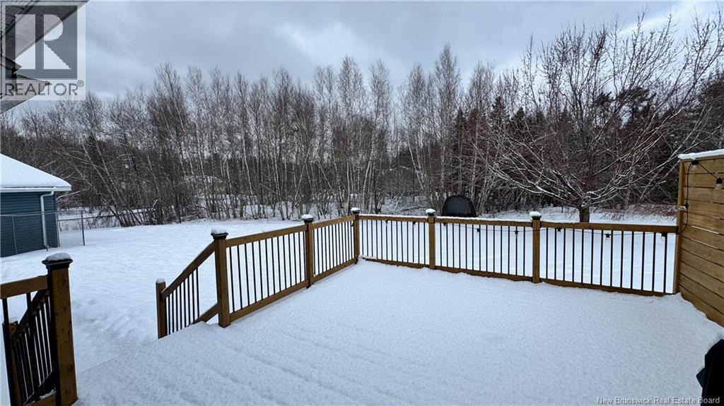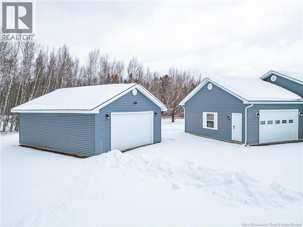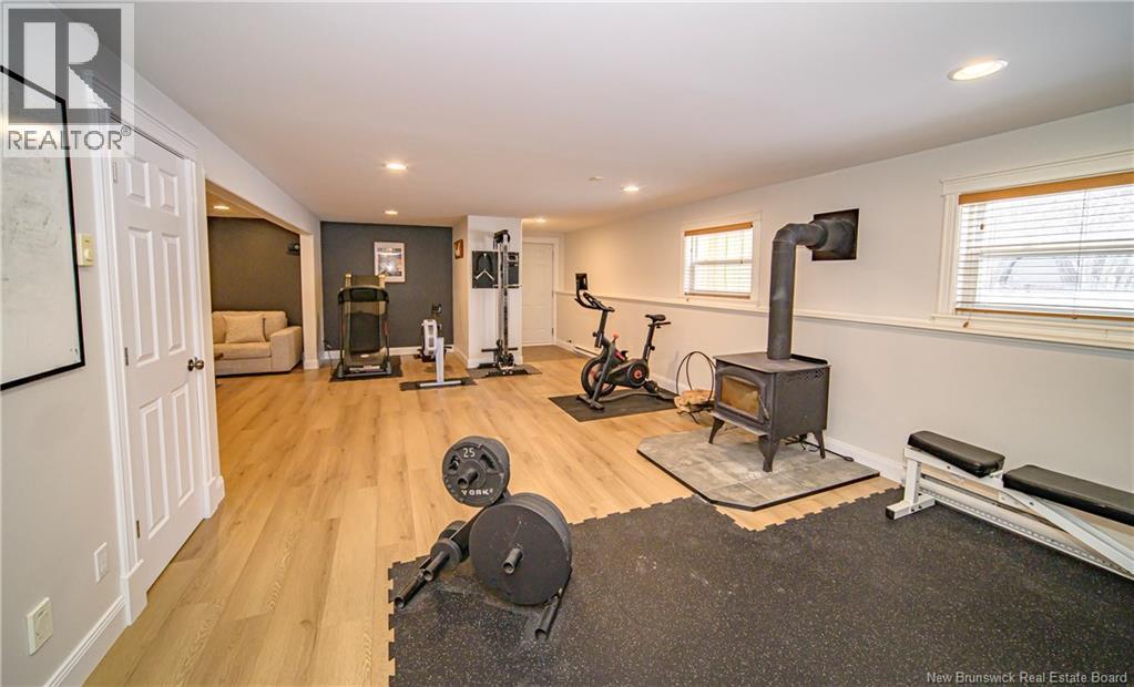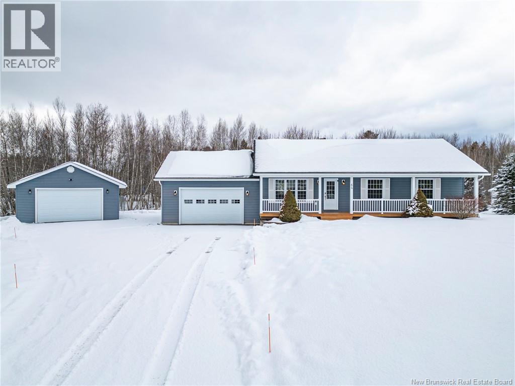 Set on a beautiful 1-acre lot in a family-friendly subdivision just minutes from Oromocto, this inviting home offers space, functionality, and standout features. Two double car garages provide exceptional storage and versatility, while the covered verandah adds charm and curb appeal. The main level features bright open-concept living, anchored by a well-designed kitchen with an abundance of cherry cabinets, generous counter space, a large island with extra storage, a raised breakfast bar ideal for casual meals and gatherings. Off dining area there are patio doors leading to a newer 16x16 large deck, an excellent outdoor entertaining space. The primary bedroom is privately located at the back of the home, with two additional bedrooms positioned at the front. A spacious main bathroom includes a linen closet and plenty of storage. The finished lower level expands the living space with a fourth bedroom, second full bathroom with laundry, storage room, and a very large rec room and family room complete with a wood stove for cozy evenings, plus walk-up access to the attached garage. This well-rounded property is ideal for family living, with quick closing available. Garage measurements: attached 22 x 26, detached 22 x 30. (id:34572)