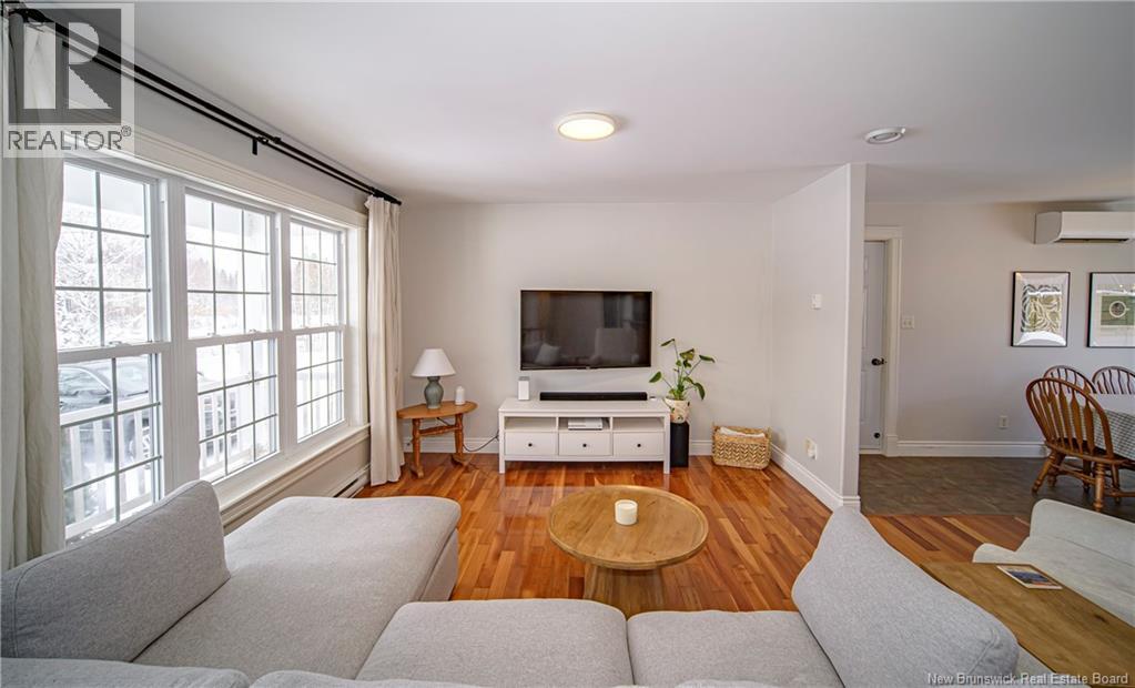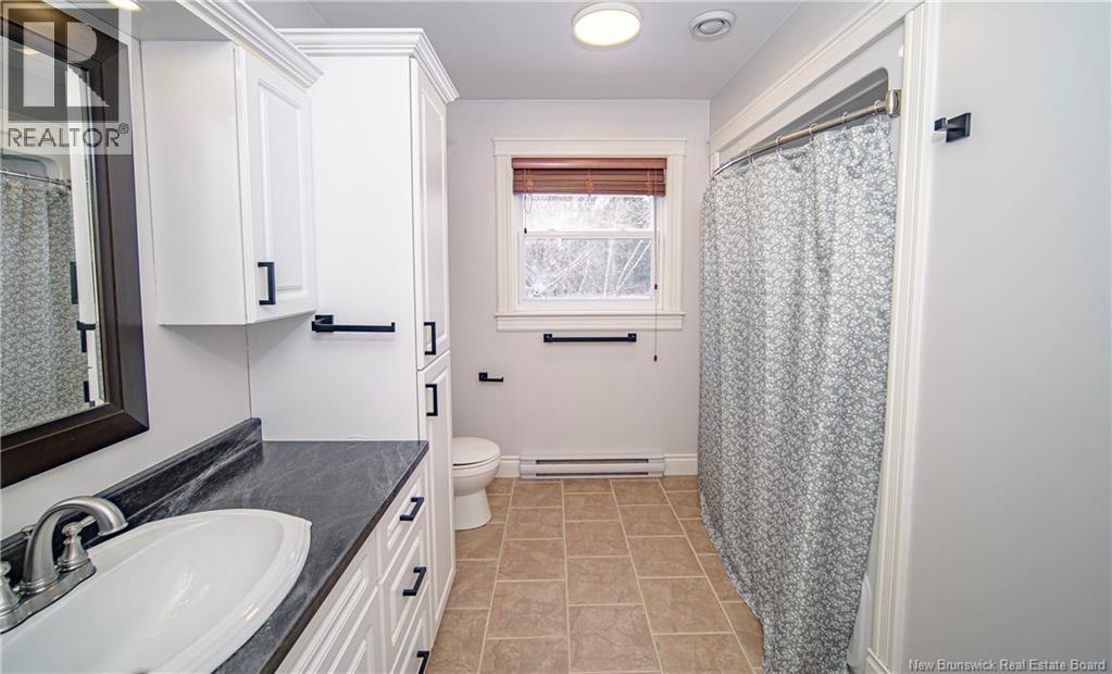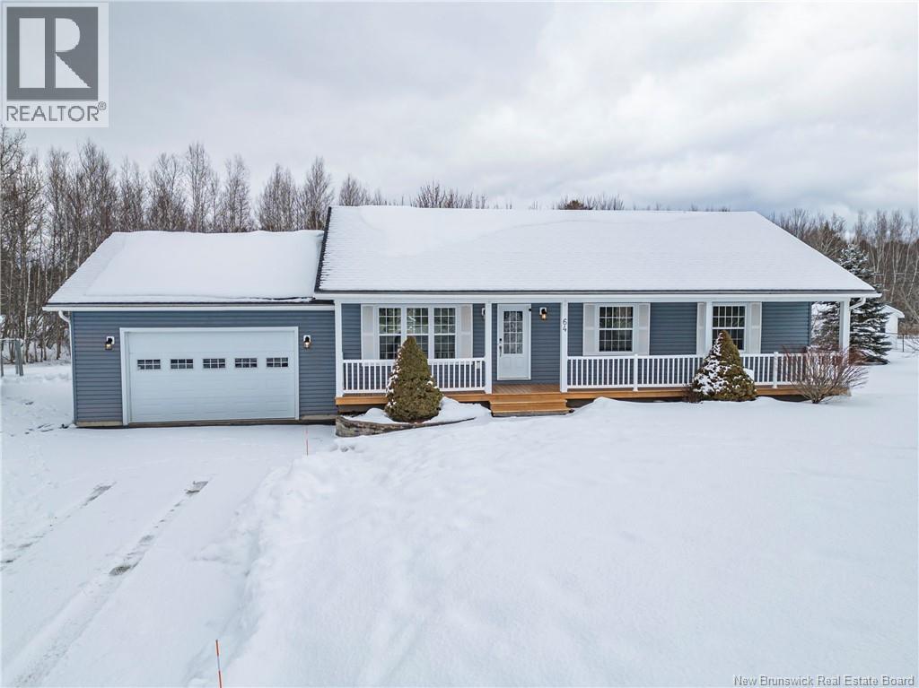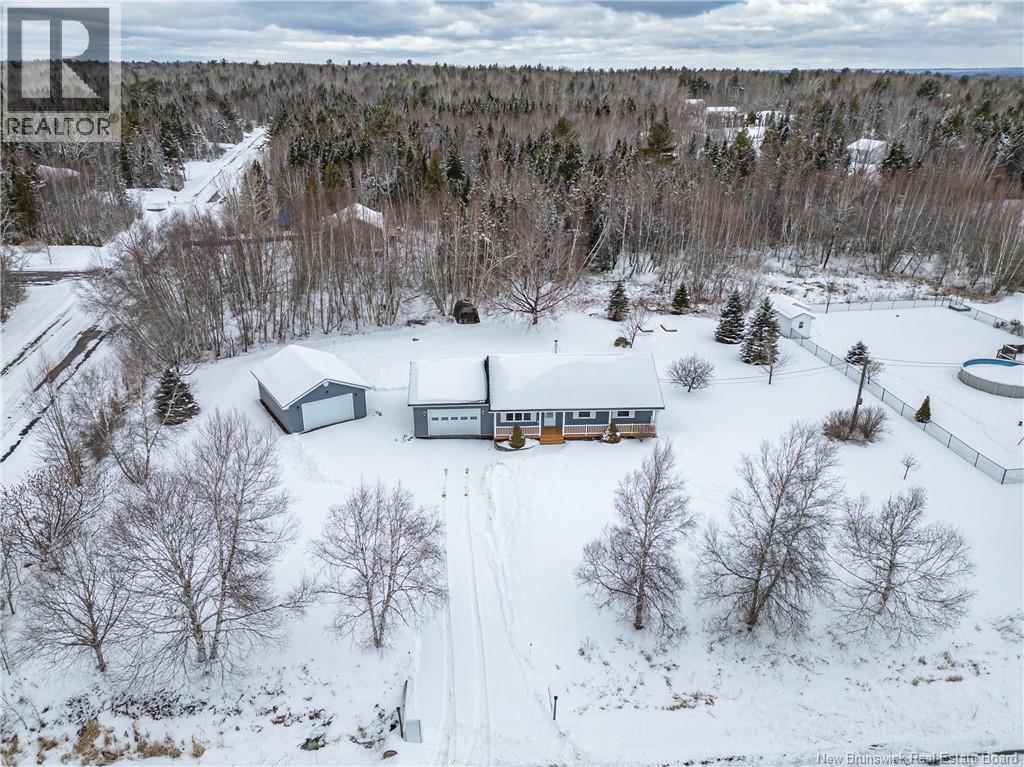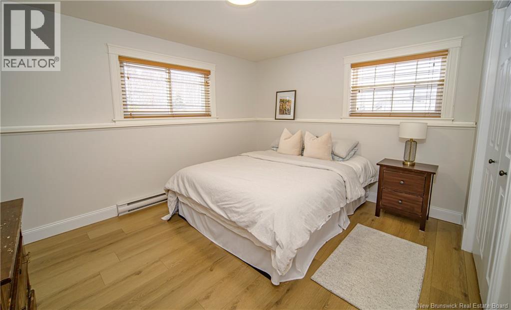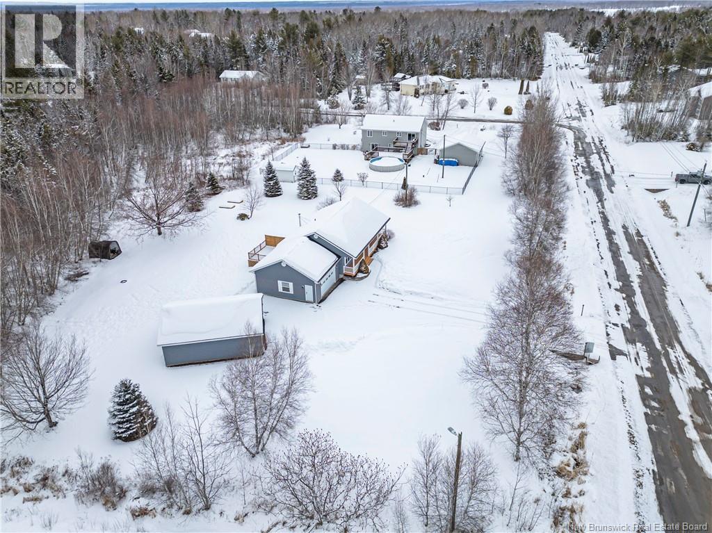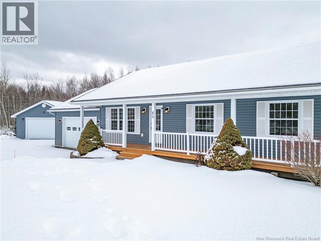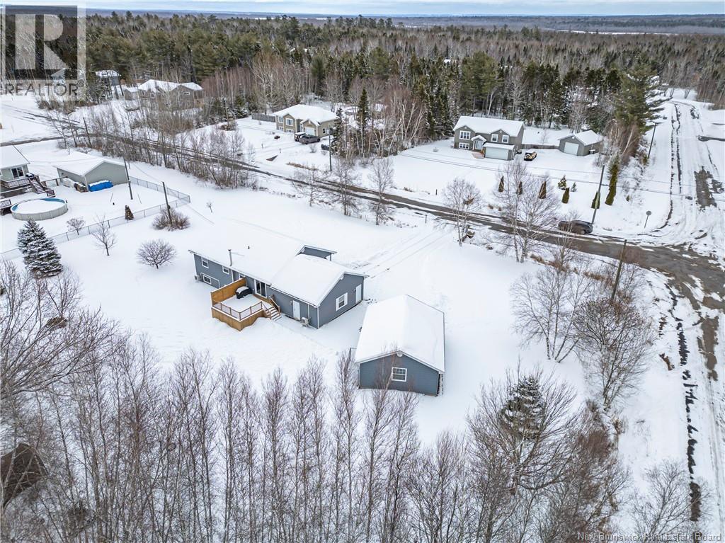 Set on a beautiful 1-acre lot in a family-friendly subdivision just minutes from Oromocto, this inviting home offers space, functionality, and standout features. Two double car garages provide exceptional storage and versatility, while the covered verandah adds charm and curb appeal. The main level features bright open-concept living, anchored by a well-designed kitchen with an abundance of cherry cabinets, generous counter space, a large island with extra storage, a raised breakfast bar ideal for casual meals and gatherings. Off dining area there are patio doors leading to a newer 16x16 large deck, an excellent outdoor entertaining space. The primary bedroom is privately located at the back of the home, with two additional bedrooms positioned at the front. A spacious main bathroom includes a linen closet and plenty of storage. The finished lower level expands the living space with a fourth bedroom, second full bathroom with laundry, storage room, and a very large rec room and family room complete with a wood stove for cozy evenings, plus walk-up access to the attached garage. This well-rounded property is ideal for family living, with quick closing available. Garage measurements: attached 22 x 26, detached 22 x 30. (id:34572)