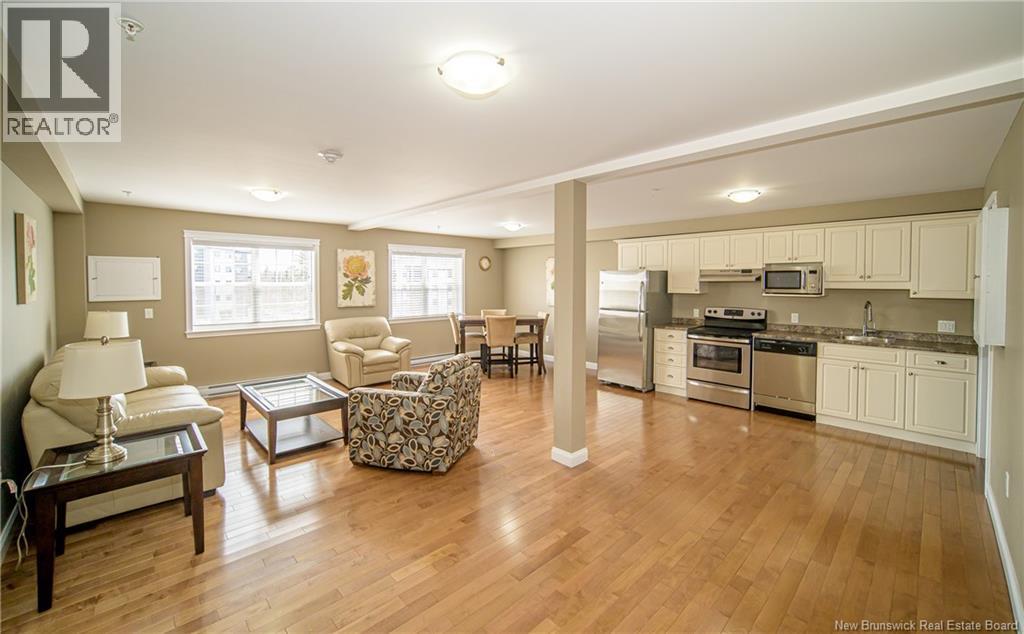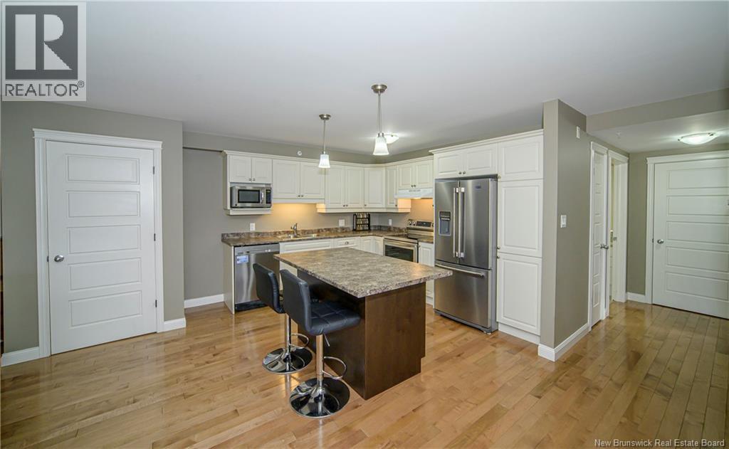 Beautifully designed top-floor corner unit where natural light pours in from every direction and thoughtful layout. Open-concept kitchen, living, and dining area creates an inviting space perfect for entertaining. Kitchen features stylish cabinetry, spacious island, and ample prep space - ideal for cooking and gathering. Just off the living room, step through to your covered balcony, perfect spot to enjoy morning coffee or unwind at days end. Ductless heat pump ensures energy-efficient heating and cooling year-round. Huge primary bedroom suite offers large walk-in closet (complete with transom window for added natural light) and ensuite featuring double-sink vanity. Second bedroom and full main bath provide flexibility for guests, a home office, or additional living space, while the convenience of in-unit laundry enhances everyday ease. Additional features include hardwood and ceramic flooring throughout, separate utility room, and secure building with elevator access. Residents also enjoy access to social room and exercise room, adding to the sense of community and convenience. Located close to shopping, parks, and golf course, with quick highway access, this condo offers an exceptional blend of comfort and lifestyle in a highly desirable location. Note: A one-time contingency fee of $500.00 is due on closing. (id:34572)