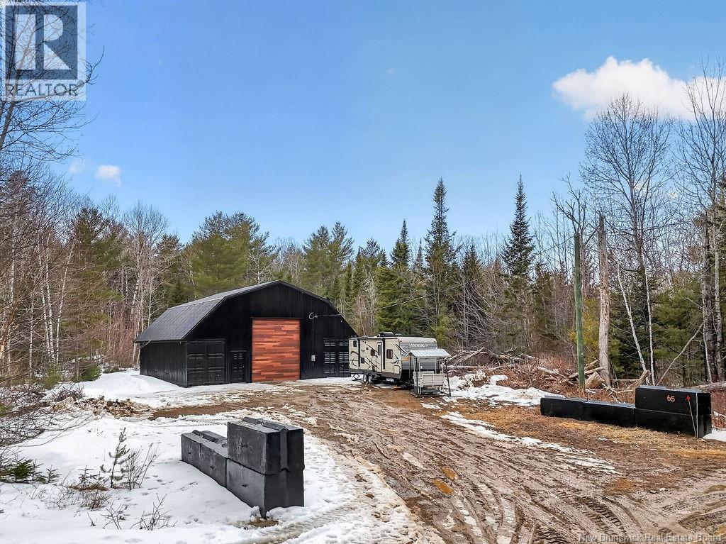 Welcome to this versatile 0.98-acre property in Targetville, NB, offering excellent potential for residential, recreational, or business use. Located on Dale Road just up from the Targetville Rec Centre, the property is surrounded by mature trees with direct access to nearby trails. The standout feature is the impressive 40x40 solid concrete shop, designed in a modern barn-style. It includes two 40-foot containers positioned on either side, with the center left open to create a functional and flexible workspace. Each container has separate access and features clean, dry interiors with hardwood flooring, ideal for secure storage or additional workspace. The shop is equipped with a 200 amp electrical entrance and features a large 14 foot industrial overhead door with electric opener, high enough to accommodate a semi with stacks, highway tractor or gravel truck. Perfect for mechanics, contractors, or hobbyists. Additional features include a 200 amp setup and RV hookup, allowing for on-site living while you build or expand. Theres also plenty of room to add another building. Conveniently located minutes to Rexton and Richibucto, and approximately 50 minutes to Moncton or Miramichi, offering a great balance of privacy and accessibility. Bonus: A 2018 home with attached garage is available across the street and could be purchased as a package (MLS® NB136893). A rare opportunity with space, flexibility, and potential. (id:34572)