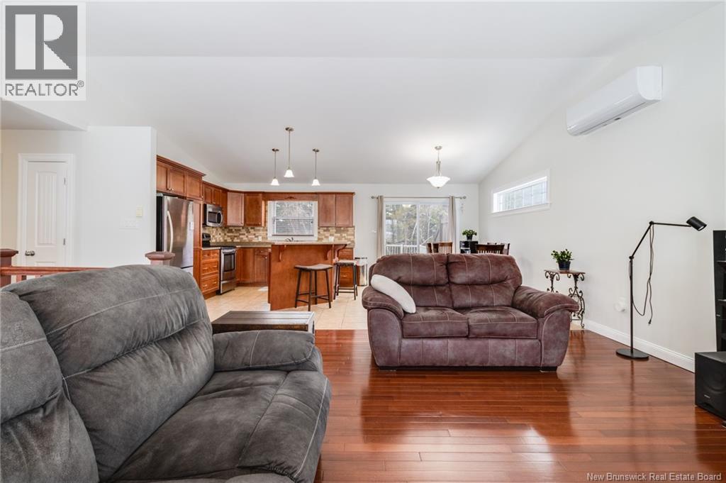 Welcome to 65 Dawson Drive, located in the highly sought-after neighbourhood of Oromocto West. This well-maintained split entry home offers a functional layout and plenty of space for the whole family. Step inside to a spacious tiled foyer featuring a coat closet and a convenient built-in bench, perfect for putting on shoes and keeping things organized. Upstairs youll find a bright open-concept main living area, ideal for both everyday living and entertaining. The living room is equipped with a heat pump for year-round comfort, while the dining area flows seamlessly into the kitchen. The kitchen offers an abundance of cupboard space along with a large island with overhang, providing plenty of room for prep work and casual seating. The main level features three bedrooms, including a primary bedroom complete with its own full ensuite bathroom. Downstairs offers even more living space with a large rec room and a second heat pump, and a fourth bedroom, making it a comfortable spot for relaxing or gathering with family and friends. This level also includes a full bathroom with laundry for added convenience. Completing the home is an attached double garage, offering ample space for vehicles, storage, or hobbies. Situated in a family-friendly neighbourhood close to parks, schools, and amenities, this home is a fantastic opportunity in one of Oromoctos most desirable areas. (id:34572)