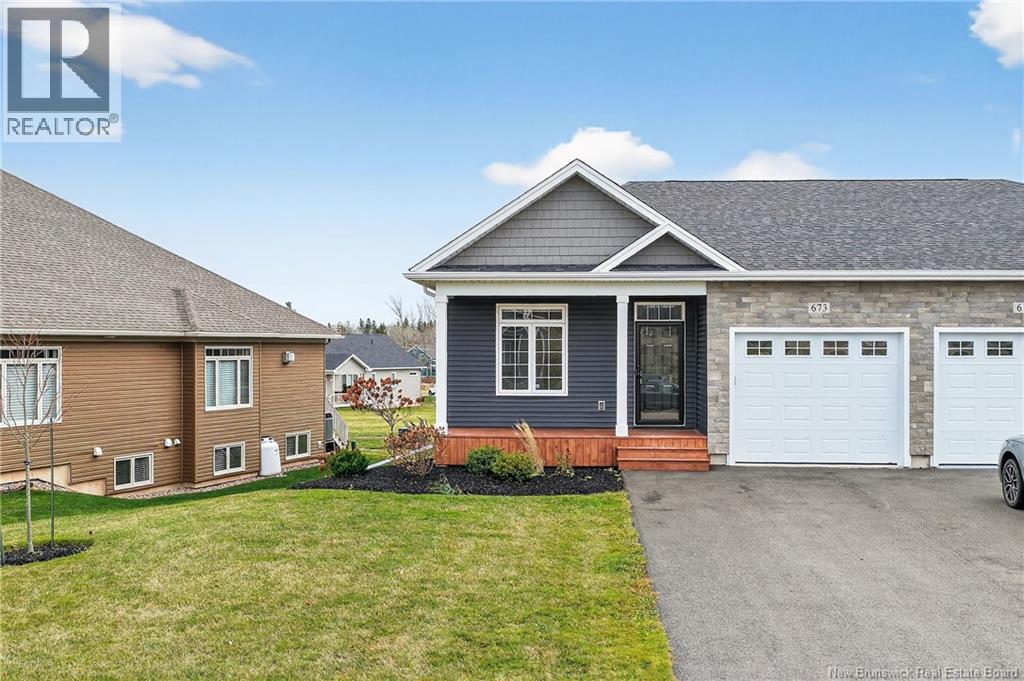 673 Royal Oaks Blvd is a rare semi-detached executive home with a walk-out basement and true one-level living, perfectly designed for golfers, retirees, and anyone seeking an upscale lifestyle in Monctons premier golf community. Centred around the prestigious Royal Oaks Golf Club, this neighbourhood is as close as Moncton gets to a gated communityquiet, manicured, and known for its luxury homes and strong resale value. This 3-bed, 3-bath property offers nine-foot ceilings, a high-end kitchen with luxury Kitchen Aid appliances, quarts counter tops, garburator, and custom blinds throughout. You will have a spacious primary suite with walk-in closet and tiled shower, main-floor laundry, and a peaceful upper deck overlooking the walking trail systems. The fully finished walk-out basement offers a stamped concrete padio, exceptional storage space (see additional photos), another custom tiled 3-piece bath, oversized entertainment areas, and an additional bedroom, ideal for guests, offices, hobbies, or fitness. Whether you're relocating to Moncton, downsizing without sacrificing comfort, or looking for a premium golf-course lifestyle, this home combines convenience, elegance, and the exclusive Royal Oaks experience that buyers from across Canada are choosing for their next chapter. See more pictures on the property website attached to this listing. Virtual Tours Available. Ask about the member rewards at the clubhouse and the Royal Oaks Golf and Community Association Events. (id:34572)