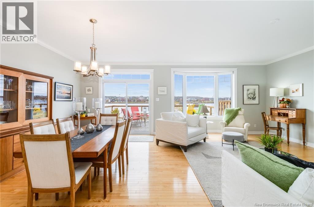 Welcome to 68 Waterford Ln. This stunning townhouse offers over 2,700 sf of beautifully finished living space showcasing panoramic views of the Saint John River and city skyline. With its elegant design, walk-out basement, and meticulous maintenance, this home is truly a rare find. Enter a welcoming foyer with a convenient closet & direct access to the attached garage. Moving into the main living area, youll be immediately captivated by the flood of natural light and breathtaking views through the wall of windows that span the open-concept kitchen, dining & living rm.The expansive private deck with glass-panel railing is perfect for entertaining or relaxing while enjoying fireworks and riverfront celebrations.The main floor also includes a laundry area and powder room for convenience. Upstairs are 2 spacious bedrooms and a full bath.The primary suite is a true retreat, complete with a walk-in closet, spa-inspired ensuite, and those same spectacular river and city views.Drift off to sleep with the twinkle of city lights through your window. The walk-out lower level offers a bright, cozy family room with a wall of windows and direct access to a lower patio an inviting spot to relax under the stars with a blanket and a glass of wine by the fire.Additional highlights include a forced air heat pump for efficient heating and cooling, a stunning white kitchen with updated quartz countertops, and new roof shingles and exterior paint(2025)ensuring peace of mind for years to come. (id:34572)
