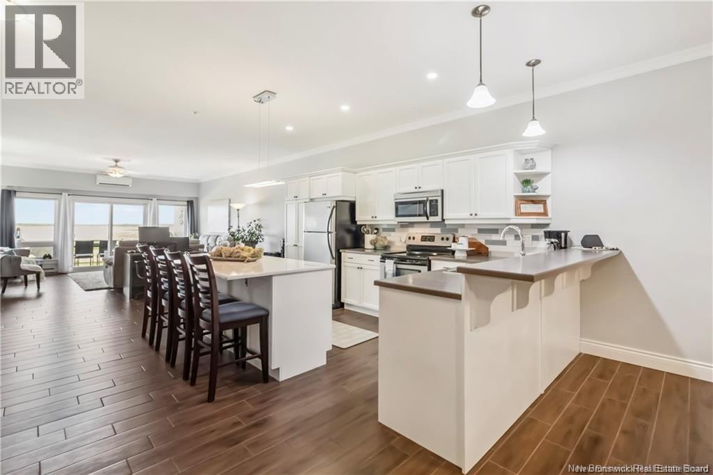 Experience elevated coastal living in this exceptional 2-bedroom, 2-bathroom oceanfront condo in the heart of Shediac. Offering one of the largest layouts in the building and one of the most spectacular unobstructed ocean views, this stunning waterfront residence combines comfort, style, and resort-inspired amenities in one unforgettable setting.This open-concept design created to showcase the view. The spacious kitchen and dining area feature a striking 7-foot quartz island, generous cabinetry, and plenty of room for gathering with family and friends. Nine-foot ceilings, large windows, and quality finishes throughout create an airy, elegant atmosphere, while features like central vacuum add everyday convenience.The living space is flooded with natural light and framed by breathtaking ocean vistas, making it the perfect place to relax or entertain. Wake up each morning to the beauty of the water from your primary bedroom, where the view becomes part of your everyday lifestyle.This sought-after condo also includes access to an impressive collection of resort-style amenities, including an outdoor pool, hot tubs, fully equipped fitness centre, community lounge, tennis and pickleball courts, and a community garden. Every detail has been designed to offer the best of waterfront living.Whether youre looking for a year-round residence, a luxurious seasonal escape, or an excellent investment opportunity, this property is a rare chance to own a premier piece of Shediacs coastline. (id:34572)