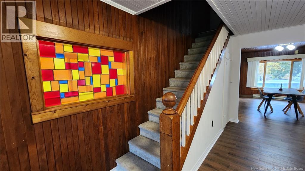 7 Spruce Street is a charming three bedroom, one bath home tucked away on a quiet cul de sac in Grand Bay. It also includes deeded beach rights at the end of Station Road, adding to its appeal. Set on a one third acre lot with a detached single car garage, this home has been tastefully updated while maintaining its mid century charm. You are welcomed by vinyl plank flooring and a bright, open concept layout that flows through the living and dining areas. Exposed beams add warmth and character, while the formal dining room features classic tongue and groove walls and ceiling. The eat in kitchen showcases solid wood cabinets built to stand the test of time. The main level includes one bedroom with a spacious walk in closet and the full bathroom. Upstairs are two additional bedrooms, and the lower level offers an unfinished basement with a walkout, providing excellent potential for future development. Outside, the large yard is ideal for gatherings and bonfires, and the detached garage adds extra convenience. (id:34572)