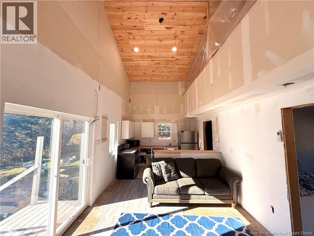 This hidden gem awaits your final touches to be a wonderful cottage or year round home. With a long private driveway, this house provides privacy while still being close to amenities. Close to the Fundy Trail and the caves in St. Martins, and less than an hour from Saint John, there's lots to explore nearby. Nestled on almost 1.5 acres of mature land, the possibilities are endless! On the main floor you'll find a lovely open concept space with vaulted ceilings, full bath with laundry and primary bedroom. Upstairs you'll find two loft-style bedrooms and a roughed-in half-bath. Most of the heavy lifting has been complete, allowing you to turn this into your perfect piece of paradise. The property also has levelled space for trailers, perfect for family to come and set up camp, or rent out the space to visiting tourists. Great AirBNB rental potential as well. All appliances are less than 6 months old. (id:34572)