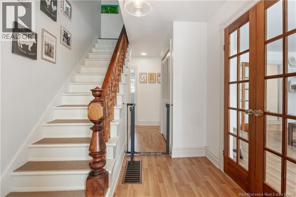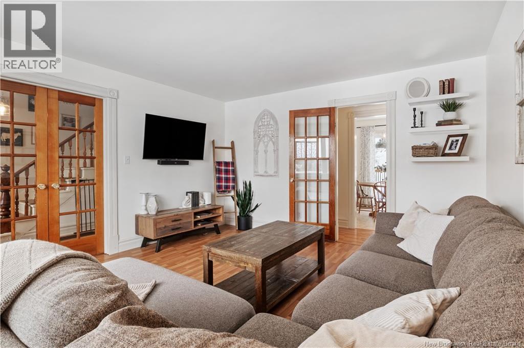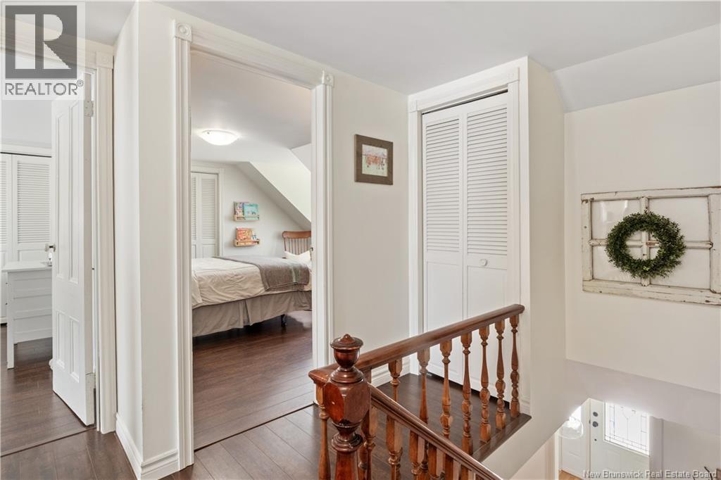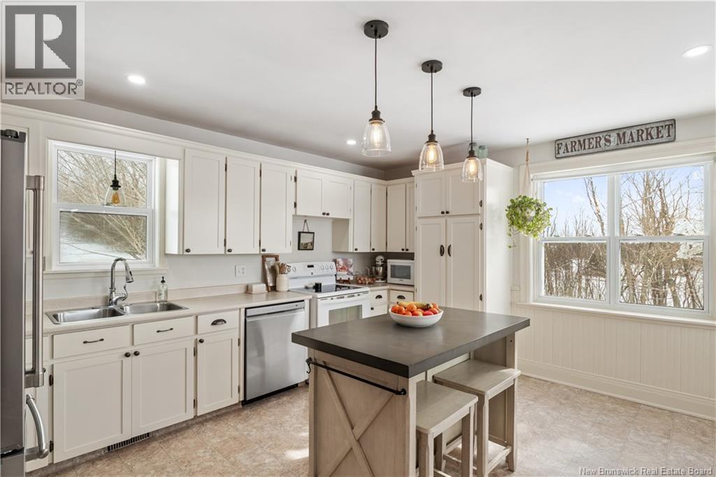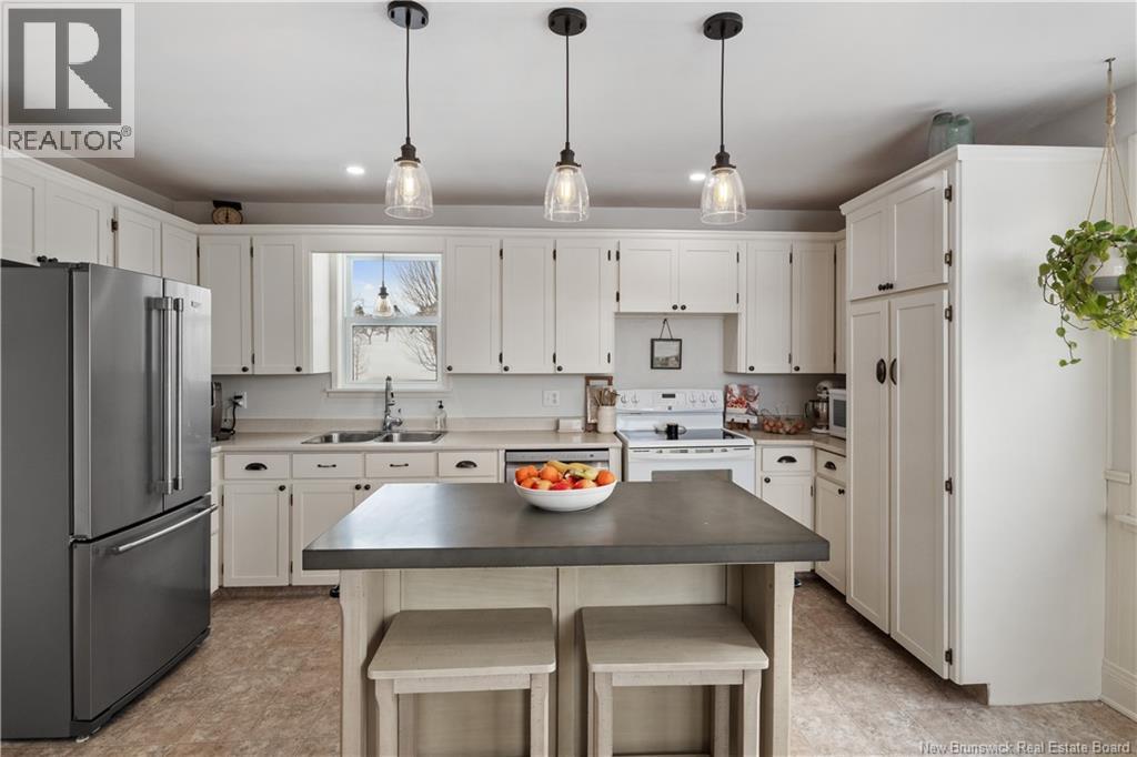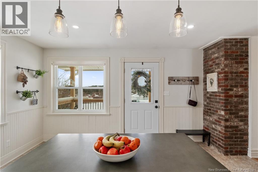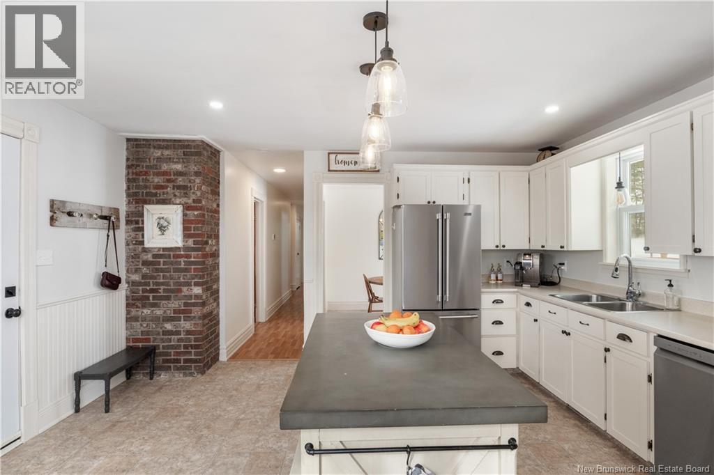 Situated on approximately 1.2 acres in the beautiful Valley of Memramcook, this charming 1.5-storey home offers plenty of space for its new owners. Upon arrival, you are welcomed by a spacious entrance and a private setting surrounded by mature trees. The main floor features a bright living room with garden doors, providing added privacy or noise reduction. From here, you have access to the dining room, which offers patio doors leading to the back deckperfect for outdoor enjoyment. The kitchen includes white cabinetry, a center island with additional seating, and direct access to the exterior. Also on the main level, you will find the primary bedroom, a second bedroom, and a convenient half bath combined with laundry. The upper level offers four additional bedrooms and a full bathroom, making it ideal for a growing family or hosting guests. The basement is unfinished but includes exterior access and provides excellent storage potential. This house also features all new decks! The lot is currently being subdivided and will be approximately 1.2 acres upon completion. Contact for more details. (id:34572)