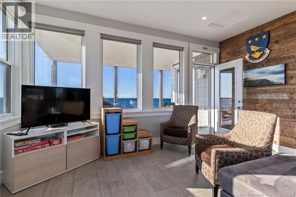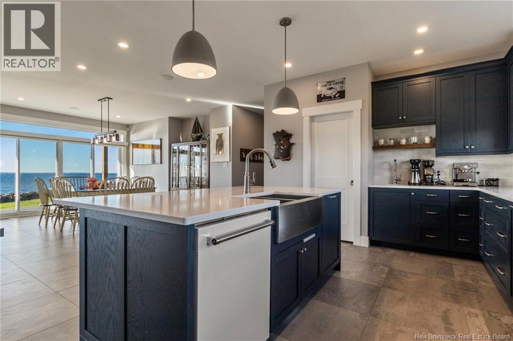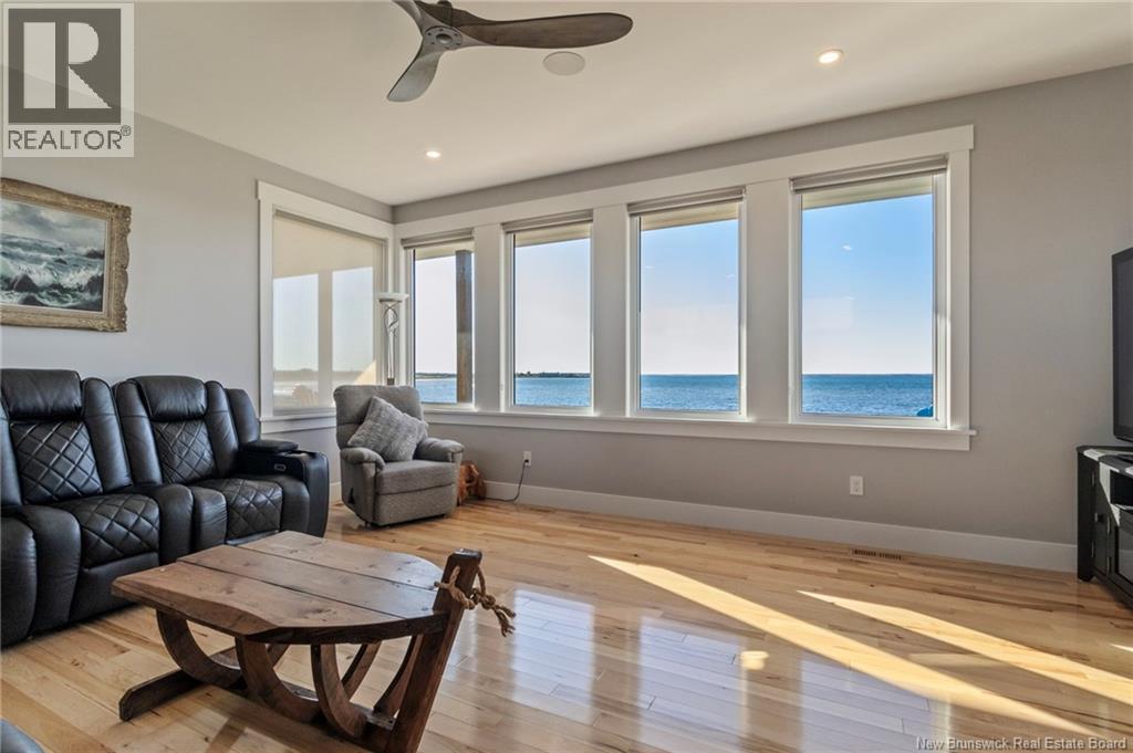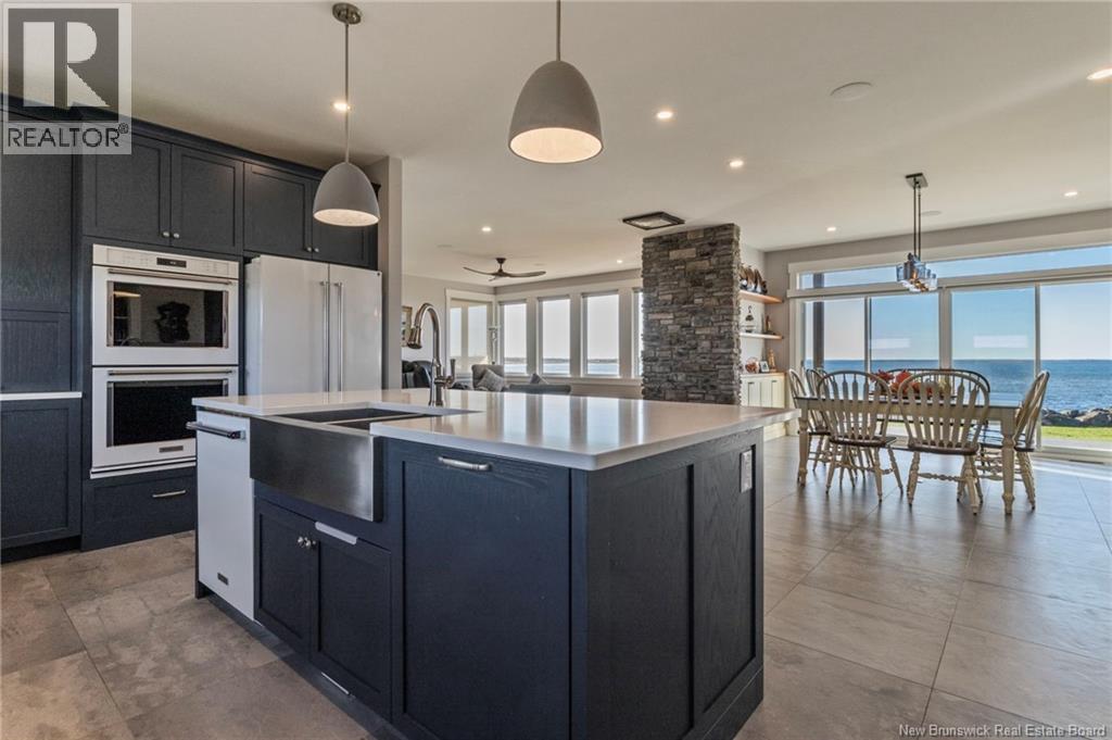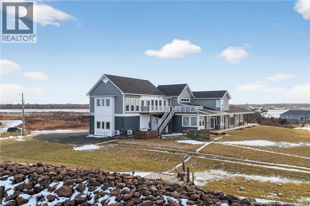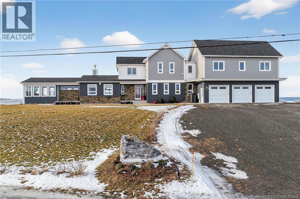 Welcome to 75 Ptit Barachois Road in Grand-Barachois. An incredible custom-built oceanfront home with spacious in-law suite and stunning views. The main floor features a welcoming foyer with shiplap accents, dream kitchen with double oven, island and walk-in pantry, plus dining and living areas showcasing spectacular ocean views. Enjoy year-round relaxation in the 4-season sunroom with heated floors and ocean vistas. The primary suite offers a private retreat with ocean views, walk-in closet, luxurious ensuite with heated floors and a private sunroom. A half bath, laundry and mudroom complete the main level. The second floor includes 2 bedrooms, 5-pc bath, office, and an exceptional in-law suite with separate entrance, open-concept kitchen and living area with ocean views, 2 bedrooms, 4pc bath, laundry and a private balcony overlooking the water. Additional features include central heating/cooling, 3 mini-splits, generator, alarm system with 8 cameras, built-in sound system and automatic exterior lighting. The unfinished basement offers its own entrance, an incredible storage area and potential for future living space. Set on a beautifully landscaped oceanfront lot with heated garage, storage shed, BBQ pit, fire pit and direct beach access. Relax on the expansive back deck while enjoying breathtaking sunsets. Located on a quiet dead-end street just 10 minutes from Shediac and 25 minutes from Moncton. Call your REALTOR® for more information or to book your private viewing. (id:34572)