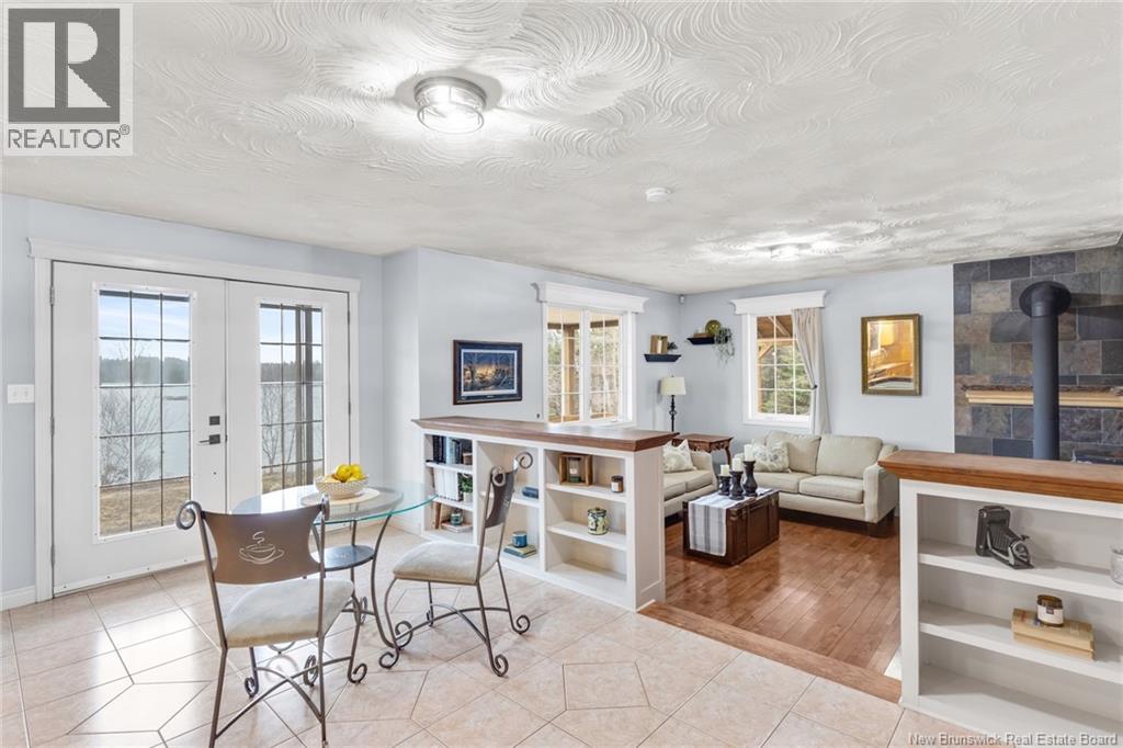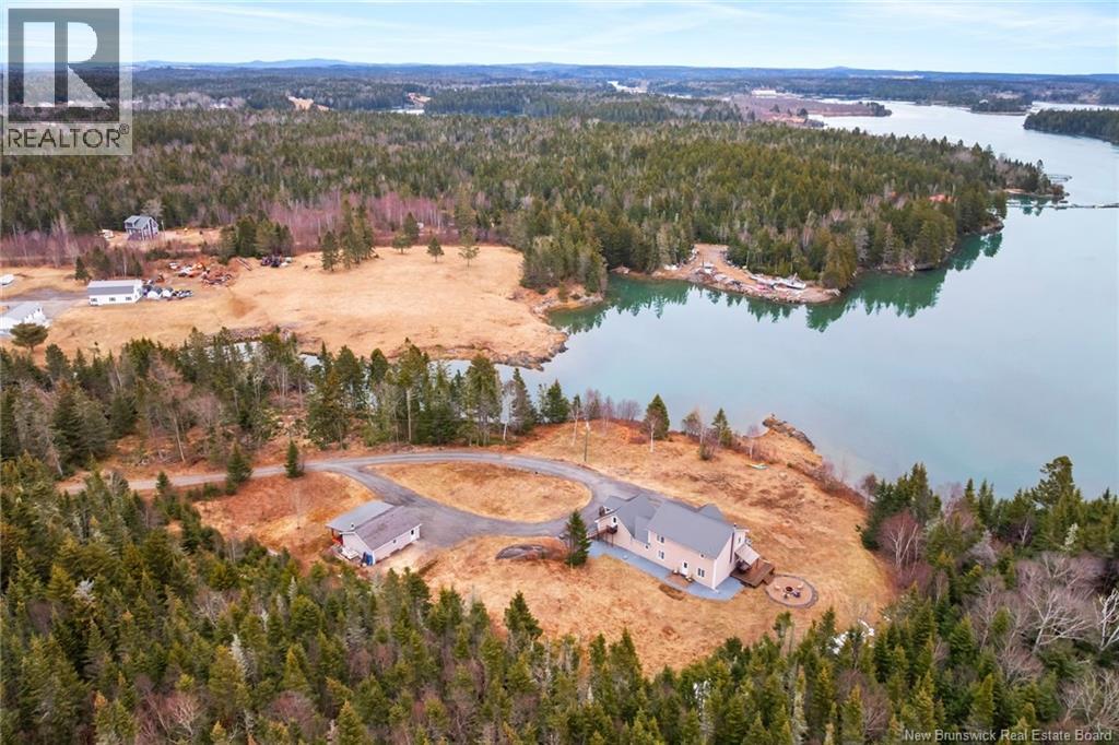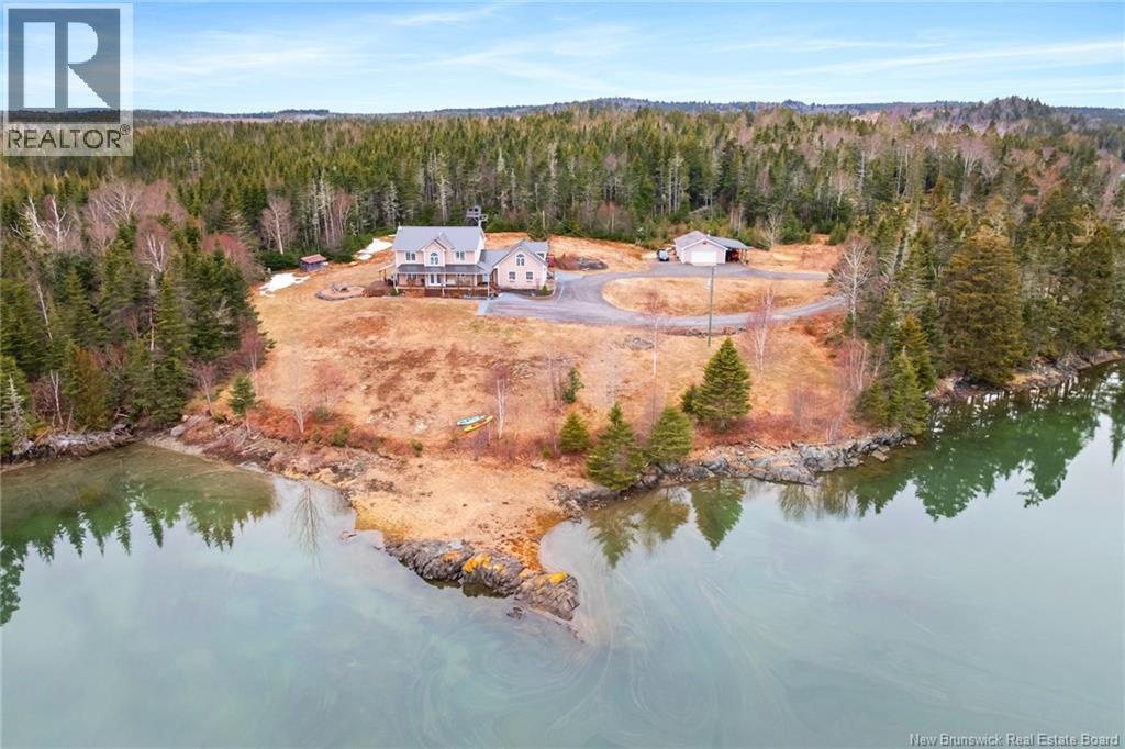 Located in the scenic coastal community of Back Bay, NB, this waterfront property offers a great balance of comfort, space, and lifestyle. Set on approx. 4 acres (to be subdivided prior to closing), the property provides privacy along with beautiful views of the water. The upper level features three bedrooms and two full bathrooms, including a spacious primary suite with a walk-in closet and ensuite. A bright sitting area overlooking the water creates the perfect spot to relax or unwind at the end of the day. The main floor is designed with both functionality and flow in mind, offering a well-appointed kitchen open to the living room, where large windows take full advantage of the waterfront setting. This level also includes a formal dining room, a dedicated office, and a practical mudroom with laundry, a two-piece bathroom, and direct access to the attached garage. Above the garage, a self-contained loft with its own entrance provides added flexibility. Complete with a kitchen and bathroom, this bachelor-style space is ideal for extended family, guests, or potential rental income. Outside, the property continues to impress with a backyard set up for enjoyment, featuring a fire pit area, a large deck reinforced for a hot tub (and hookup ready), playhouse, and treehouse. An oversized detached garage adds even more value, offering ample storage or workspace. A versatile waterfront property in a peaceful setting, ideal for those looking to enjoy coastal living with room to grow. (id:34572)