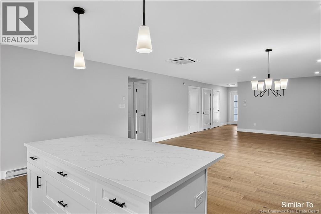 Welcome to 8 Bellbottom Way, an under construction bungalow designed for easy one-level living in a thoughtfully planned neighbourhood. The main level features an open-concept kitchen, dining, and living area with a natural flow for everyday use. Three bedrooms include a primary suite with walk-in closet and private ensuite. A dedicated main-level laundry room with cabinetry and quartz countertop adds both convenience and functional workspace. The attached 24 x 21 garage with built-in storage provides excellent functionality and can also serve as a mudroom space. A front porch and back deck offer outdoor living options. The unfinished basement includes plumbing rough-ins for a future bathroom and provides over 1,600 sq. ft. of additional space, offering strong potential to add finished square footage and value over time. Currently under construction, this home is expected to be ready for new owners in approximately 4 - 5 weeks. Backed by an 8-year Lux Home Warranty, this home offers the benefits of new construction in a growing community. Located in Quispamsis, youll enjoy a neighbourhood setting with a rural feel, while still being close to trails, schools, and everyday amenities. This property is part of a condominium corporation responsible for the shared community well and septic system. The monthly condo fee of $100 includes contributions to the reserve fund and maintenance of shared systems. (id:34572)