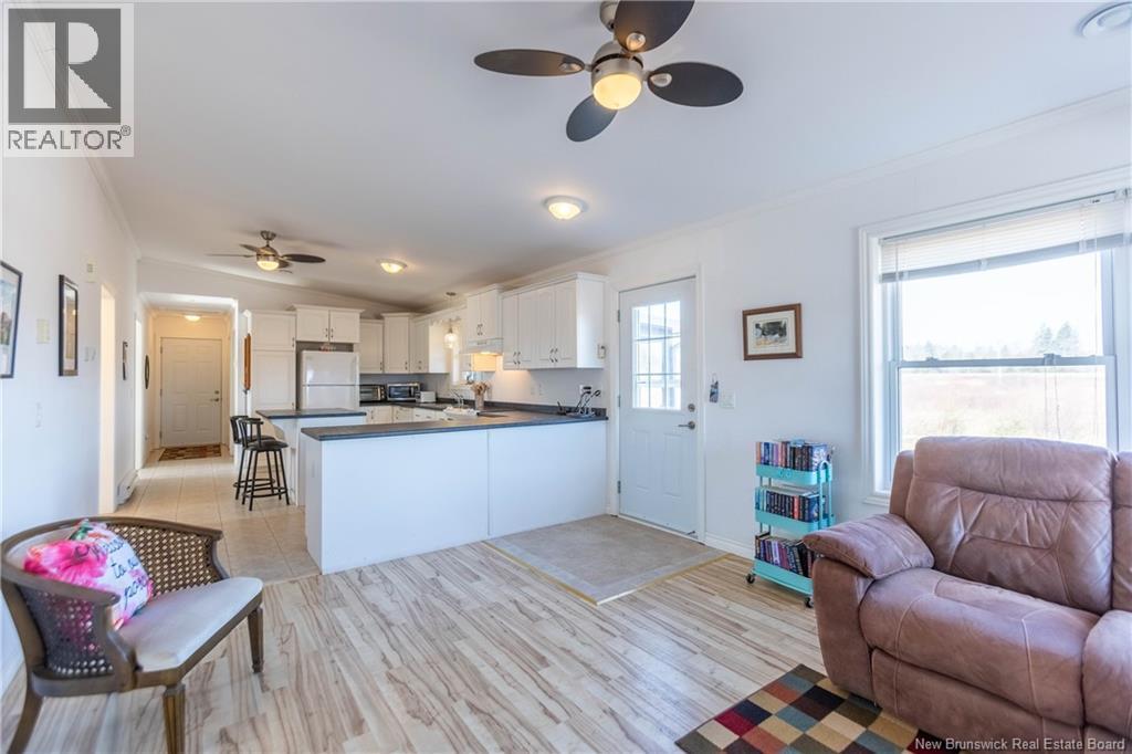 OPEN-CONCEPT BUNGALOW SITTING ON 11.7 ACRES WITH SEVERAL UPGRADES! This home was built in 2010, and includes a propane Generac backup generator. Through the attached double-car garage is the entry leading through to a gorgeous kitchen with large island with space for stools, and soaring vaulted ceilings. This opens onto the bright living room with door to the back. There is a spacious primary bedroom with bay window, a beautiful adjoining ensuite bathroom with corner shower and separate tub, and a walk-in closet. Also on the main floor is the large guest bedroom, and second full bathroom with laundry closet, and an office/library. At the back is a gorgeous 10x20 three-season sunroom surrounded by windows. The home has extra insulation (R40 in the attic, R20 in the walls), wider door ways for aging in place, a metal roof, Generac propane generator, and double hung windows. Situated in the Village of Port Elgin, just 20-25 minutes to Sackville or Amherst, 30 minutes to Shediac, 45 minutes to Moncton, and less than 20 minutes to the Confederation Bridge to PEI. (id:34572)