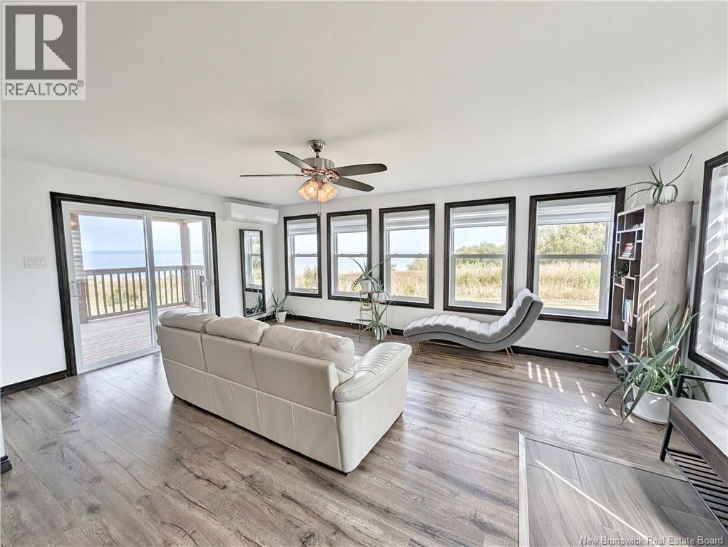 When Viewing This Property On Realtor.ca Please Click On The Multimedia or Virtual Tour Link For More Property Info. Located in the beautiful coastal region of New Bandon, this property offers an idyllic lifestyle with breathtaking ocean views and stunning sunsets. Nestled in a sought-after area, it combines tranquility, natural beauty, and proximity to services, all within the wide-open landscapes of the Acadian coastline. The house, fully renovated with modern taste, impresses with its warm and contemporary style. The main floor features an open-concept layout including a kitchen with ample storage, a welcoming dining area, and a bright living room. A large family room with panoramic windows allows you to enjoy the magnificent ocean view at all times. A full bathroom combined with a convenient laundry room completes this level. Upstairs, the loft space has been converted into a spacious primary bedroom offering both comfort and privacy. This level also includes a full bathroom, adding a touch of luxury and convenience. Outdoors, a large covered back deck invites you to relax while enjoying the breathtaking ocean views. A garage provides additional storage or space for hobbies. For comfort, the home is equipped with oil and electric heating, along with heat pumps for efficient year-round heating and cooling. For added peace of mind, a propane generator system ensures backup power in case of outages. The durable metal roof is another valuable feature. (id:34572)