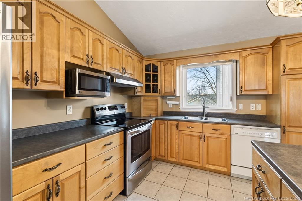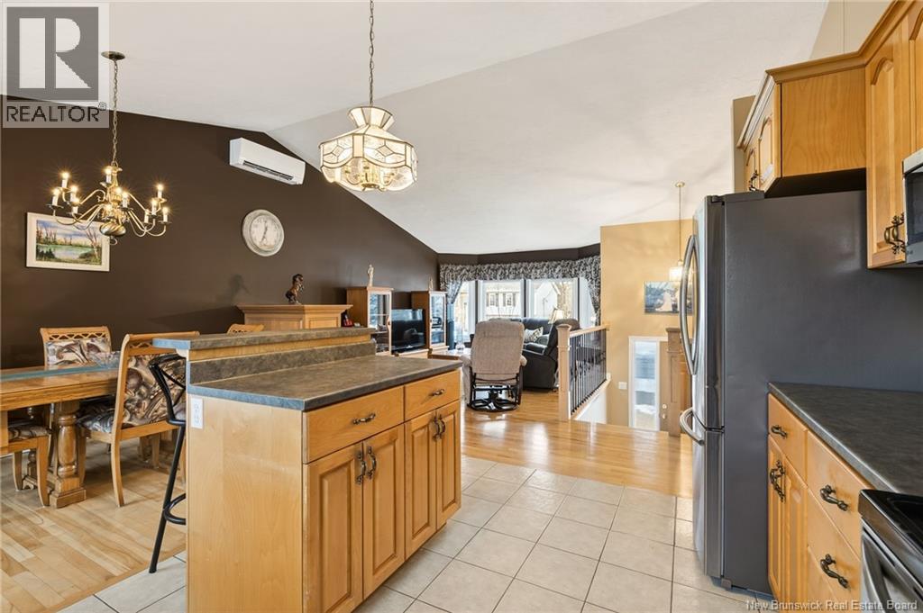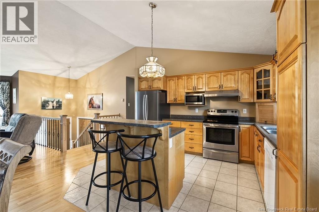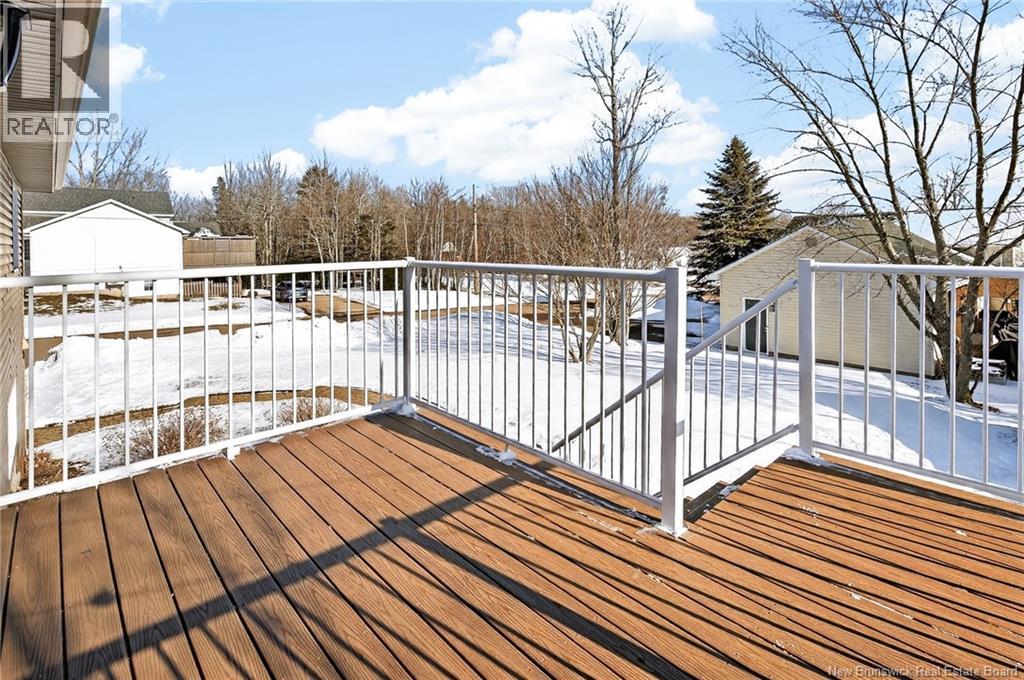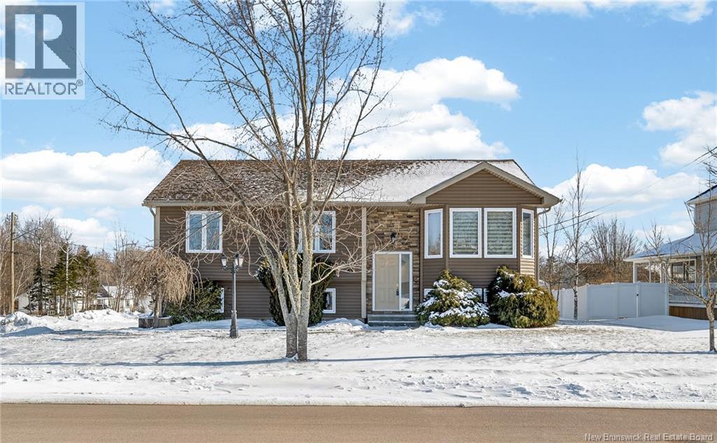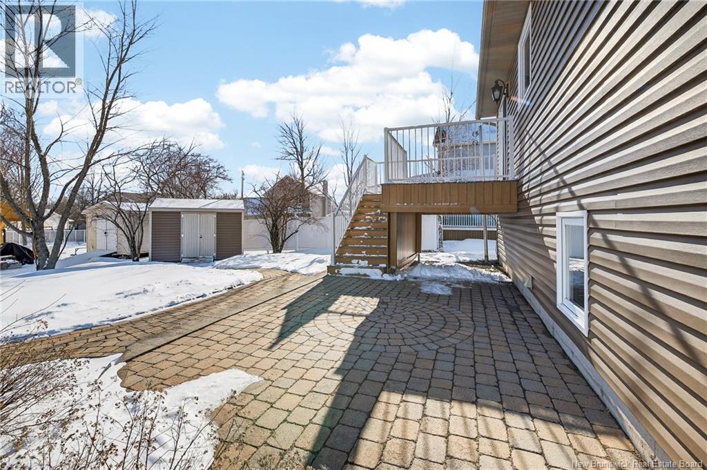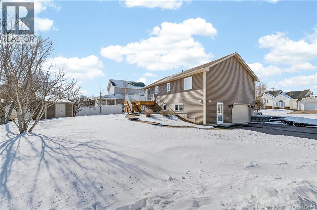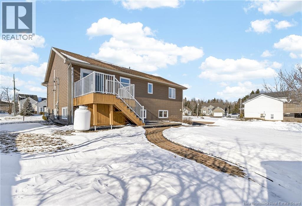 Welcome to this beautiful raised bungalow located on a corner lot in a quiet and family-friendly neighborhood in Dieppe, offering potential for an in-law suite. This well-maintained home offers comfort, functionality, and space for the whole family. The main floor features a bright open-concept layout with vaulted ceilings, a spacious living room, and a cozy propane fireplace creating a warm, inviting atmosphere. The kitchen offers ample cabinetry, stainless steel appliances, and a functional island, while the dining area provides patio doors leading to a large PVC back deck, perfect for relaxing or entertaining with no maintenance required. The main level features three bedrooms, including a spacious primary bedroom with Jack and Jill access to the main bathroom. Beautiful hardwood flooring flows throughout the main living areas. The fully finished lower level offers extra living space with a large family room currently used as a home cinema, a fourth bedroom, and a full bathroom with laundry. You will also find a den or family room with direct access to the outside, offering flexibility and potential for an in-law suite. The basement also provides direct access to the attached garage. Outside you will find a nicely landscaped lot with a paved driveway, storage shed, and interlocking stone walkways surrounding the home. Roof, gutters, vinyl siding, and PVC deck were updated in 2018. Located close to schools, parks, and amenities. Dont miss this great opportunity! (id:34572)