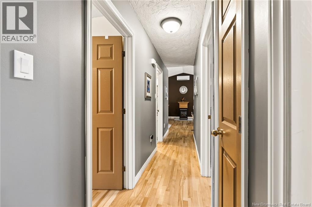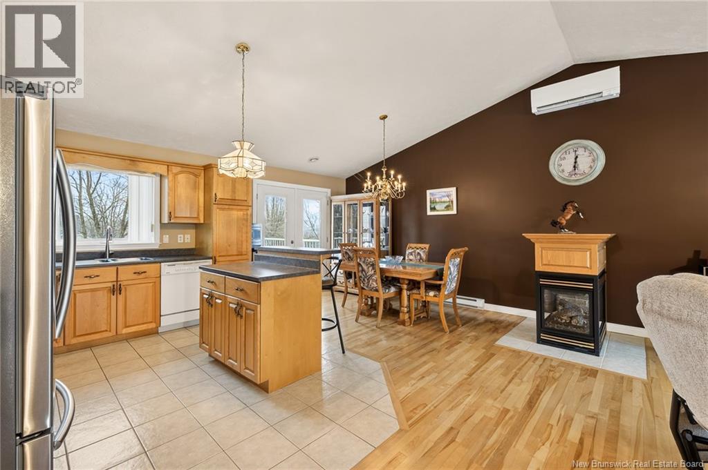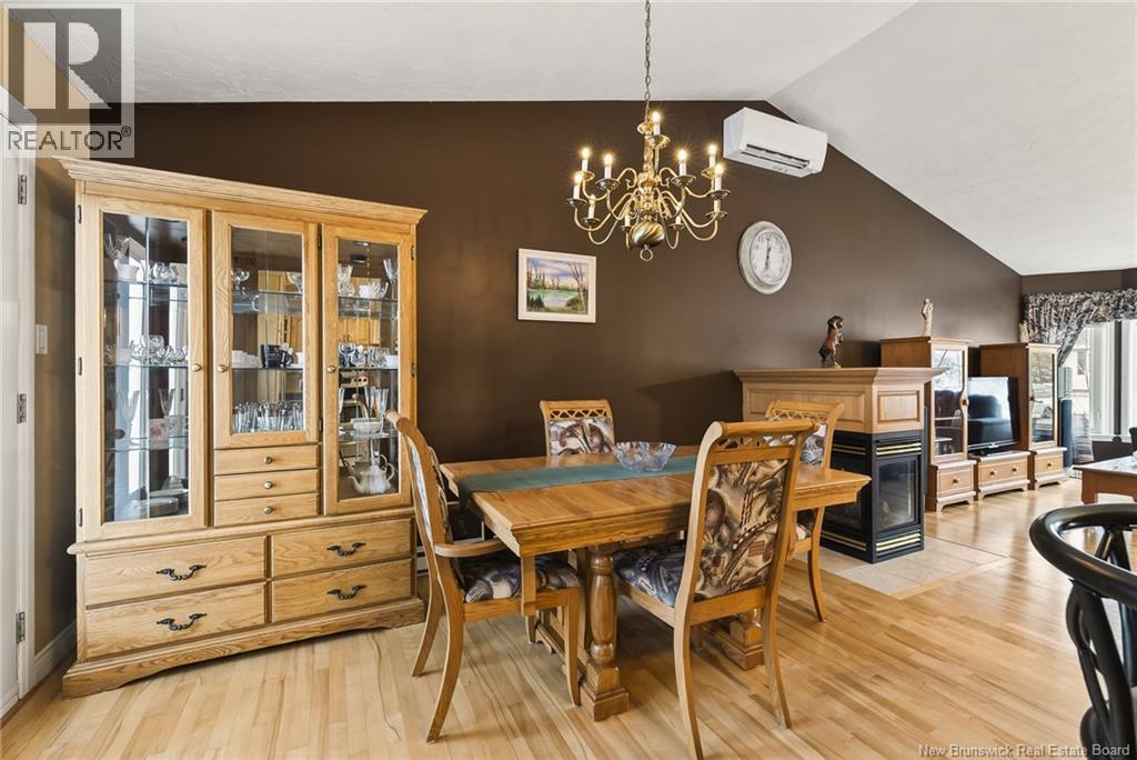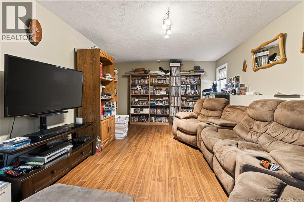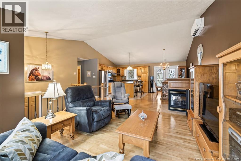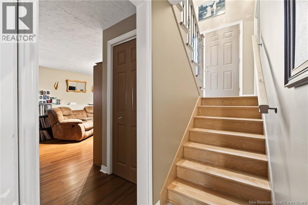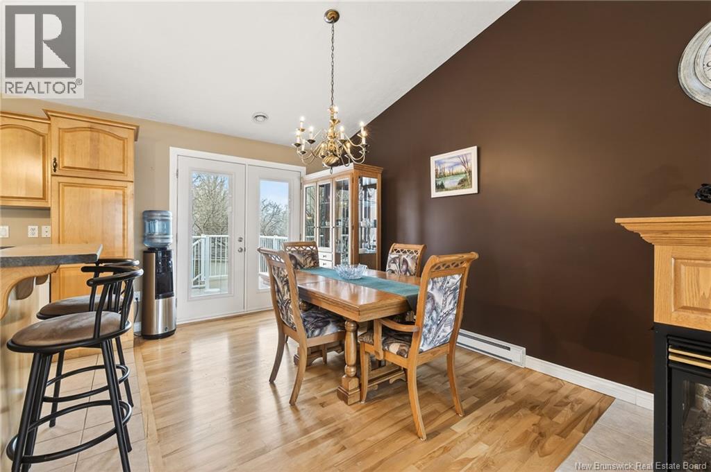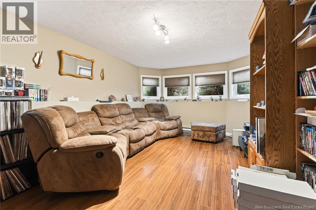 Welcome to this beautiful raised bungalow located on a corner lot in a quiet and family-friendly neighborhood in Dieppe, offering potential for an in-law suite. This well-maintained home offers comfort, functionality, and space for the whole family. The main floor features a bright open-concept layout with vaulted ceilings, a spacious living room, and a cozy propane fireplace creating a warm, inviting atmosphere. The kitchen offers ample cabinetry, stainless steel appliances, and a functional island, while the dining area provides patio doors leading to a large PVC back deck, perfect for relaxing or entertaining with no maintenance required. The main level features three bedrooms, including a spacious primary bedroom with Jack and Jill access to the main bathroom. Beautiful hardwood flooring flows throughout the main living areas. The fully finished lower level offers extra living space with a large family room currently used as a home cinema, a fourth bedroom, and a full bathroom with laundry. You will also find a den or family room with direct access to the outside, offering flexibility and potential for an in-law suite. The basement also provides direct access to the attached garage. Outside you will find a nicely landscaped lot with a paved driveway, storage shed, and interlocking stone walkways surrounding the home. Roof, gutters, vinyl siding, and PVC deck were updated in 2018. Located close to schools, parks, and amenities. Dont miss this great opportunity! (id:34572)