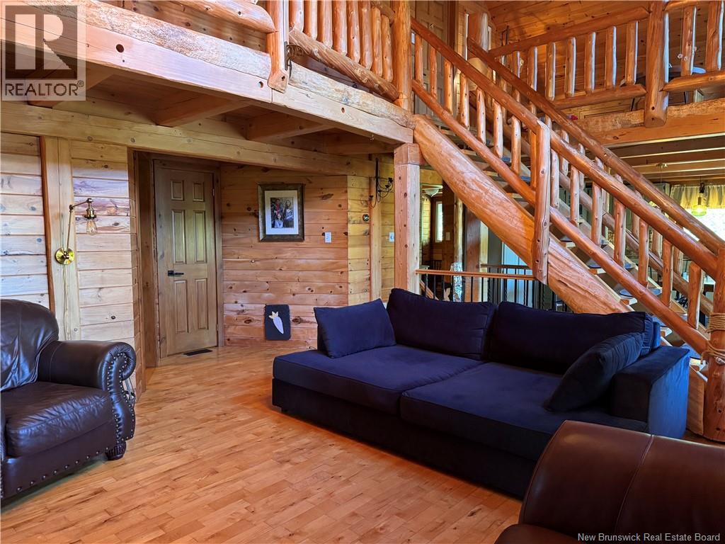 Step into a world of rustic beauty with this captivating open-concept log home. Nestled on a 1.84-acre lot, step into the heart of the home where you'll be greeted with soaring cathedral ceilings, creating a bright space perfect for relaxation. The kitchen is bright and open, flowing seamlessly into the living room, creating a cohesive space. The primary bedroom is a retreat of its own, featuring an ensuite bathroom including a soaker tub and a private balcony overlooking the backyard and forest. Three more bedrooms throughout the house offer plenty of space for family or guests. A brand-new STÜV wood stove was installed in October 2023, and a new steel oil tank was installed in March 2026. Cozy up on chilly evenings to the warmth and ambiance of the two wood stoves, offering the possibility of wood-only heating or enjoy the convenience of the oil furnace. Step outside to your covered wrap-around porch, sit on the swing and enjoy morning coffee or unwind on a quiet evening. Outdoor storage and utility is no issue, with a screen room for sitting, four sheds for storage or a workshop and a fenced pen perfect for some hobby animals. Don't miss the opportunity to experience this home firsthand; book your private showing today. (id:34572)