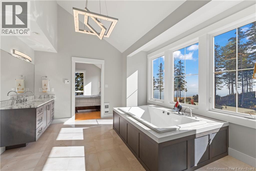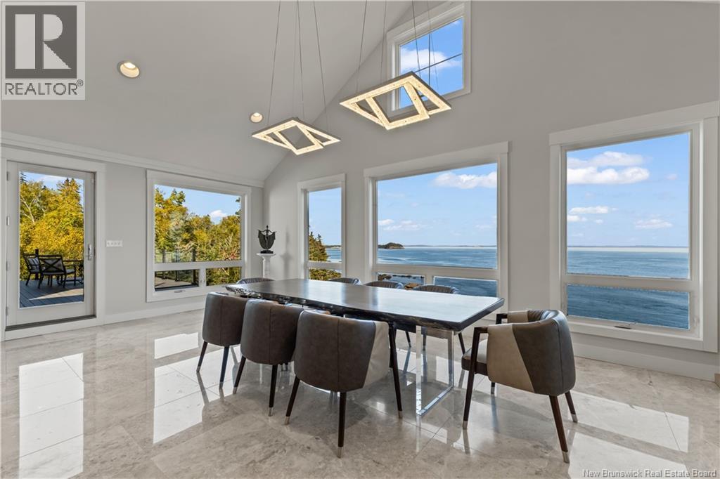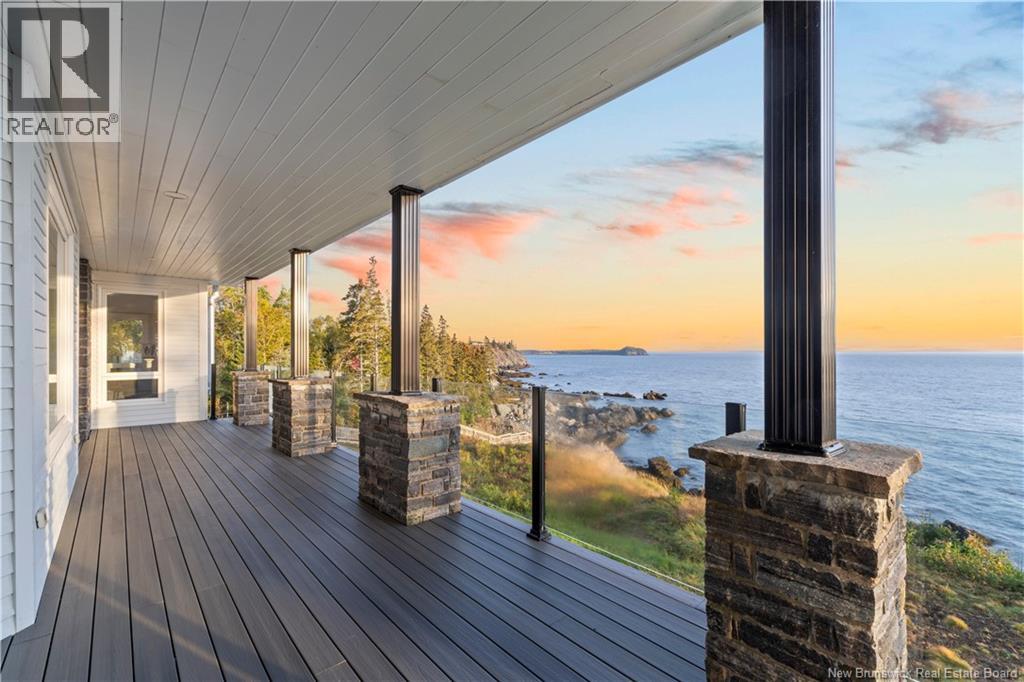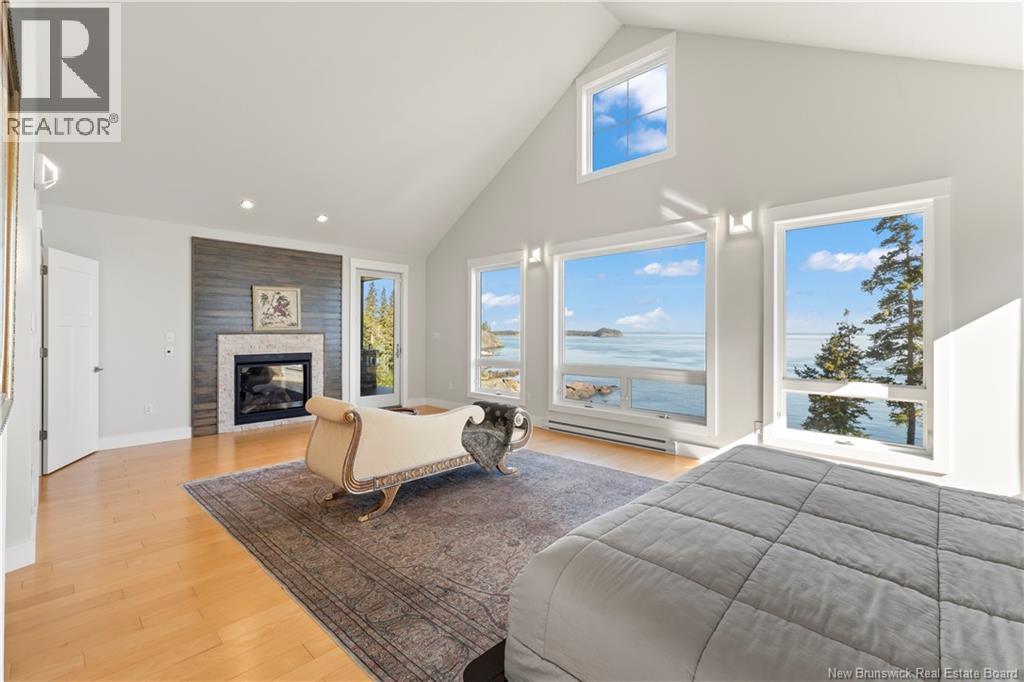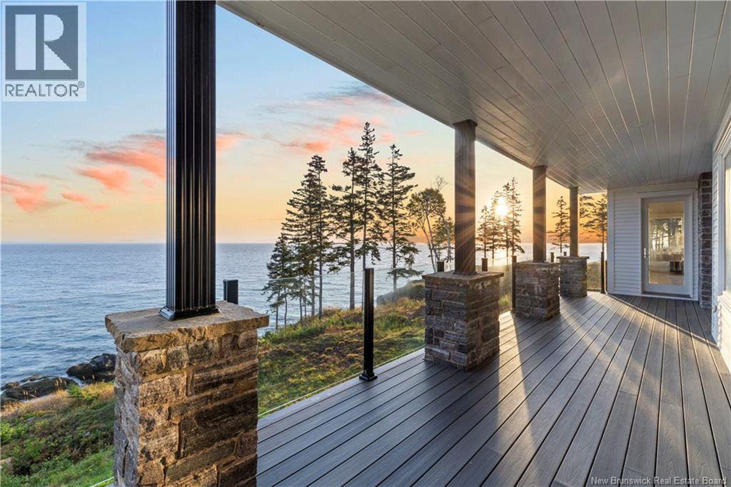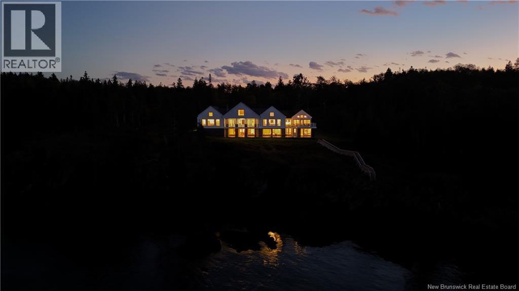 The rugged beauty of Campobello Island perfectly compliments this majestic, modern estate, which sits on 137 acres of pristine oceanfront and untouched forests. Watch eagles soar & whales pass by as you sit on your impressive decks high overhead. With over 8,000sq ft of living space, there is room to breathe the salty sea air. As you pull up to the home you are immediately greeted with grandeur; you enter into a foyer leading to the great room w/ marble floors, 20ft maple ceilings, floor to ceilings windows & a large gas fireplace. The adjoining 1,000 sq ft kitchen is equally impressive & a 13ft island, double ovens, dishwashers & sinks, GE Monogram® appliances, marble countertops, large pantry & more stunning views. The primary suite feels like a private retreat, w/ a large bedroom/sitting room w/ gas fireplace, deck access, a walk-in closet & marble bathroom w/ large soaker tub & a double shower. The office & large exercise room w/ sauna can also be found on this side of the estate. The upper level guest suite also feels grand w/ large sitting room w/ deck access, bedroom & marble bathroom. Access to the upper level 2-car garage, laundry room, powder room & loft complete the upstairs. The lower level of the home features 10-ft ceilings throughout & 3 guests suites, all w/ deck access & en-suite marble baths. A recreation room & sitting area with wood fireplace are complimented by a beautiful copper wet bar. Watch sunrise & sunsets over the Bay of Fundy. (id:34572)