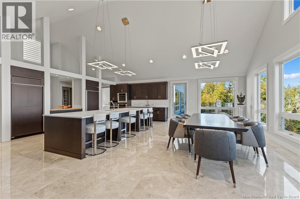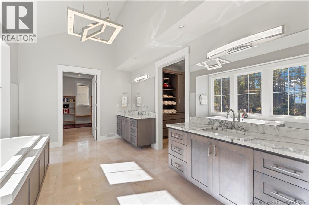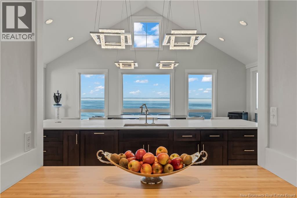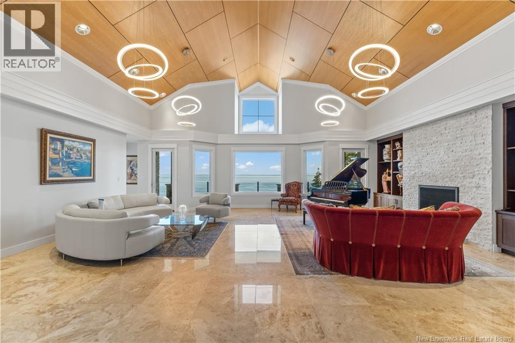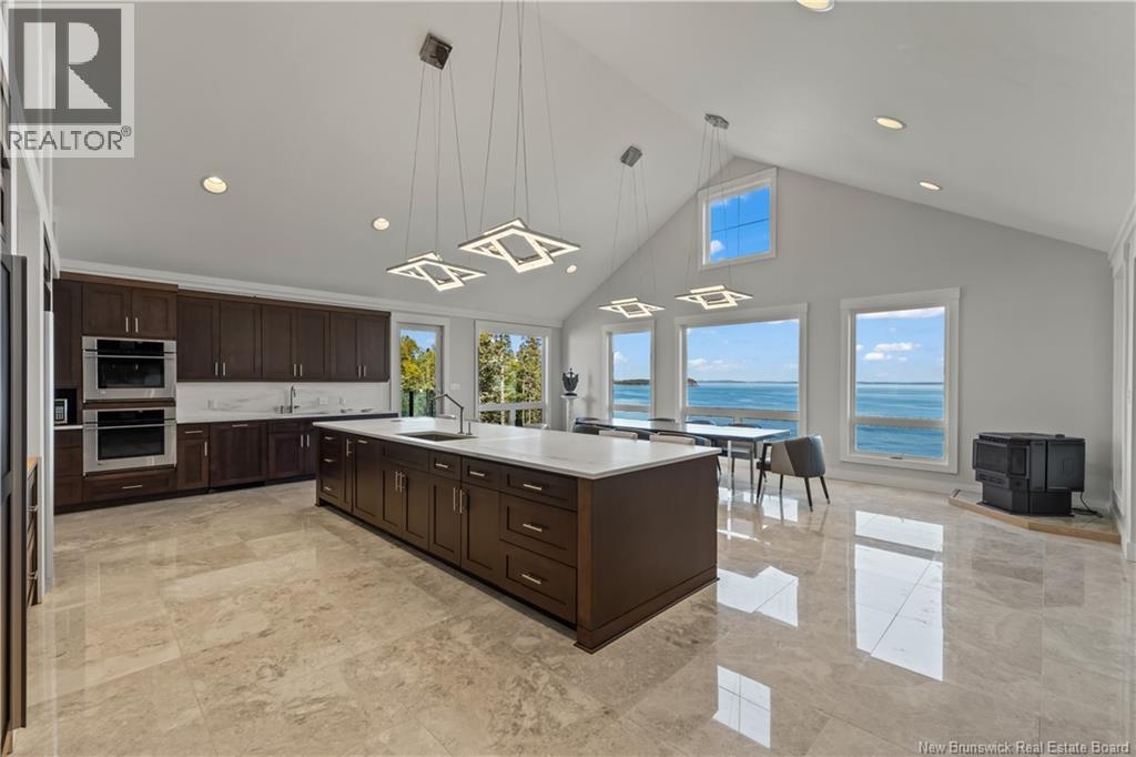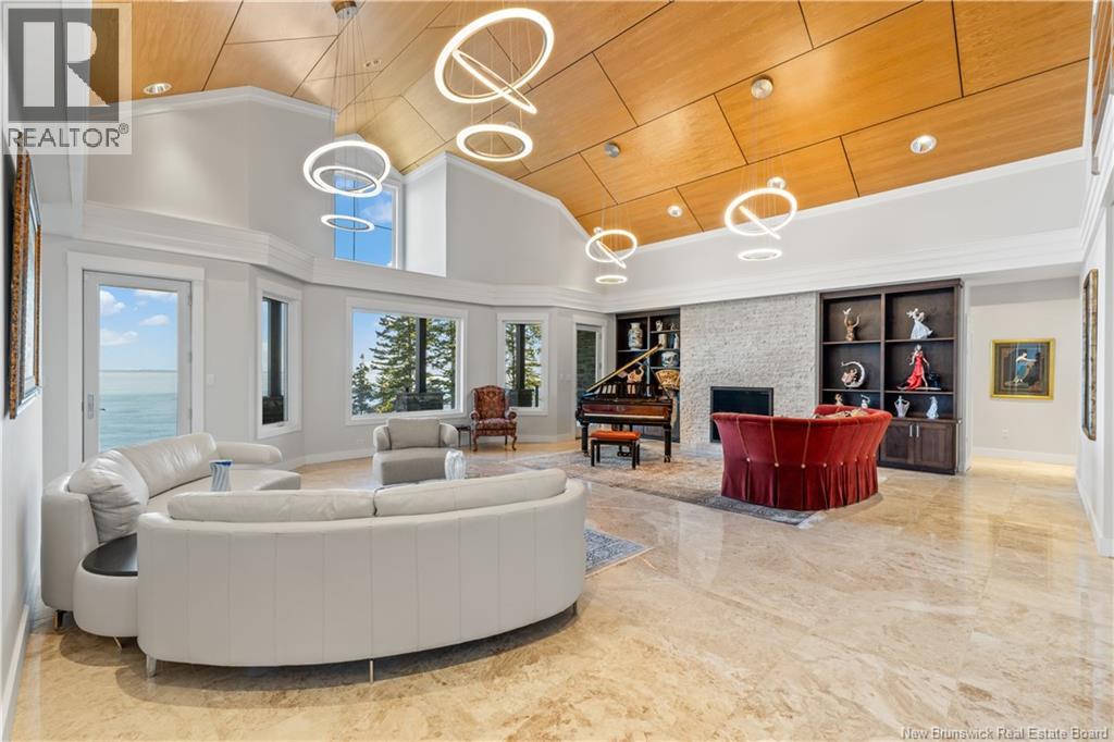 The rugged beauty of Campobello Island perfectly compliments this majestic, modern estate, which sits on 137 acres of pristine oceanfront and untouched forests. Watch eagles soar & whales pass by as you sit on your impressive decks high overhead. With over 8,000sq ft of living space, there is room to breathe the salty sea air. As you pull up to the home you are immediately greeted with grandeur; you enter into a foyer leading to the great room w/ marble floors, 20ft maple ceilings, floor to ceilings windows & a large gas fireplace. The adjoining 1,000 sq ft kitchen is equally impressive & a 13ft island, double ovens, dishwashers & sinks, GE Monogram® appliances, marble countertops, large pantry & more stunning views. The primary suite feels like a private retreat, w/ a large bedroom/sitting room w/ gas fireplace, deck access, a walk-in closet & marble bathroom w/ large soaker tub & a double shower. The office & large exercise room w/ sauna can also be found on this side of the estate. The upper level guest suite also feels grand w/ large sitting room w/ deck access, bedroom & marble bathroom. Access to the upper level 2-car garage, laundry room, powder room & loft complete the upstairs. The lower level of the home features 10-ft ceilings throughout & 3 guests suites, all w/ deck access & en-suite marble baths. A recreation room & sitting area with wood fireplace are complimented by a beautiful copper wet bar. Watch sunrise & sunsets over the Bay of Fundy. (id:34572)