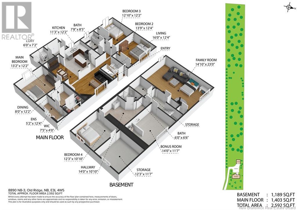 Welcome to 8890 Rt 3- A 5.11-acre property, just a short drive to town! This home offers plenty of space both inside and out, starting with a large detached two-door garage. Step inside to the entryway that includes a convenient half bath and laundry area. The main floor features an open-concept kitchen and dining area (the hutch will remain) that flows into a bright and inviting living room. Off the kitchen, youll find the primary bedroom complete with a large walk-in closet and a full ensuite. On the opposite side of the home are two additional bedrooms and a full bathroomideal for family or guests. The fully finished basement offers even more living space, including a generous family room, full bathroom, and a versatile room currently set up as a salon, which could easily be converted back into a bedroom. You'll also find a fourth bedroom, plus a storage and utility room. Outside enjoy a beautiful composite deck perfect for relaxing or entertaining, peaceful surroundings and a small pond that adds charm to the property. With room to roam and the convenience of town nearby, this home offers the perfect balance of space, comfort, and location. (id:34572)